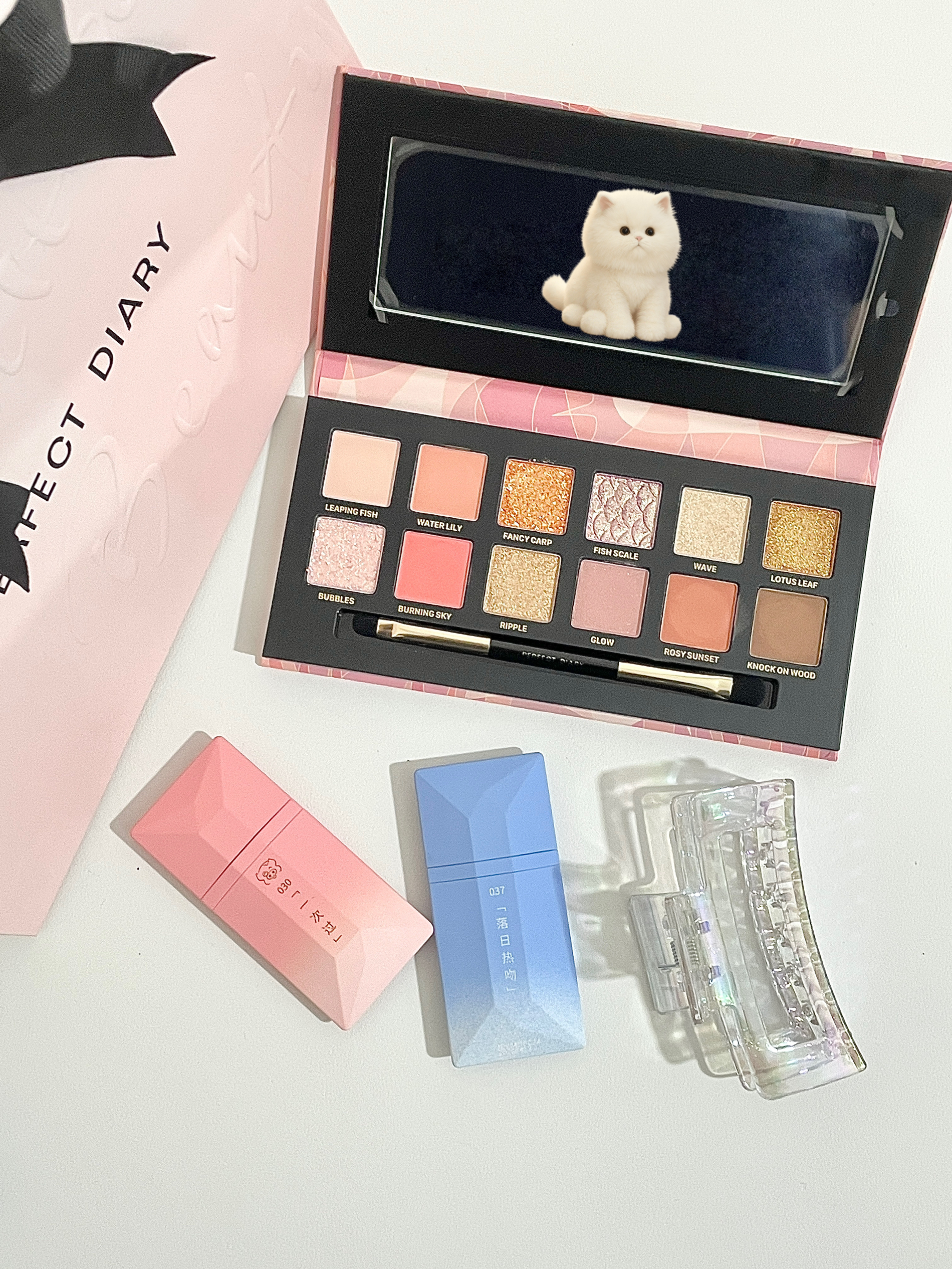 对不住了我的好姐妹🧎♀️ 完美日记的妆点礼盒我先下手了 包装尊嘟好好看根本拒绝不了! 2支唇釉 1盘锦鲤眼影盘 1个抓夹 出门就只要用这一盒就ok啦