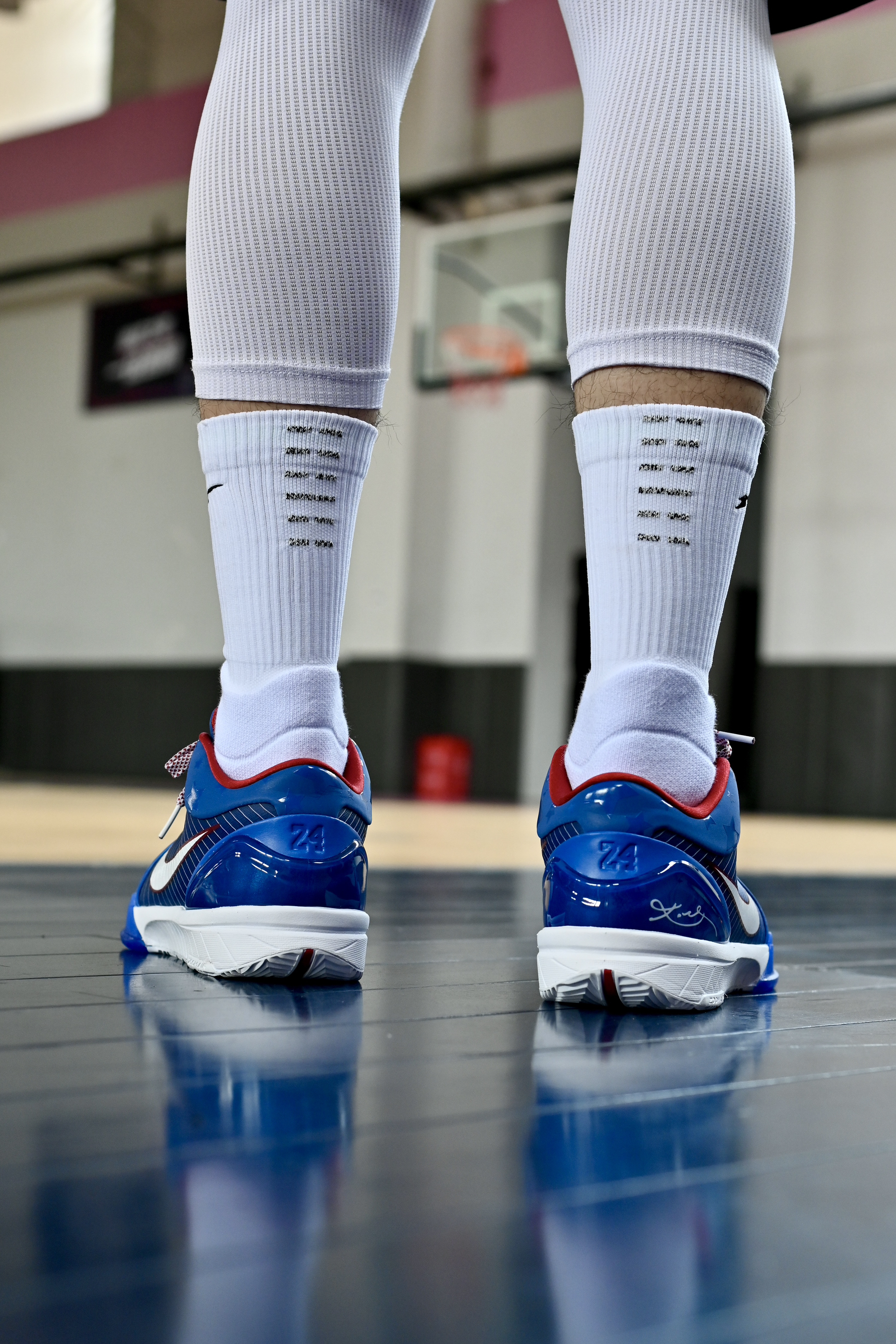 目前科4的这双费城配色现在黄金码价格还是蛮友好的(之前的确出现过较大的涨幅,不过已经回落) 拥有了元年配色加持上脚的效果真的非常帅[得意_blue]具体的一个实战总结在之前也有和大家分享,今天咱们简单欣赏一下上脚颜值确实很对味[机智_blue]