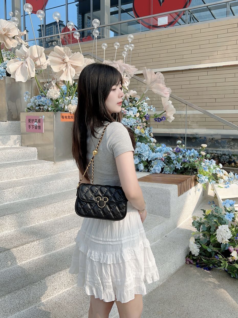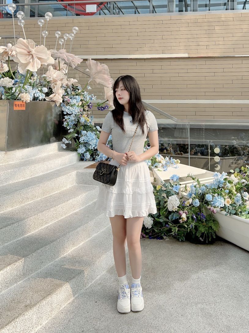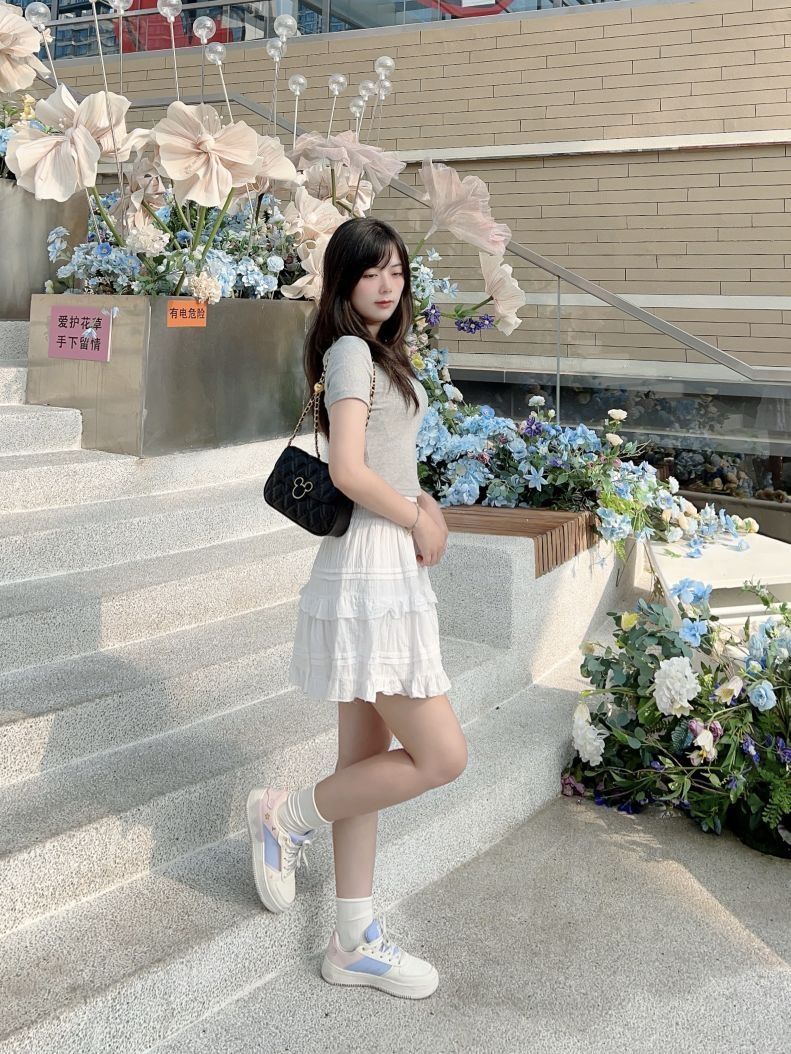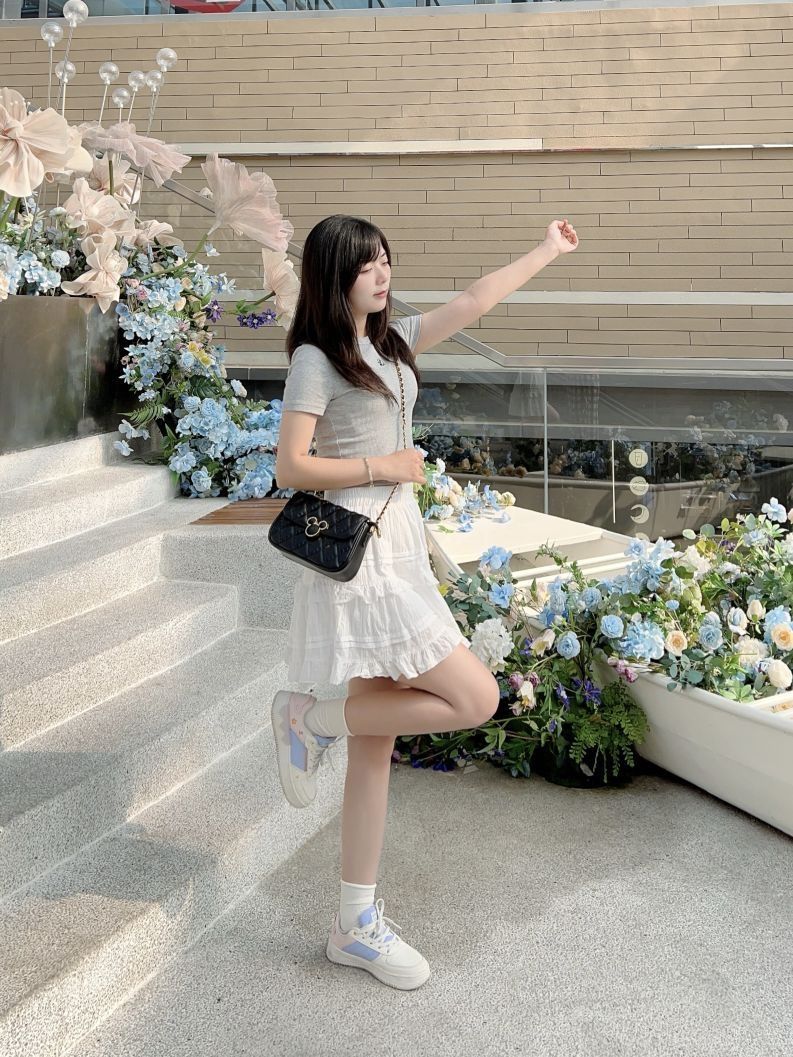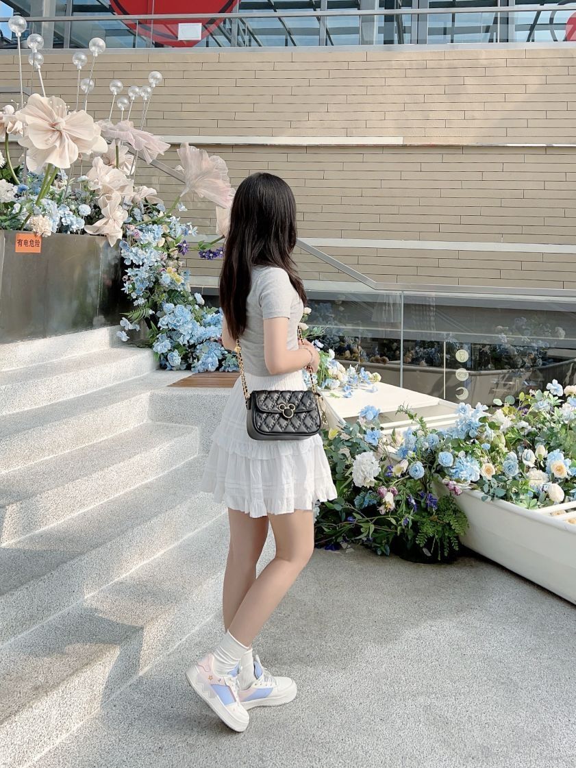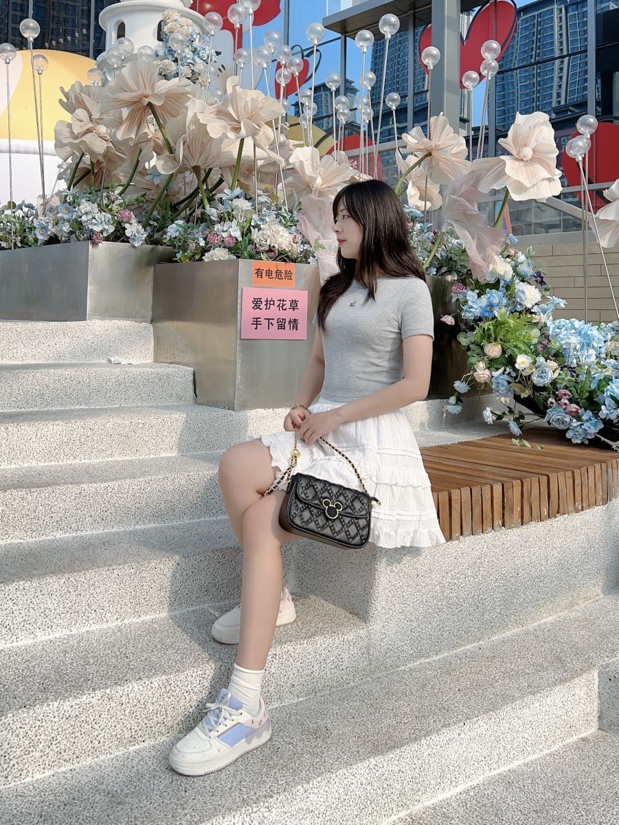 哈喽,又到了小半的穿搭分享时间啦 今天是春夏休闲少女感穿搭分享~ 简单的灰色短款上衣搭配白色花边短裙,少女活力感拿捏啦!我很喜欢这条小裙子,很百搭又有少女感耶。 我出门总是习惯要背包包,今天搭配的是Disney迪士尼 米奇系列包包,经典菱格高级感满满,日常可以单肩斜挎和腋下背,包包小巧容量却ok,像我平时出门发口红、充电宝和纸巾都可以放下哦。