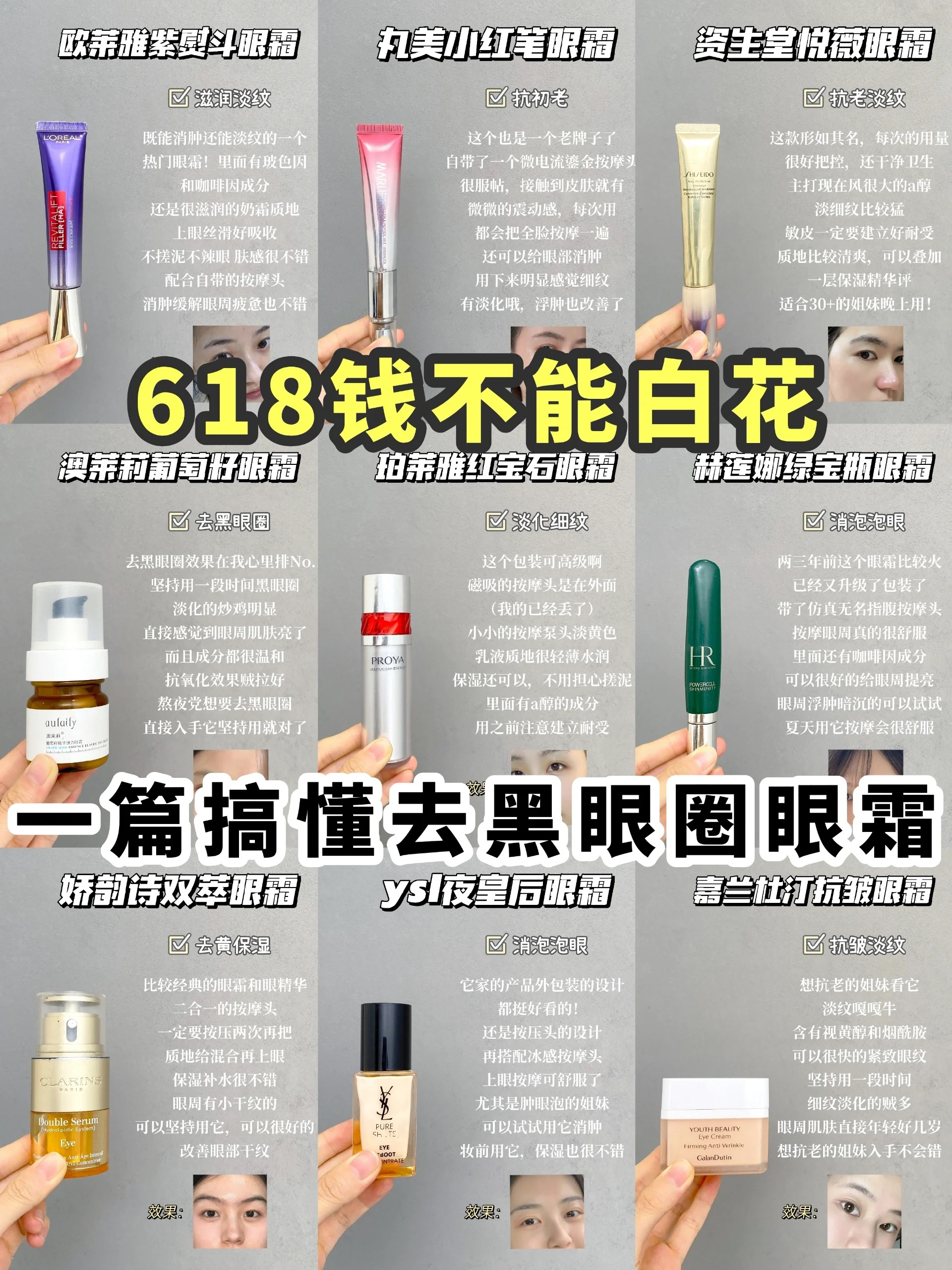 再见黑眼圈!618新品去黑眼圈眼霜请无限回购|||经常熬夜,玩手机,长期以往 黑眼圈和细纹就越来越明显 所以眼部护理我们要早早重视起来 选对去黑眼圈眼霜,淡化细纹眼霜是我们进行 😃眼部护理的第一步!坚持用才会改善黑眼圈和细纹 我就是踩了好多去黑眼圈眼霜,淡化细纹眼霜的坑才悟出来的经验 选对比选贵要重要!!! 那眼霜具体怎么选呢! 可以参考这几点 1、年龄 22岁以下: 做好基础的补水保湿就可以了...