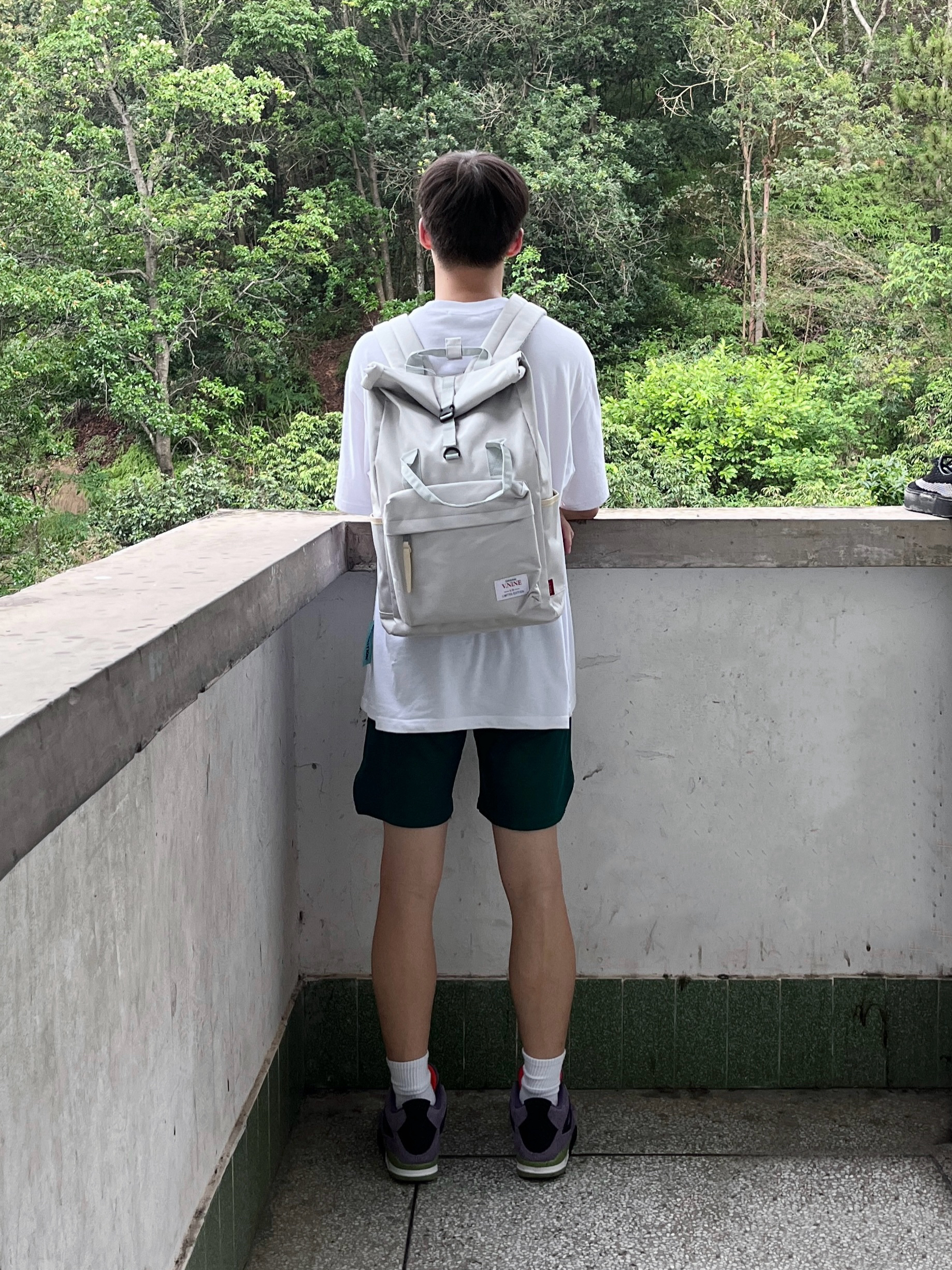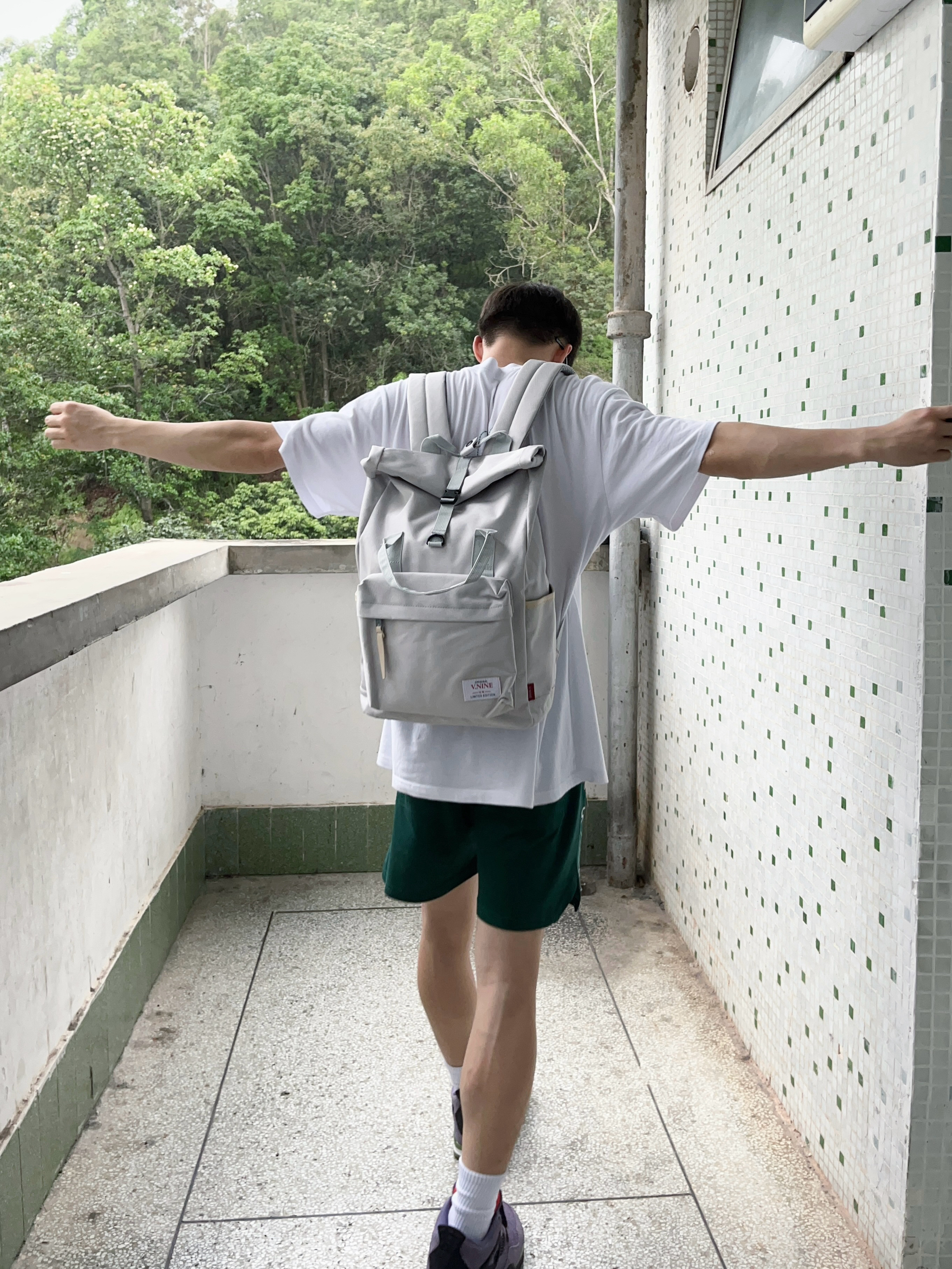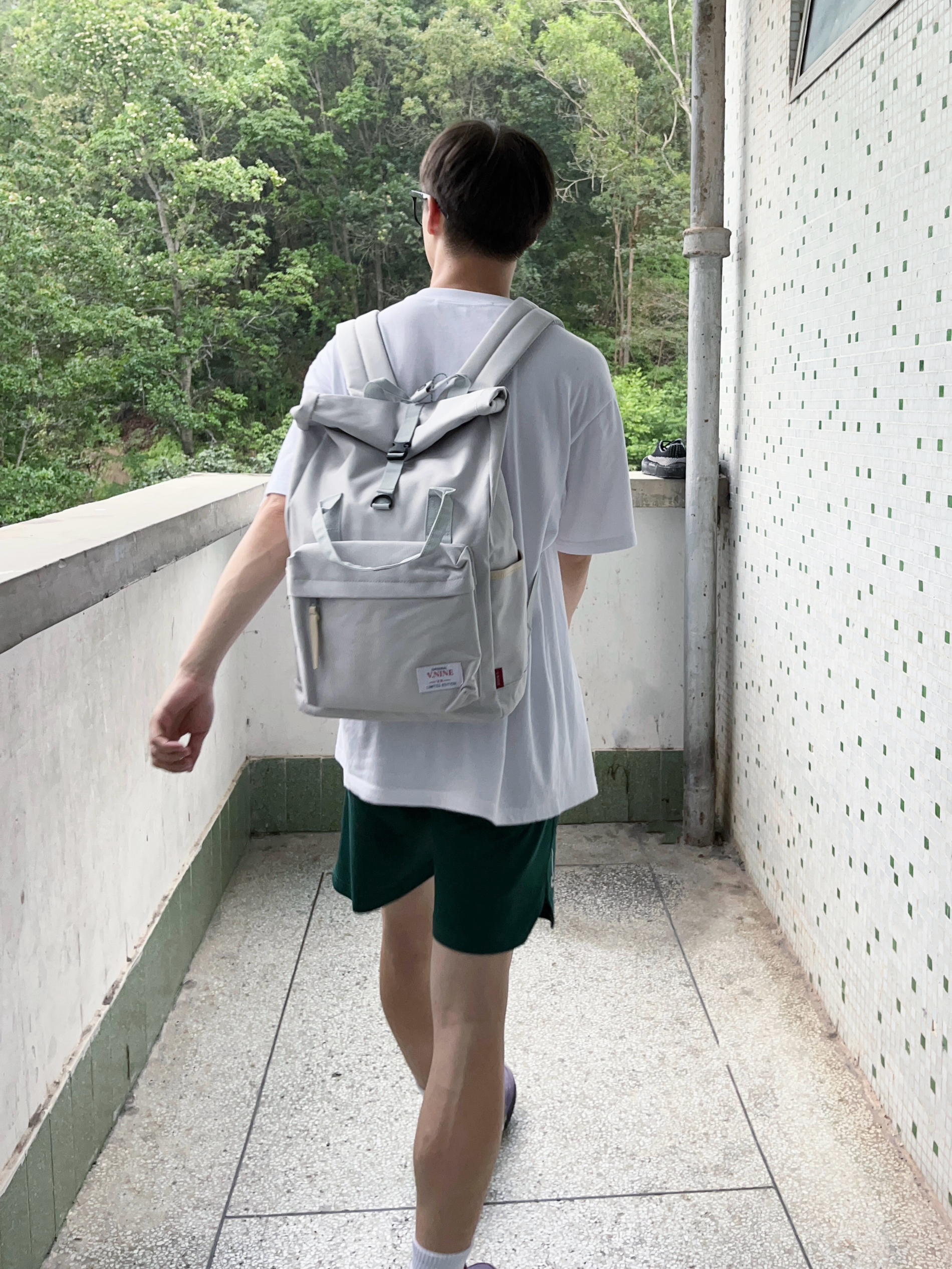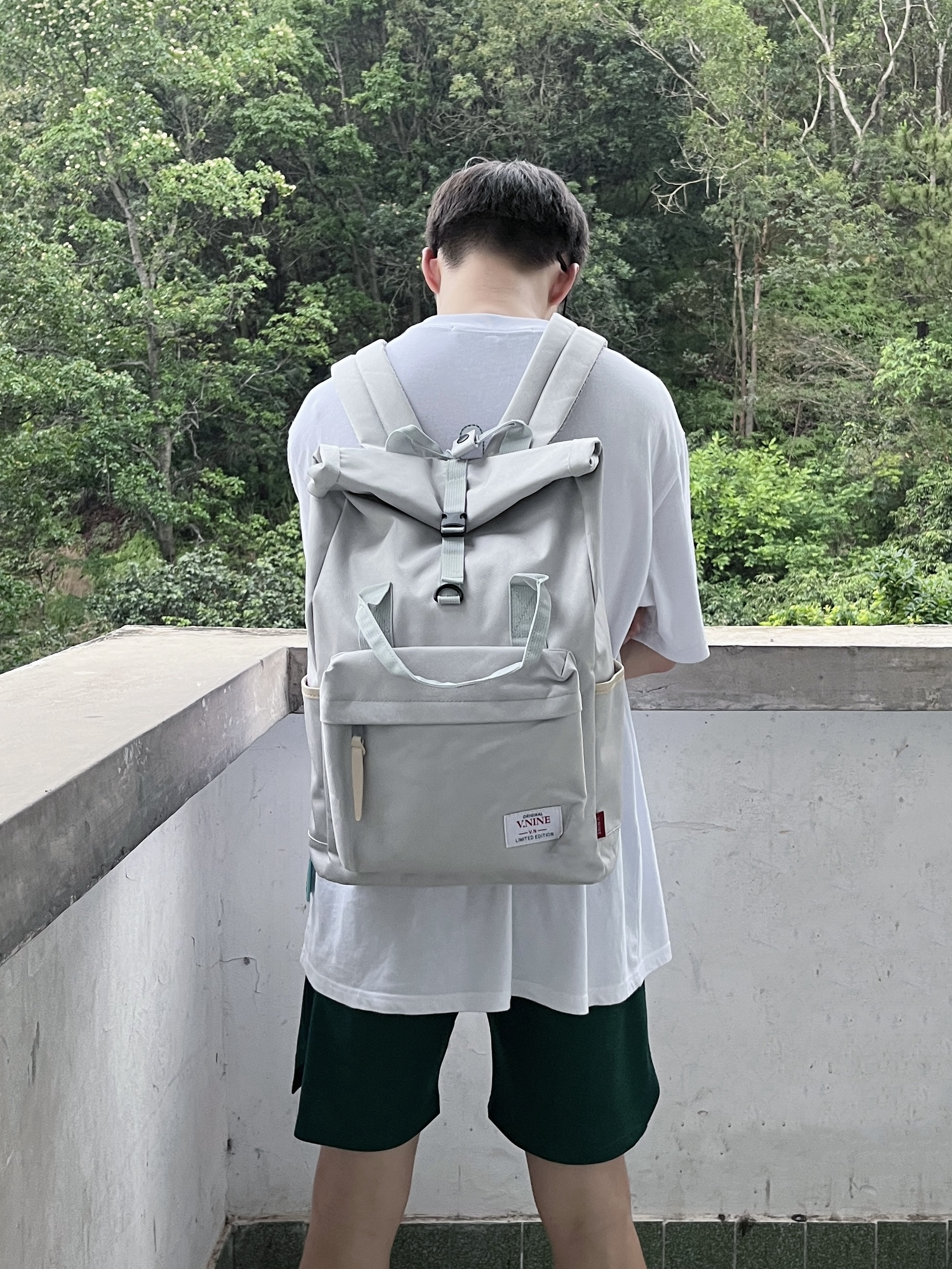今天分享一款夏日出行百搭的通勤神包 第九城/V.NINE 家的这款晨雾灰配色休闲双肩包 颜值潮酷时尚 采用涤纶配合成革面料 质感很棒 内部容量也很大 无论是日常通勤还是户外旅行都很合适 搭配上潮流服饰 一套搭配下来出门 百搭又轻松