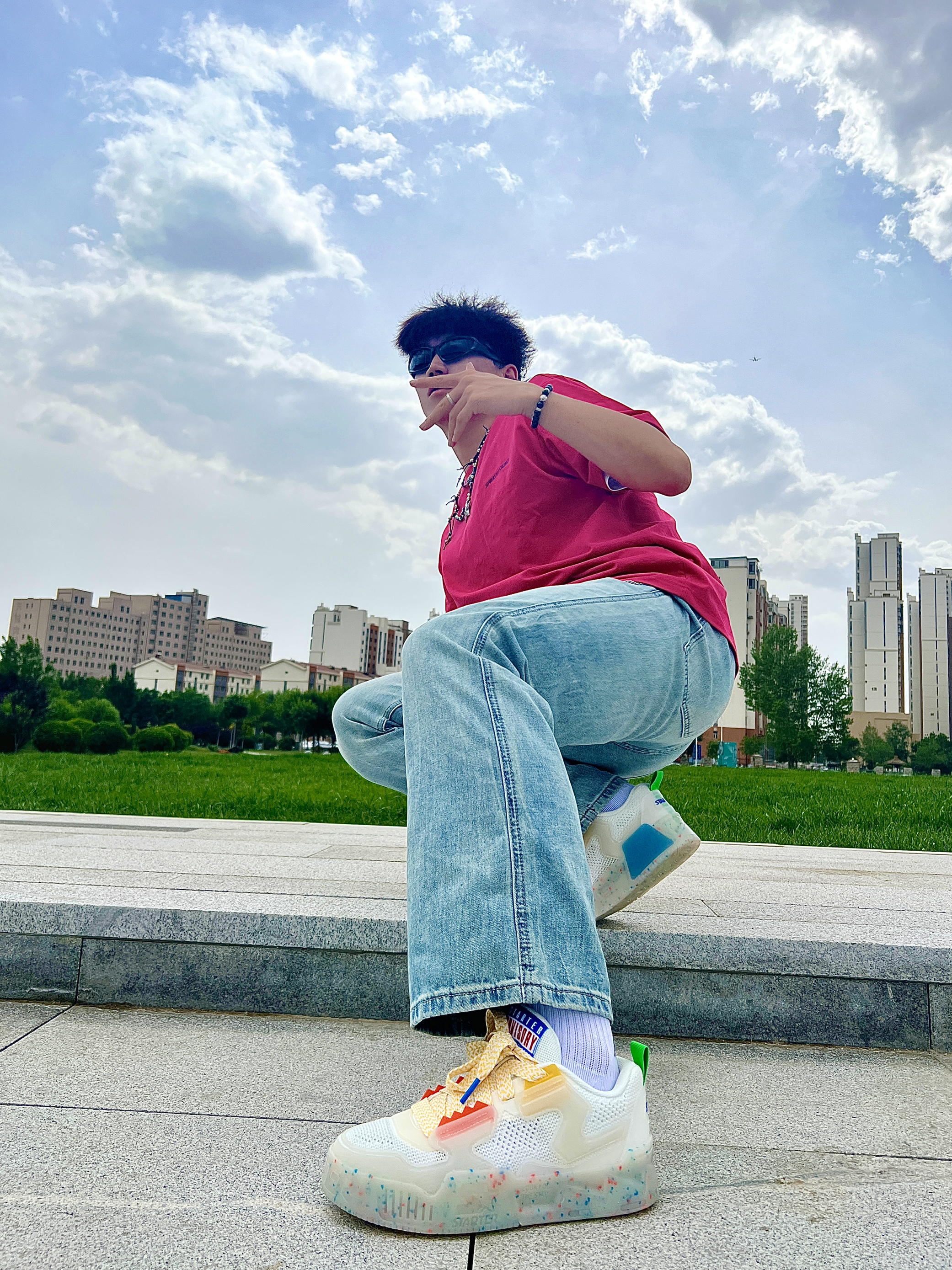 夏天要尝试下多巴胺穿搭呀~ 上身一个粉色简约短袖 搭配浅蓝色牛仔裤👖 色彩上还是比较个性滴 上脚的是⭐️STARTER冰饮果冻鞋👟 一整个清凉的设计风格 透气凉感的飞织网布🌟 半透明橡胶鞋底都是加分项💯 薄荷和橙汁感的小点点 也是敲个性的呀✨ 平时搭配高街风和休闲穿搭都🉑️ 尺码方面不偏按平时选就好