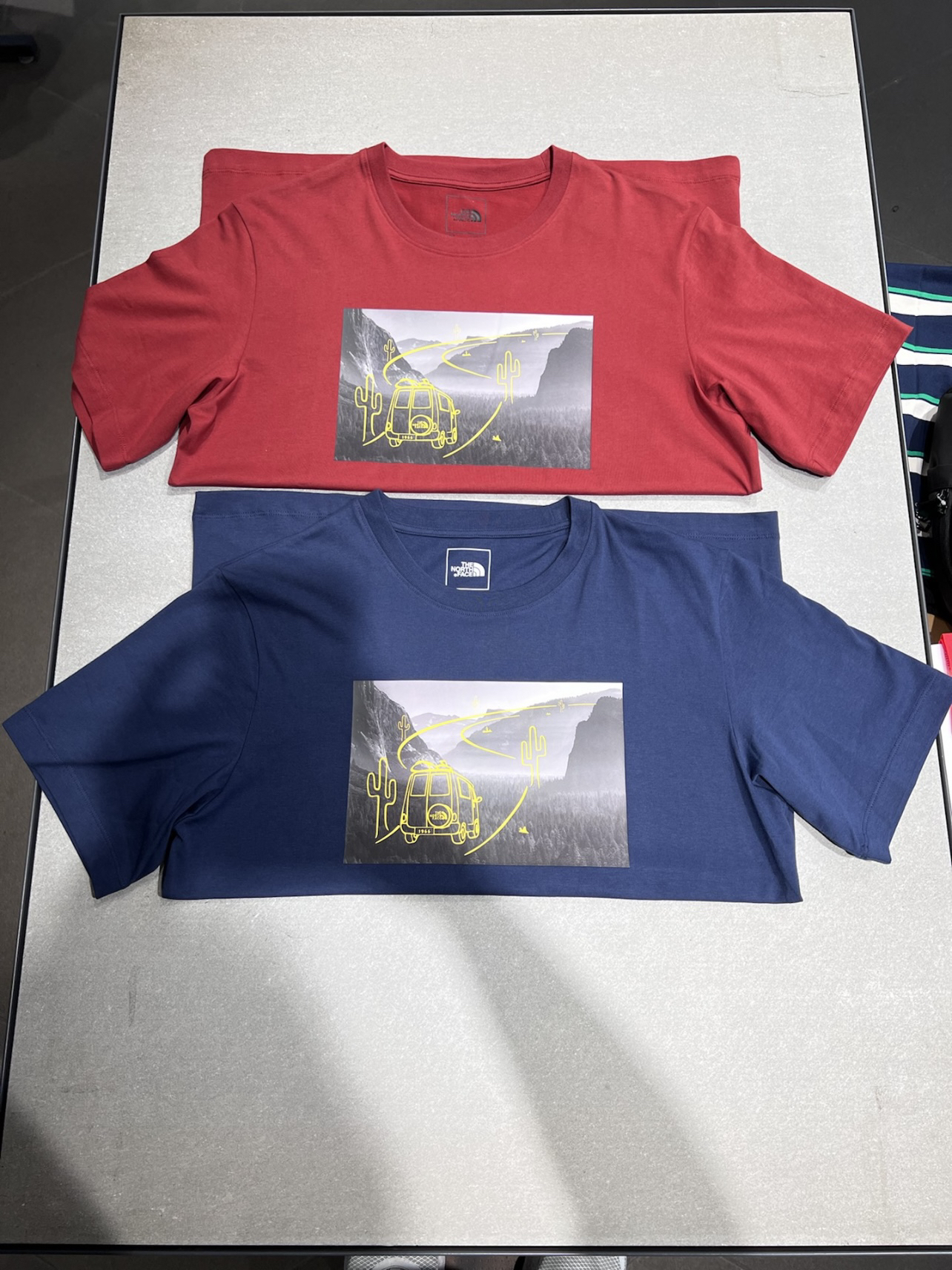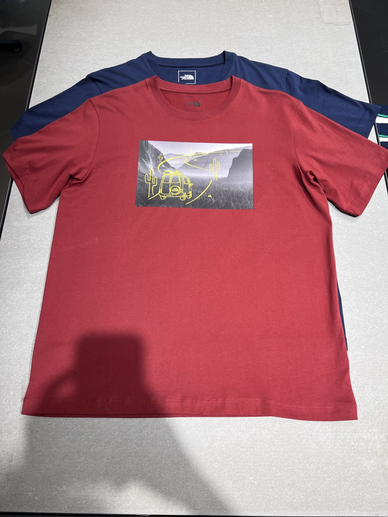 今日份宝藏短袖分享🎉 THE NORTH FACE北面户外风景短袖 俩款都是胸口处风景图案🚗背面暗标logo 红色为暗红色不是亮红色哦显白专属❗️ 蓝色也是深蓝色很衬皮肤显气质的 从背后看俩款都是极为低调的那种🉑️ 适合成熟或者不太喜欢张扬的人群 在夏日穿着比较好搭配衣服哦 夏日满级穿搭这不就来了吗❓ 这里是伤心黑灯的宝藏短袖分享 喜欢的可以关注点赞哦
