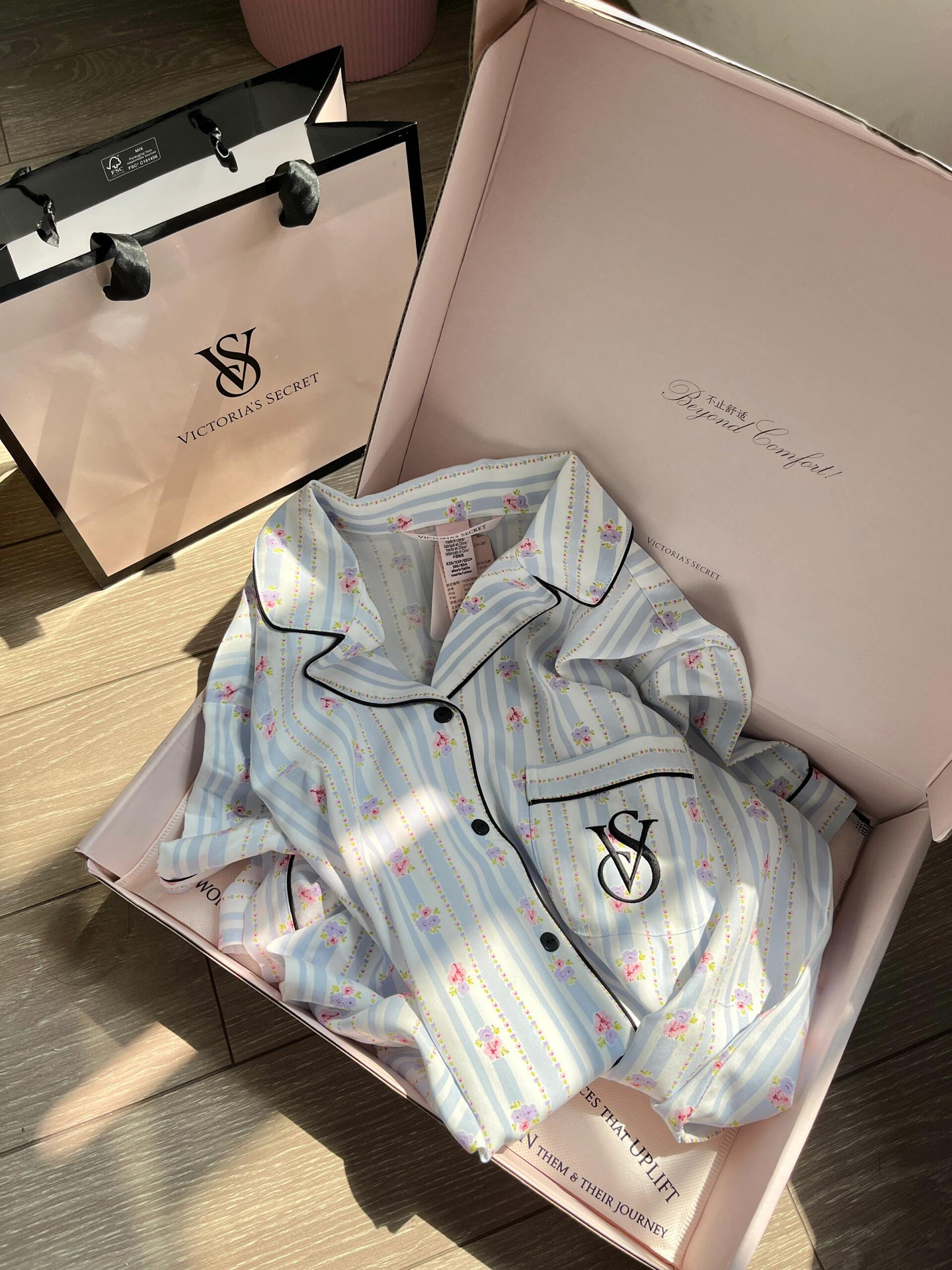 本篇笔记关联了【田曦薇同款】Victoria's Secret/维多利亚的秘密 宅度假系列蝴蝶爱心印花条纹短袖套装睡衣 女装 11245469 蓝豹纹等商品,为用户提供真实的使用体验和购买参考。