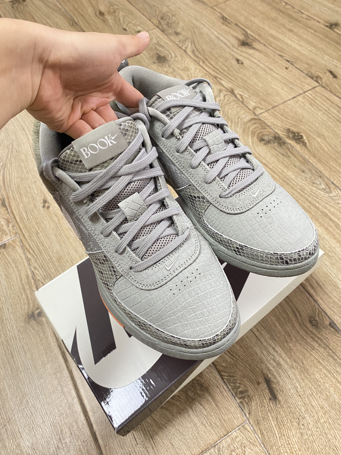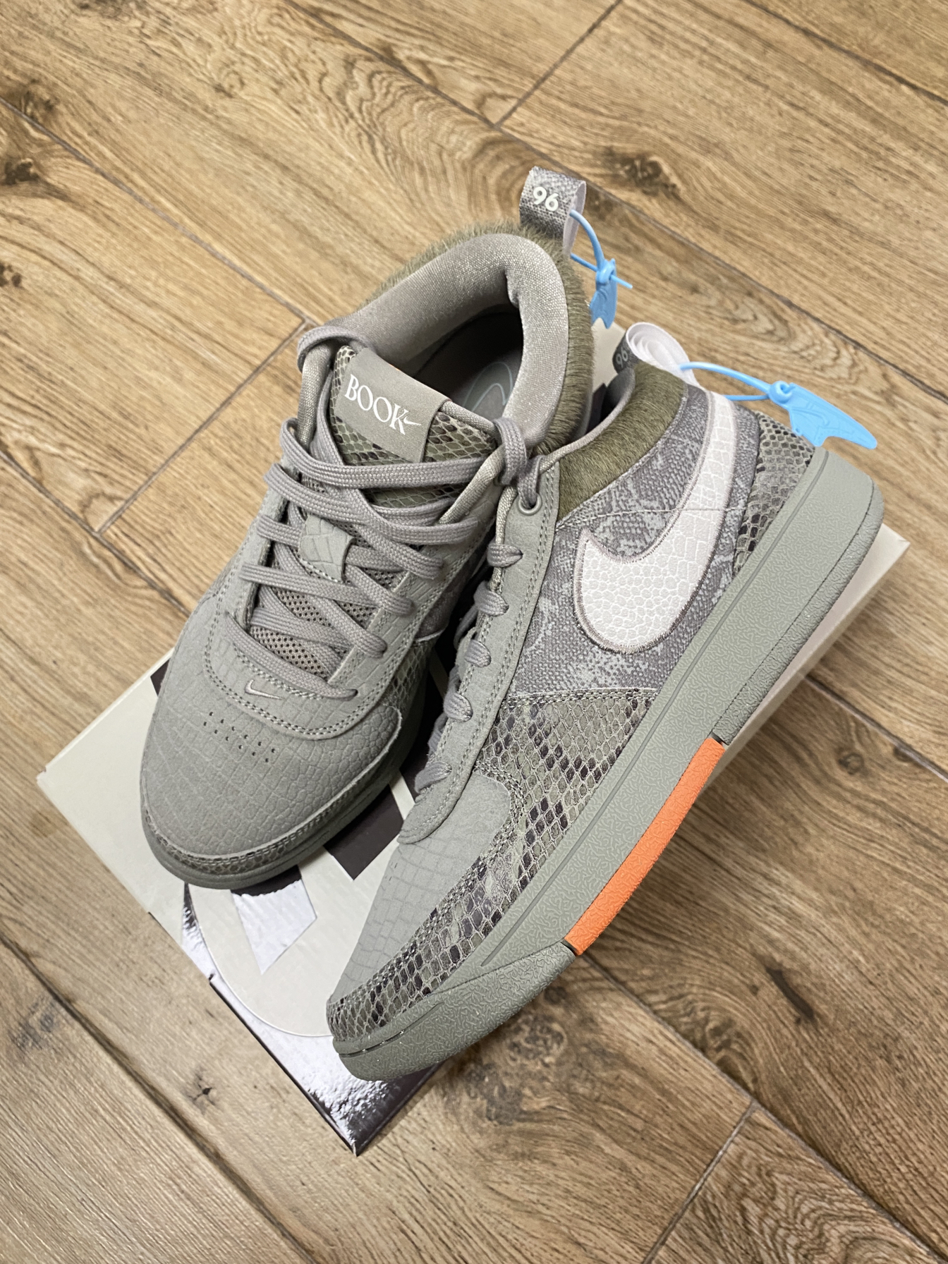 鞋型真的有一种复古美感,臃肿但是让我回忆起第一次看到air force1的场景。在我印象中,蛇纹配色的Nike一直都是比较昂贵的,不管是kobe6,kobe4或者p级别的空军一号蛇皮。所以这次book1出了这个配色我一开始认为也会限量很贵,但是现在的价格大家也看到了,还是挺容易get。它的质感挺符合我的想象,各个分区的不同材料,整体的色调去和谐。还有一抹亮眼橙色作为点缀。后期货量自然消耗下价格应该...