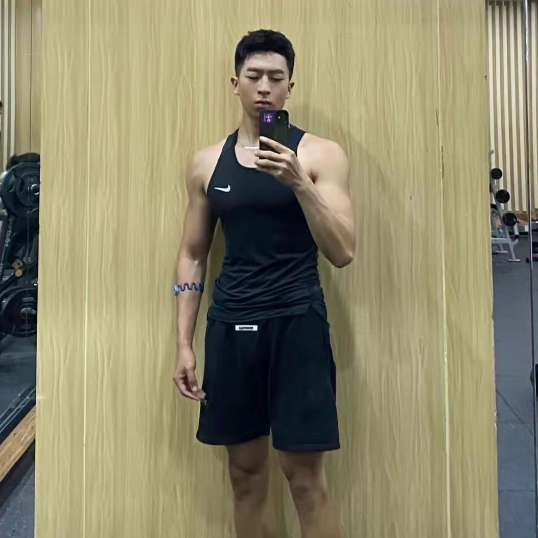 🌈健身男孩穿上背心出门,不得不说回头率是真的高!一直被路上的叔叔奶奶问我是不是健身教练!怎么练的太大了!😆😆😆其实健身练肌肉纯属是为了好看 🌈紧身背心,面料弹性十足,无袖设计,让肩部和手臂的线条太好看了,把整个上半身身材曲线勾勒出来了 (图片来自博主:穿搭黑蜘蛛Huang)