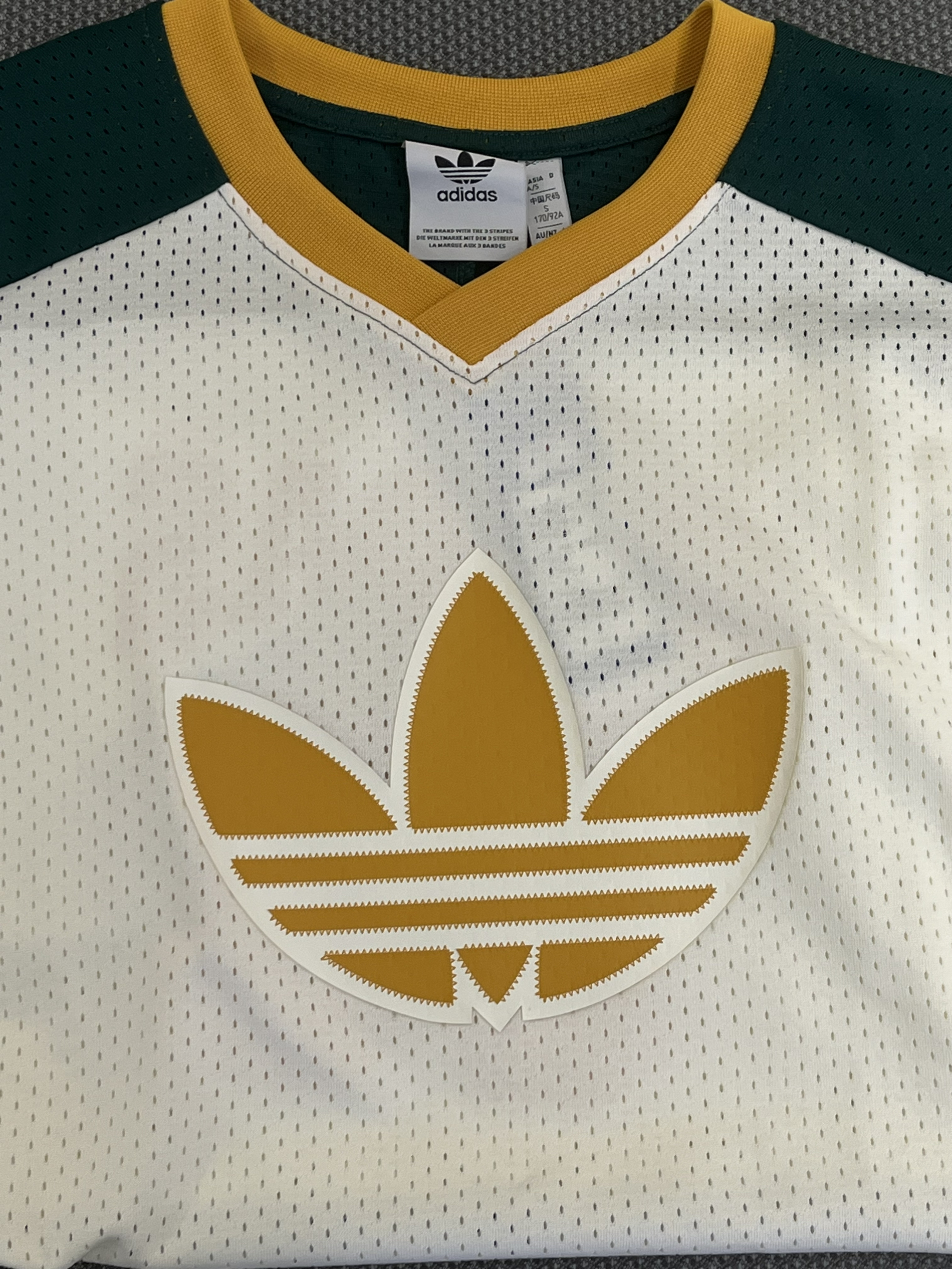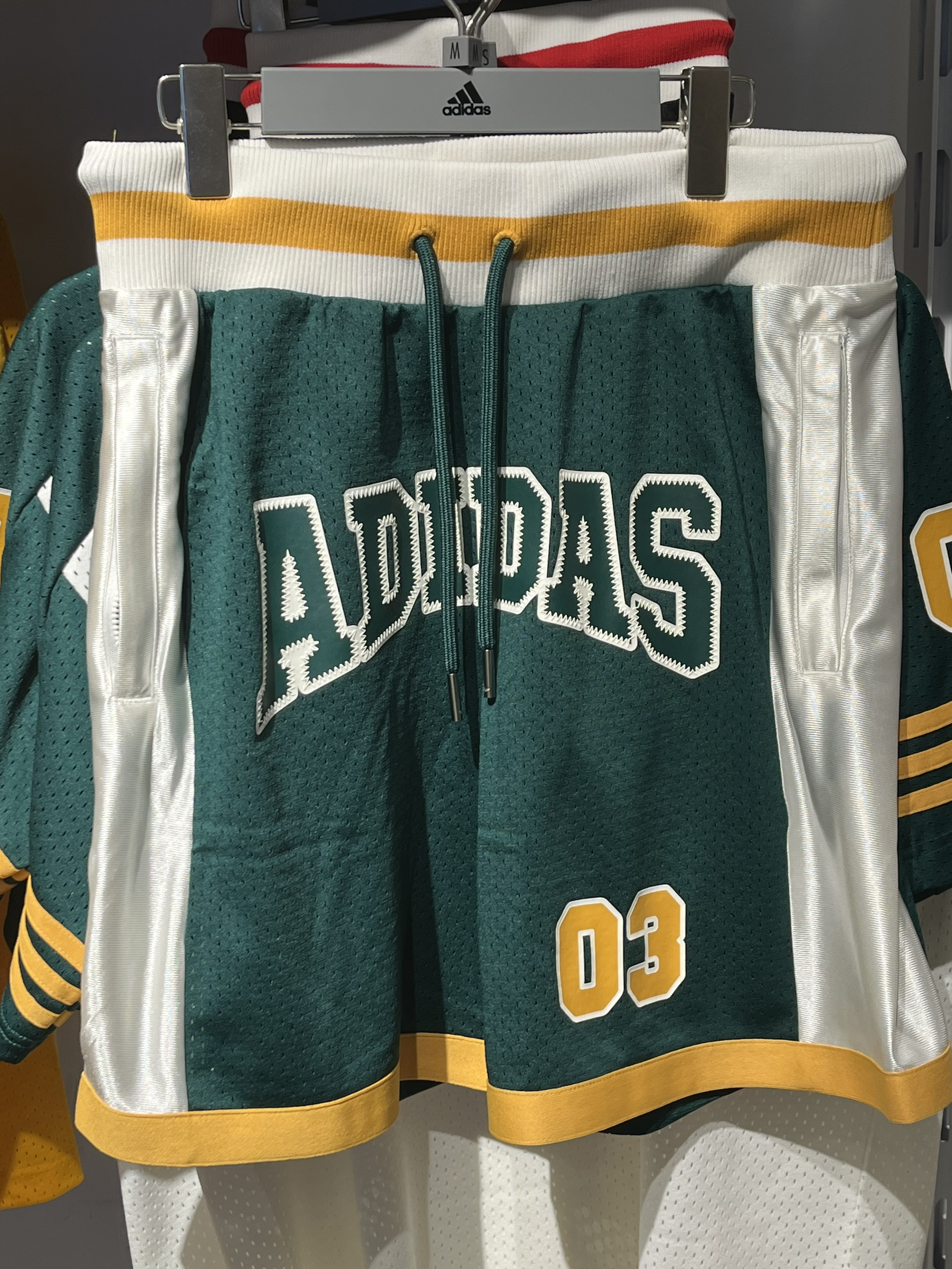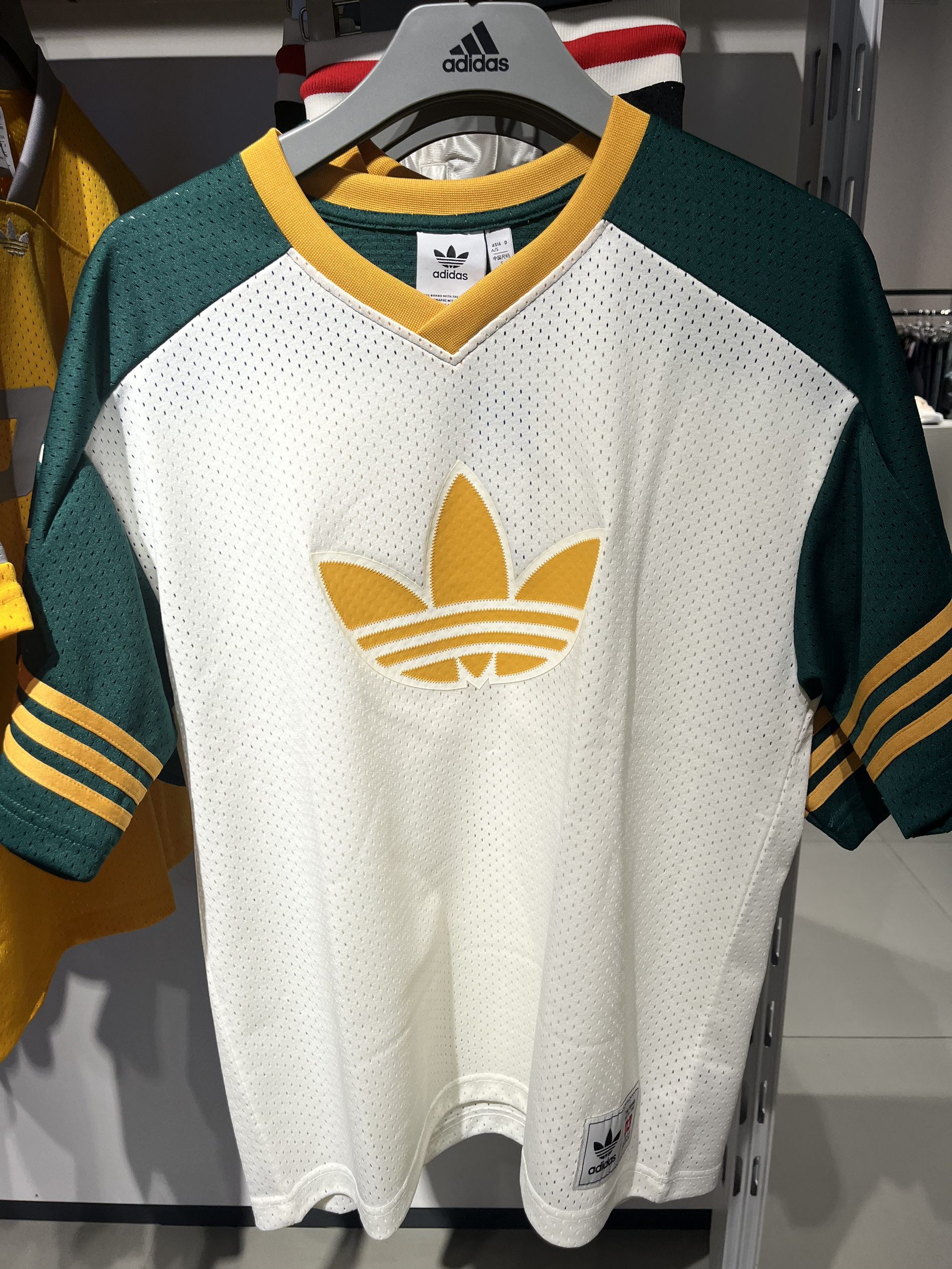 本篇笔记关联了【GALI同款】adidas Originals RETRO 篮球风印花数字条纹V领短袖T恤 JC6803 JC8302 白绿、adidas Originals 字母数字拼色印花透气系带运动短裤 JD6398 森林绿等商品,为用户提供真实的使用体验和购买参考。