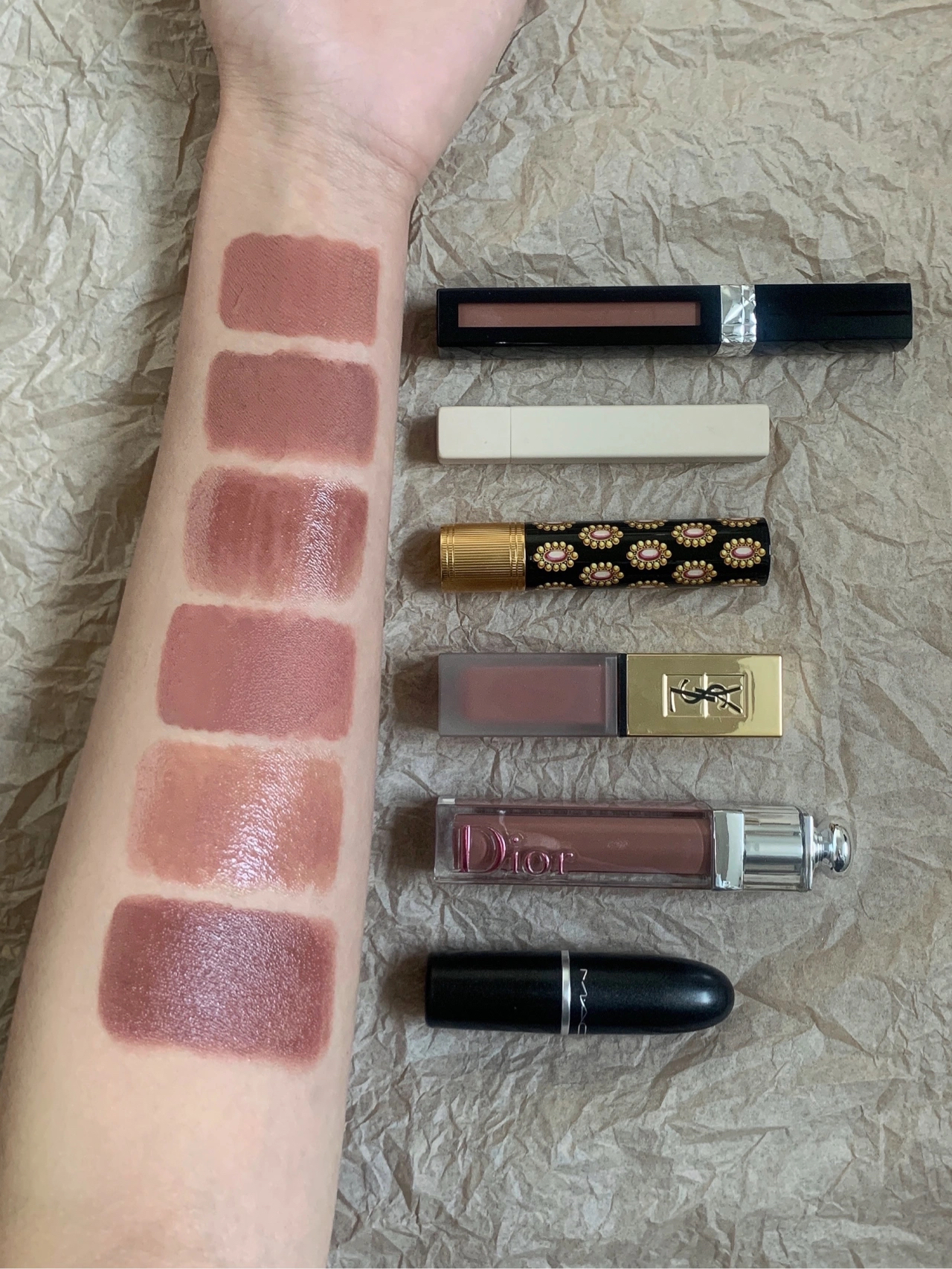 分享4支低饱和裸色口红: ✅Kiko 103; 传说中和香奈儿154颜值质地都一样,买不到香奈儿154但有了103顿时觉得真香。 质地滋润,上唇持久但不会拔干,也不会黏。双头设计一头是口红雨衣一头唇釉。薄唇可以搭配口红雨衣营造玻璃唇感觉。我自己更喜欢叠涂后用纸巾抿去口红雨衣~氧化后玫瑰调更浓郁。 ✅Dior 200; 一个偏紫调的奶茶色。颜色覆盖力不错,好涂抹。但成膜后会粘,且卡唇纹~这只我个人不...