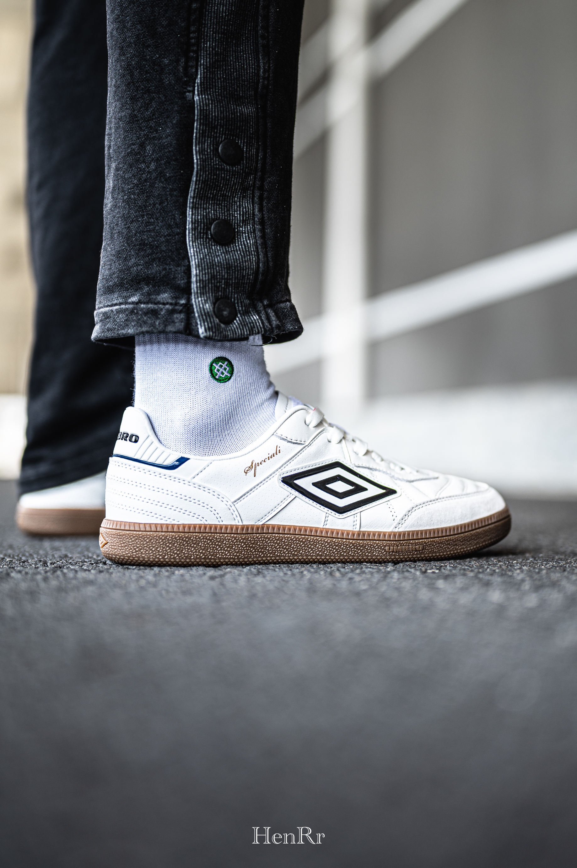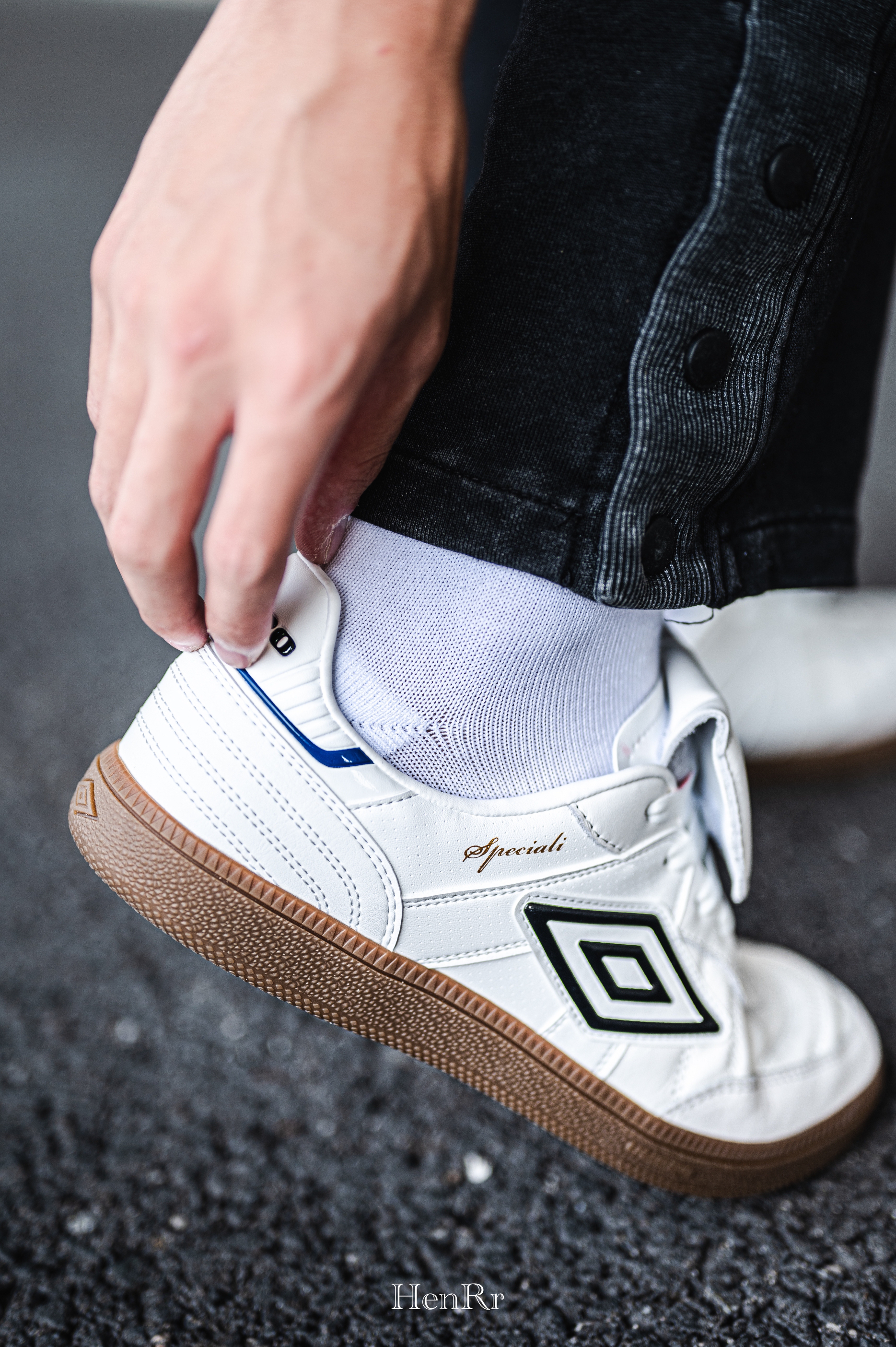 最近板鞋热潮也到来了,相信很多人都对Samba的板鞋有所了解,但最近穿着的这双来自UMBRO的幸运星板鞋颜值、质感方面我认为都是不输Samba的。 这双幸运星板鞋在鞋面质感上是让我很满意的一个点,完全不像百元鞋的质感,加上整体白色鞋身的色调和适当的品牌LOGO点缀,颜值方面是很NICE了。 在鞋舌处也是有印制UMBRO的品牌LOGO,但这块鞋舌是类似半魔术贴式,也就是可粘贴或者不粘贴,不粘贴的...