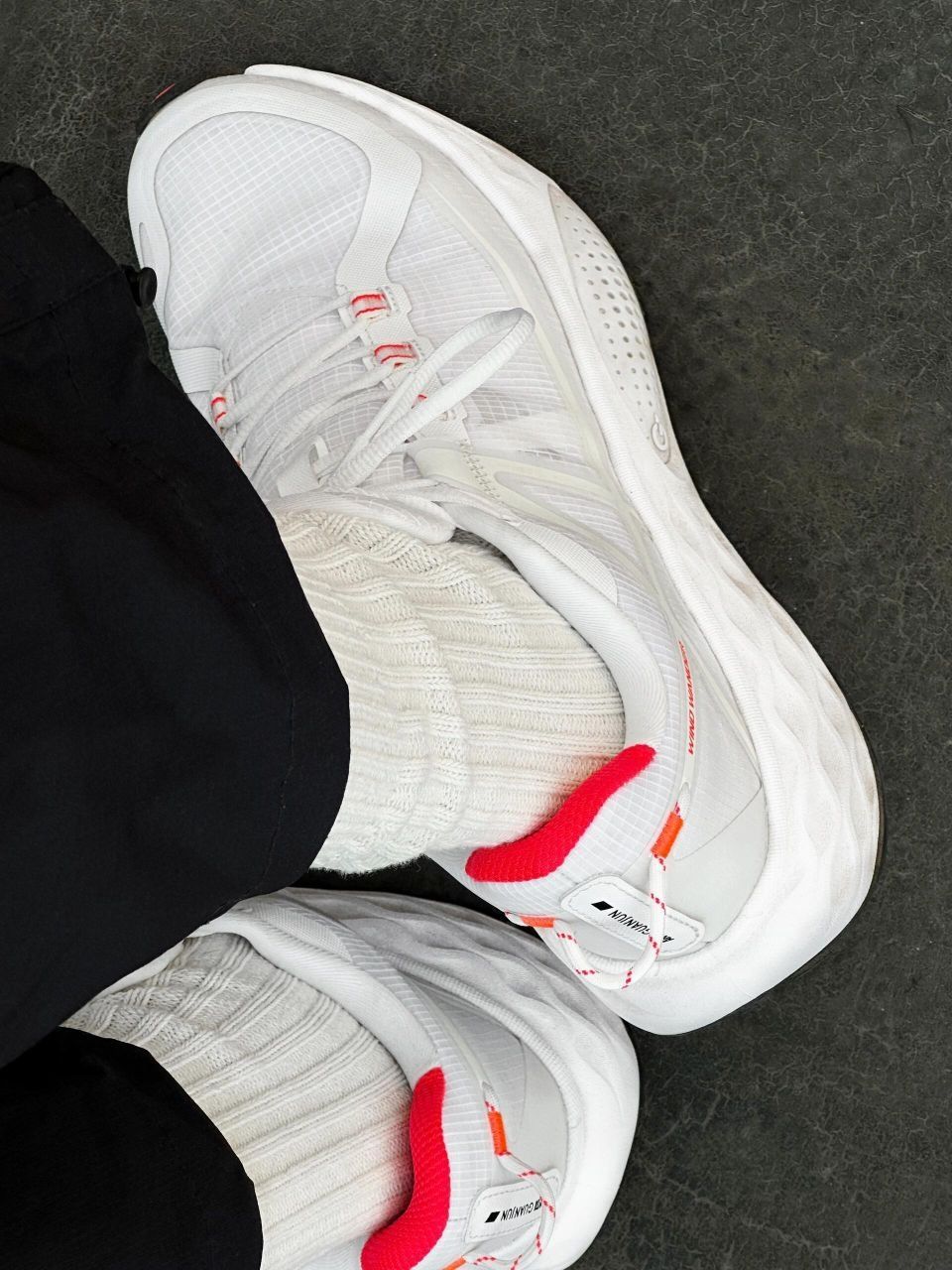好久没有被一双跑鞋惊艳到了 新出的安踏冠军乘风跑鞋脚感真的蛮绝 加厚全掌氮科技中底 有一种踩棉花的感觉 鞋面大面积的梭织材料 透气又很轻便 平时不跑步的时候 通勤穿也完全OK 纯白配色上脚干净清爽 也很百搭!