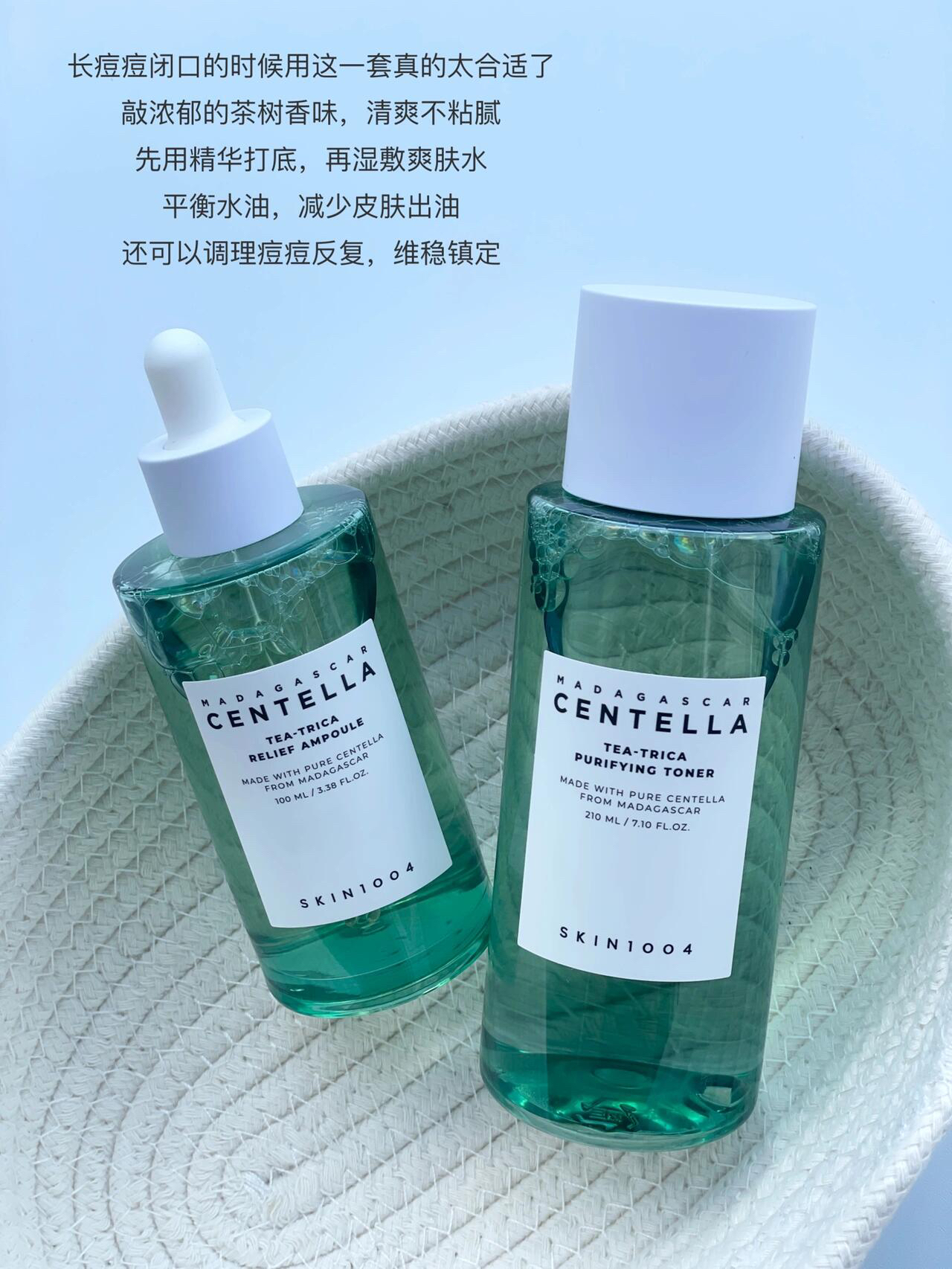 Beplain绿豆洗面奶 Beplain绿豆泥膜 Skin1004理肤天使茶树爽肤水 Skin1004理肤天使茶树精华 sunduk胡萝卜面膜 格乐喜茶树棉片 Rawquest芮凯诗松果菊面霜 Eqqualberry潜水衣防晒