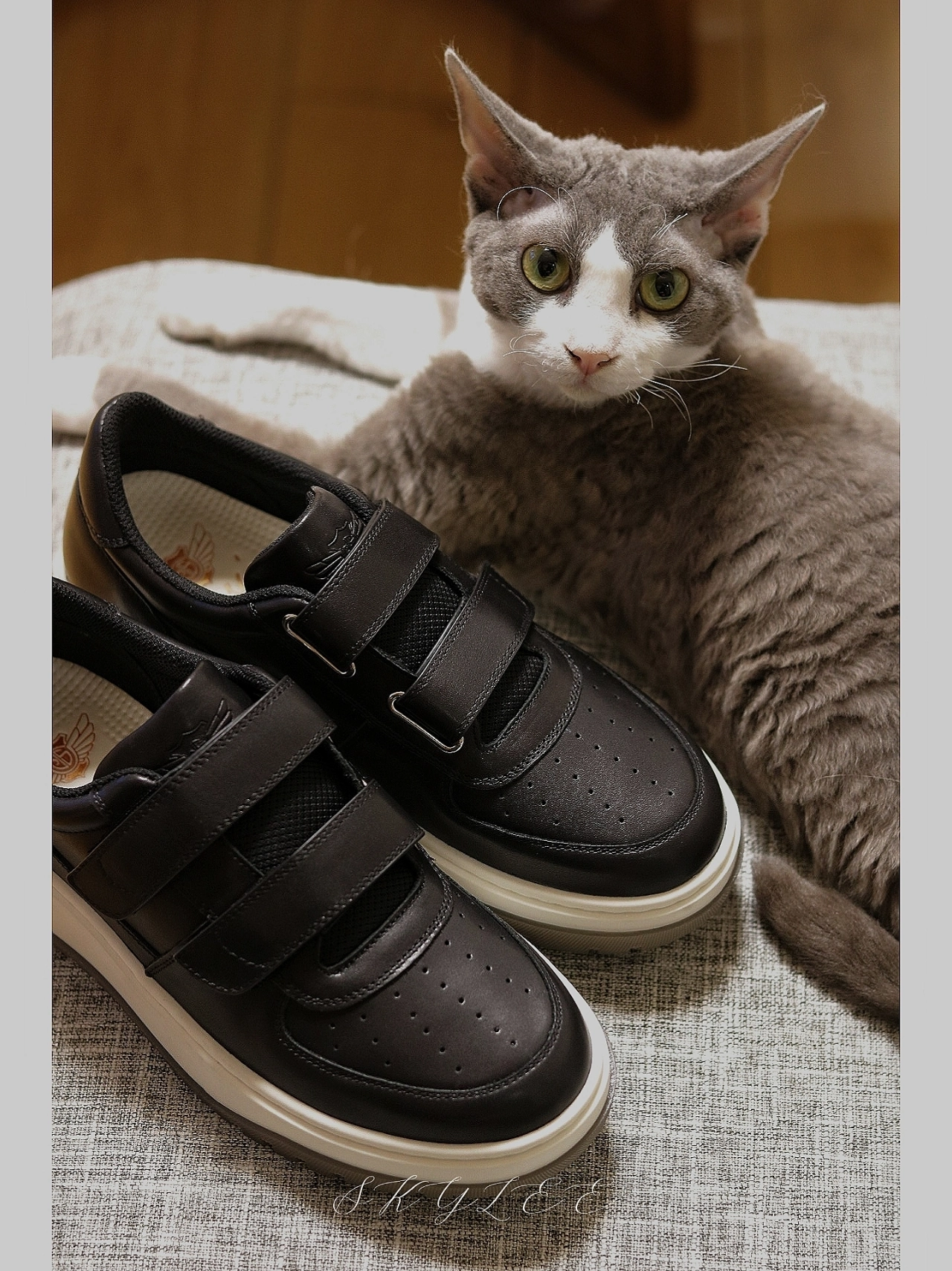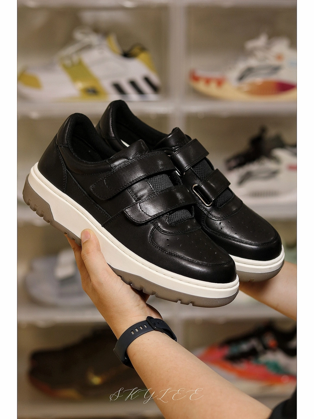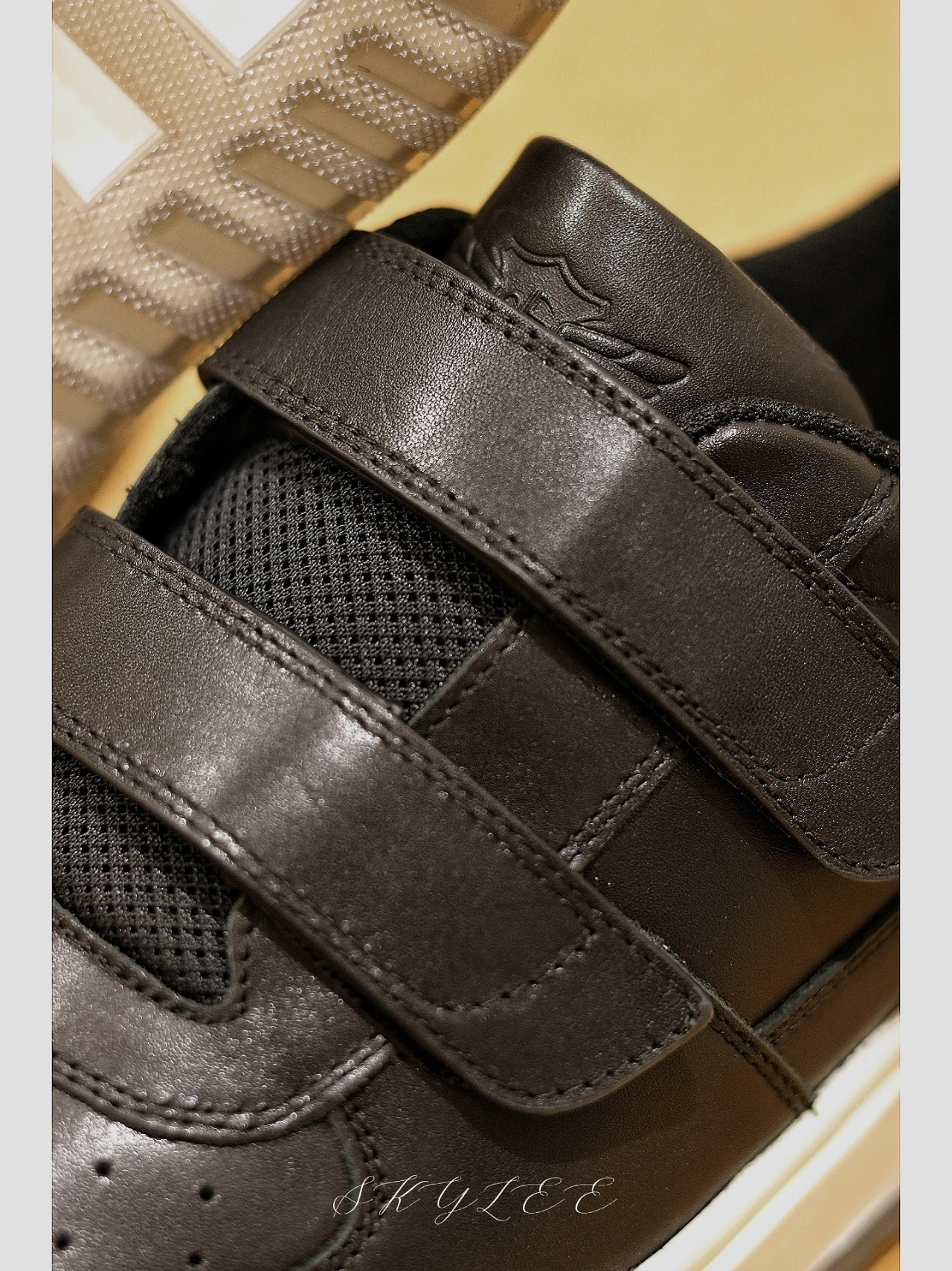 今天开箱我一起入手的魔术贴小白鞋的另一双,黑色的鞋面皮质都是头层牛皮,质感非常亮。魔术贴的设计真的太方便了,白色的eva中底搭配鞋垫,脚感的软硬度正好,还有一些增高效果😏 大底的材质也属于比较耐磨的👍 #板鞋才是万金油 #今日份穿搭宝藏休闲鞋子 #酷飒男女情侣款宝藏鞋子 #德赛Desai #夏日宝藏休闲运动鞋 #夏日休闲风OOTD #男生穿夏季OOTD