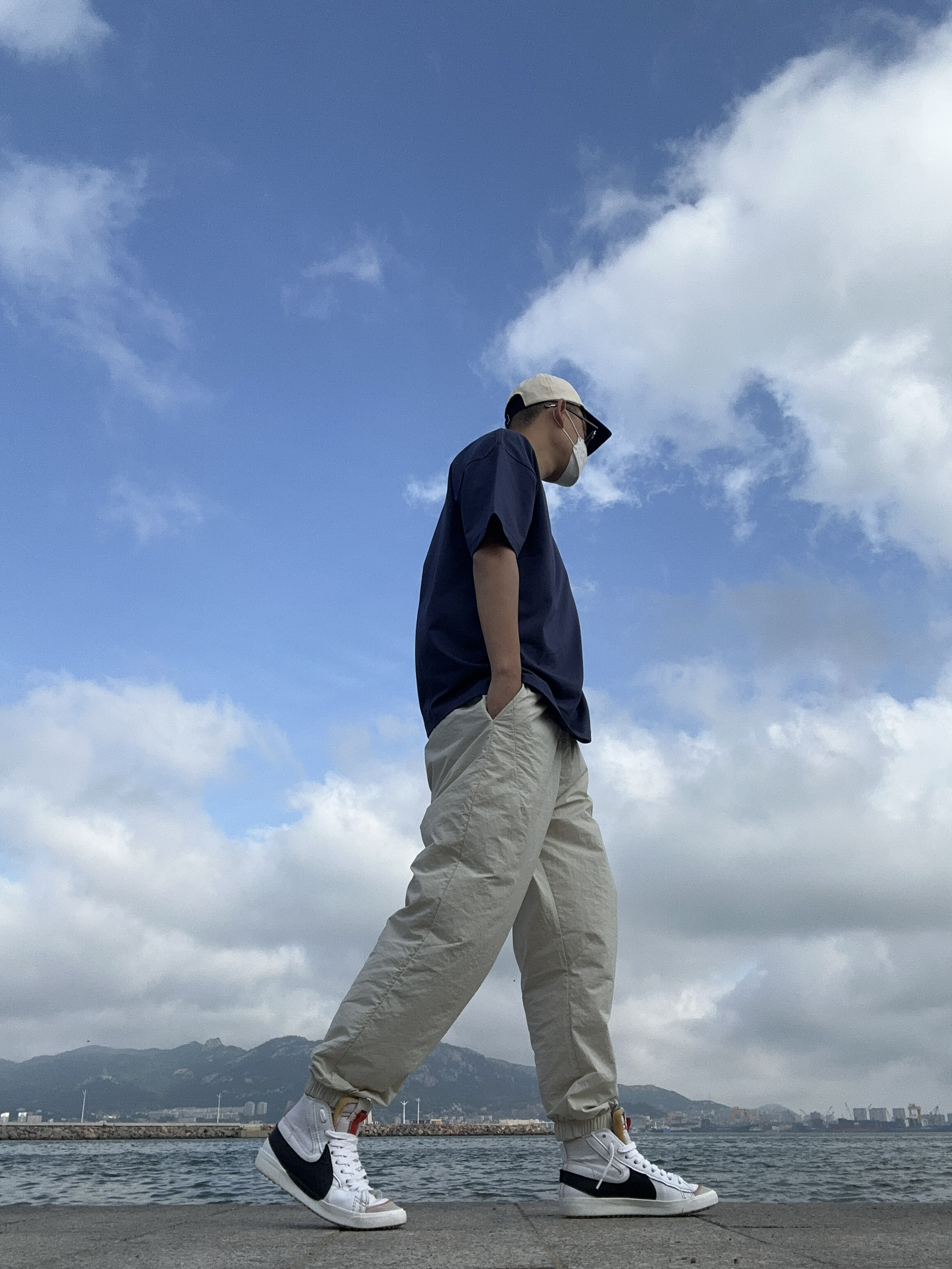 海天之间的某处有没有藏着一群精灵? 阳光下的蓝色系格外亮眼 搭配浅色机能风束脚裤不拘紧刻板 有风的地方,就有希望 身高|体重:185CM 77KG 🧍♂️ 穿搭风格:美式机能风 👟球鞋:Nike Blazer 👕上衣:BRNR 👖裤子:Minfinity