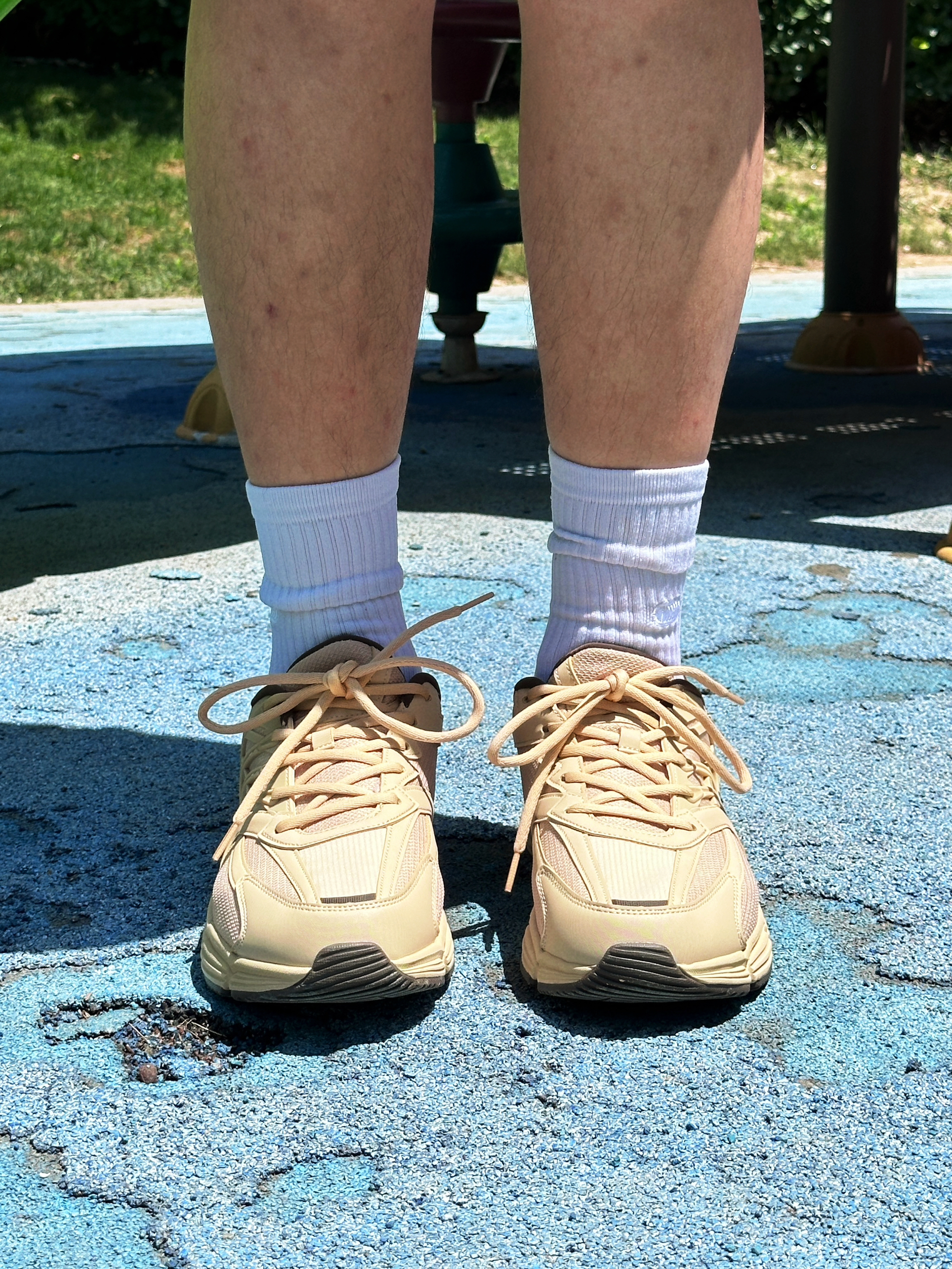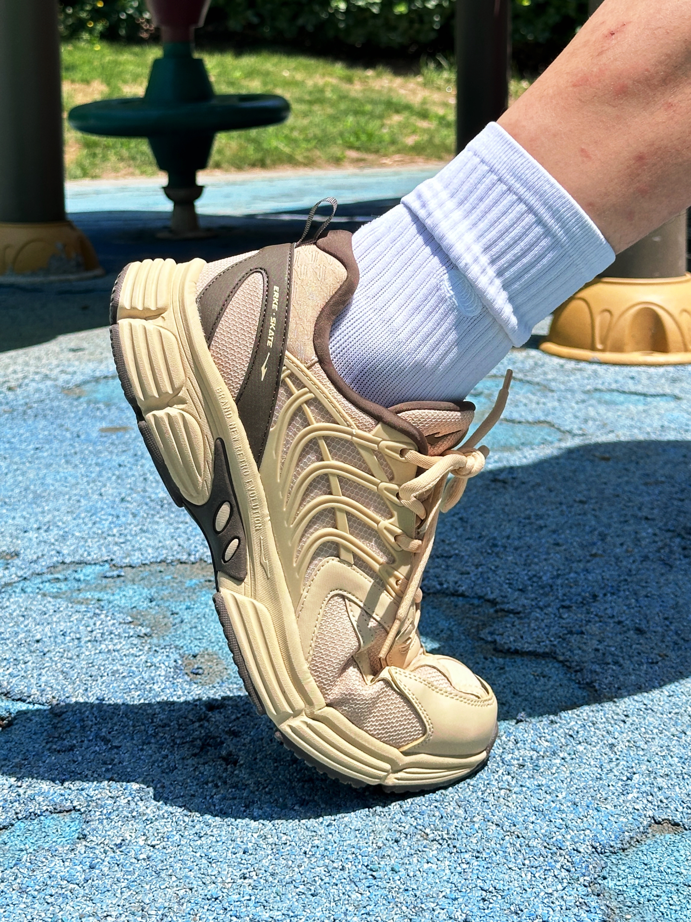 鸿星尔克 鱼刺 目前 2 开左右,我选择的是这双沙漠黄,那么这双就是当下热门的千禧风。 上脚以后我穿 45 的正合适,尺码依旧正常不偏码,鞋楦做的偏窄一些,中底的重心也更底,中底踩着也更宣软一些,中底特殊的造型在走路的挤压过程中会产生一些形变,反馈给的很直接,所以感觉更适合日常通勤使用。 值得一提的是鞋面的透气性非常出色,再配合外侧像鱼刺一样的 TPU 增加了支撑度,大底依旧是粗旷的耐磨橡胶,...