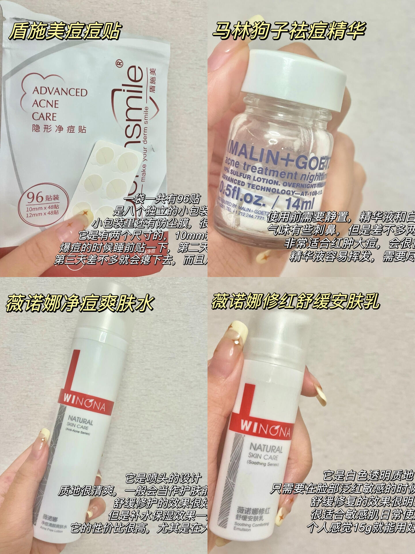 本篇笔记关联了盾施美 小云朵遮痘隐形痘痘贴 超薄净痘、Winona/薇诺娜 舒缓安肤乳 强韧屏障修护敏肌改善泛红调节肤色紧绷感 修正泛红等商品,为用户提供真实的使用体验和购买参考。