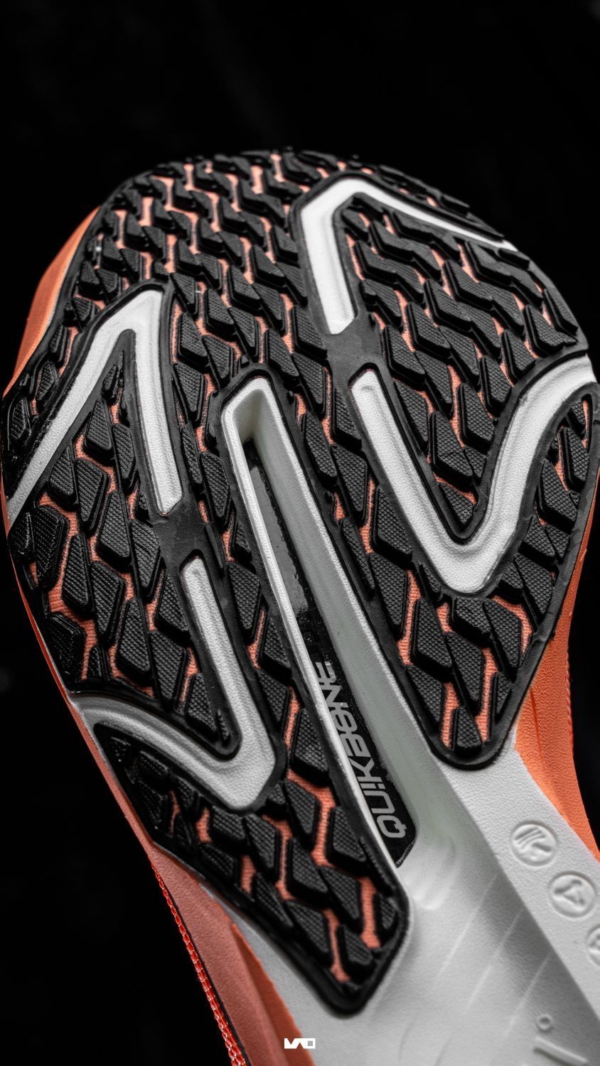 讲真的, 飚速Future拿到手第一眼的感觉, 这不就是双没钉子的钉鞋吗? 前掌厚度高于后掌, 金属鞋钉换成橡胶, 就是很极致的薄底快靴。 短跑体育生应该会很喜欢, 尤其是喜欢前掌跑法的。 上脚感受要比Pro更韧,蹬地响应更快。 也正因如此, 它并不一定适合所有人, 因为我觉得这个配置, 大多数人可能用不到, 因为它比跑马的碳板跑鞋的适用场景还要少, 就是很专的跑道竞速, 适合这个场景的才能把它的...