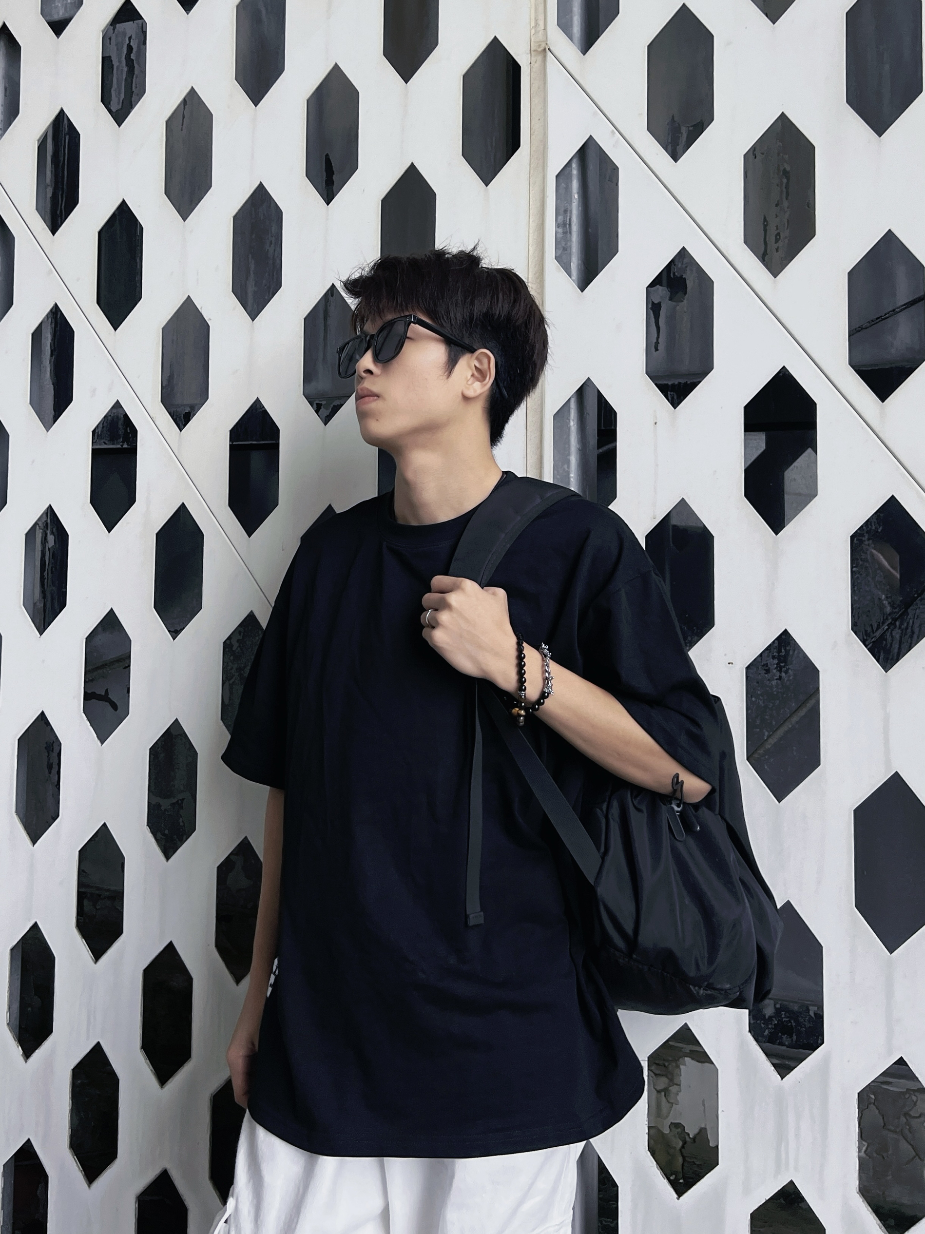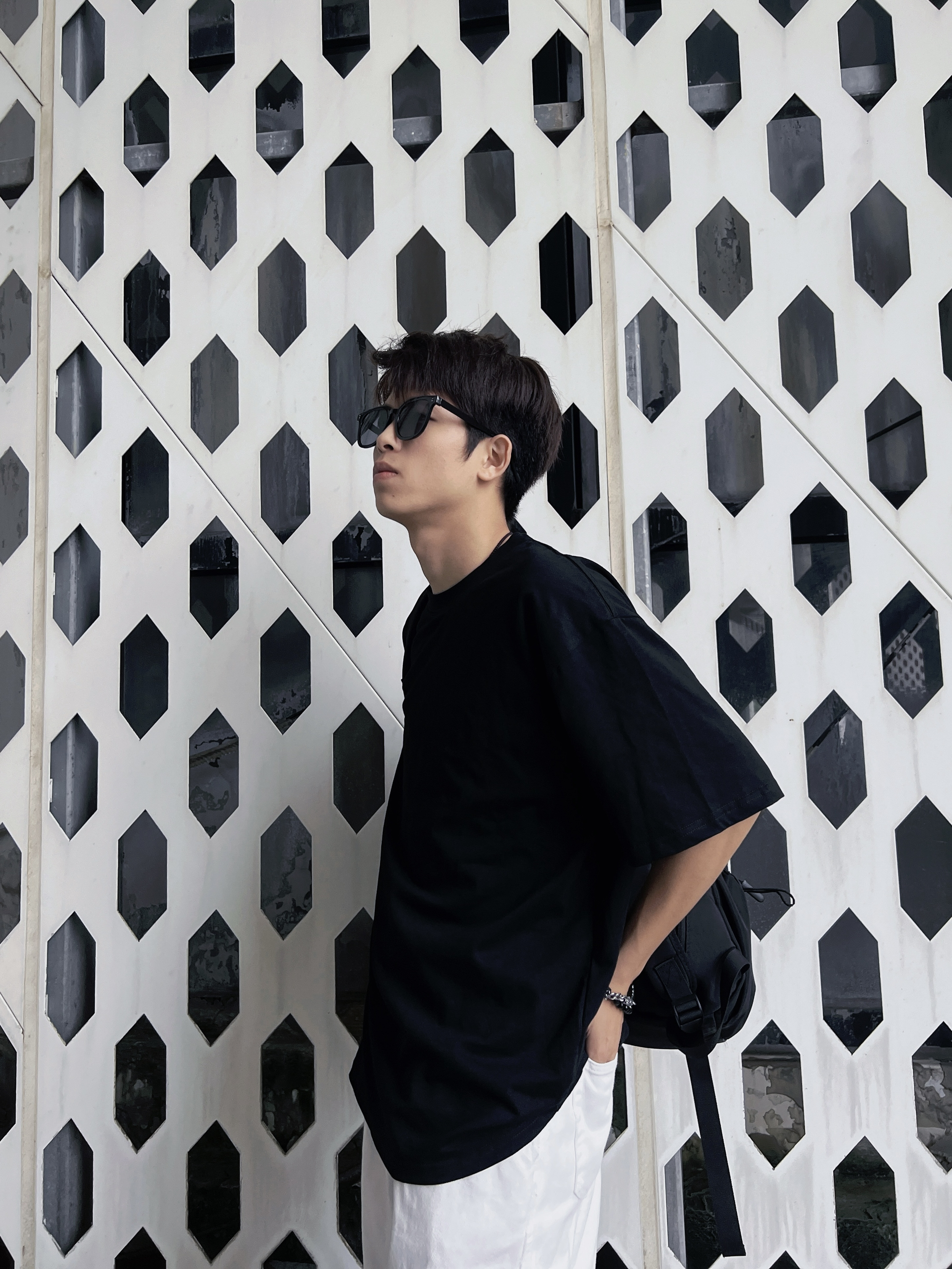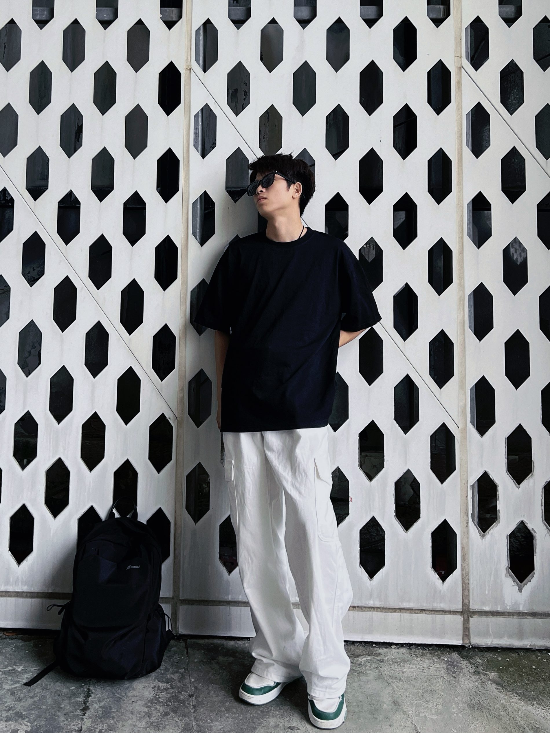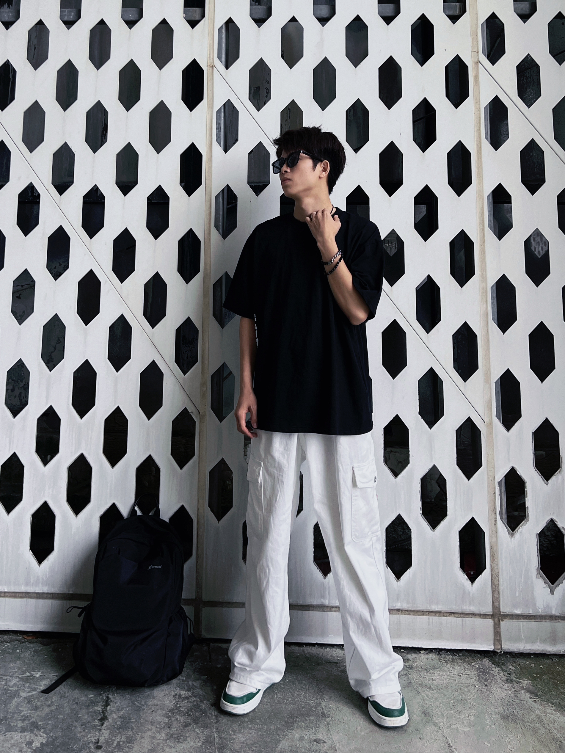 哈喽、大家好,这里是挽晨今日份色系穿搭分享:黑色搭配白色上衣是一件黑色T桖,可以穿大一点,更有松弛 感 裤子是一条白色的阔腿牛仔裤,搭配上衣夏日松弛感直接拉满! 鞋子是板鞋 配饰:背包