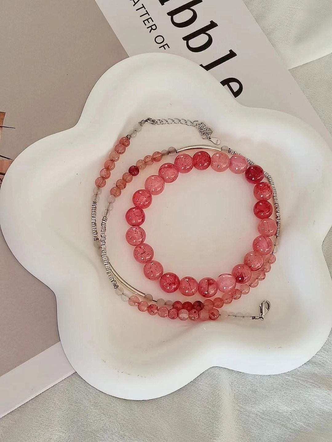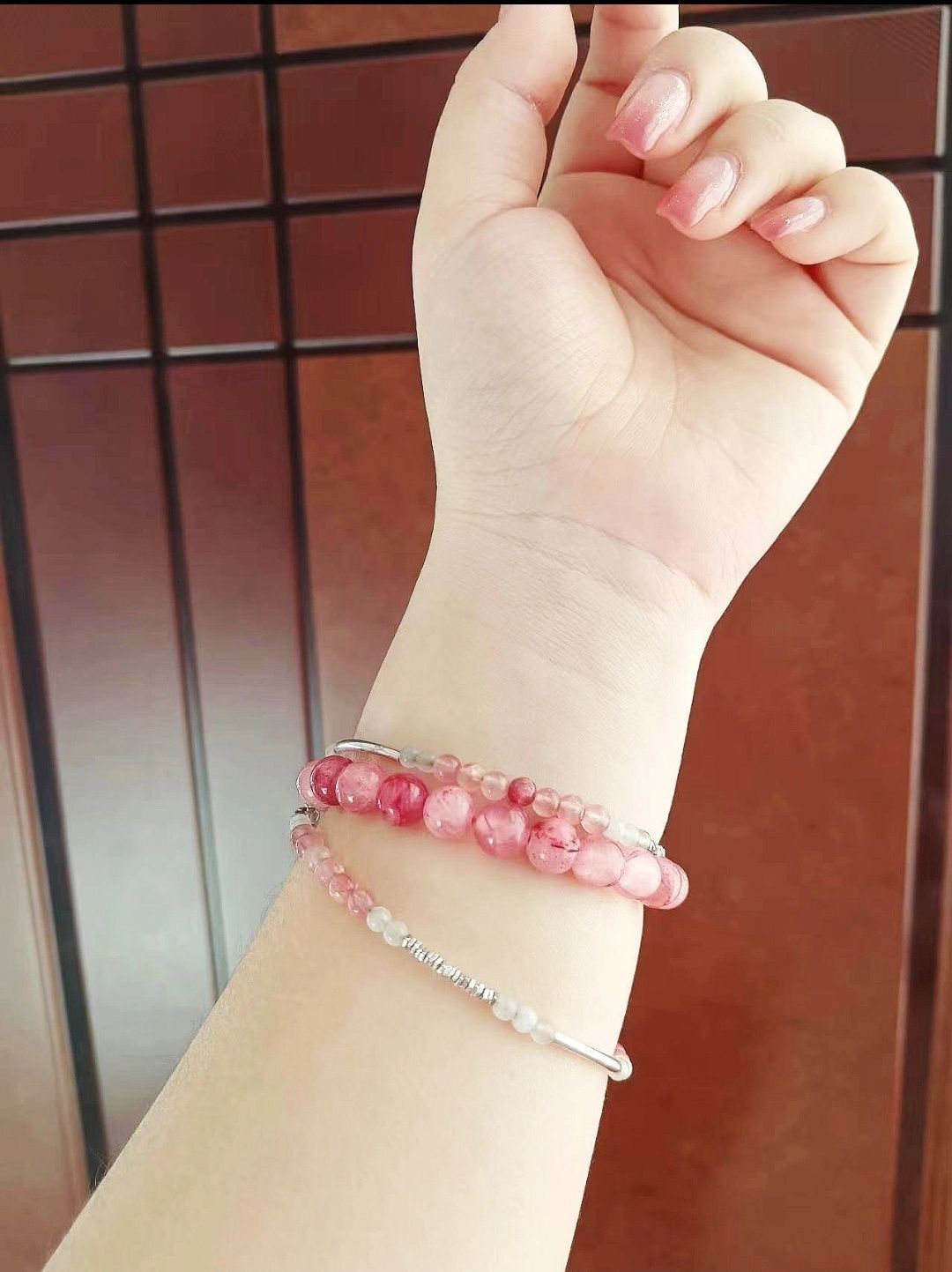 有没有人懂粉色手链的美呀! 这也太漂亮啦 粉色真的是一个贼显白的颜色 显得手腕又细又白 女孩子嘛都不喜欢自己首饰多多 然后每天换着戴哈哈哈哈哈 再搭配一个亮晶晶的美甲 一整个氛围感拉满了 戴上以后总忍不住把袖子挽起来哈哈哈哈哈哈 这么好看不露出来那不是浪费了