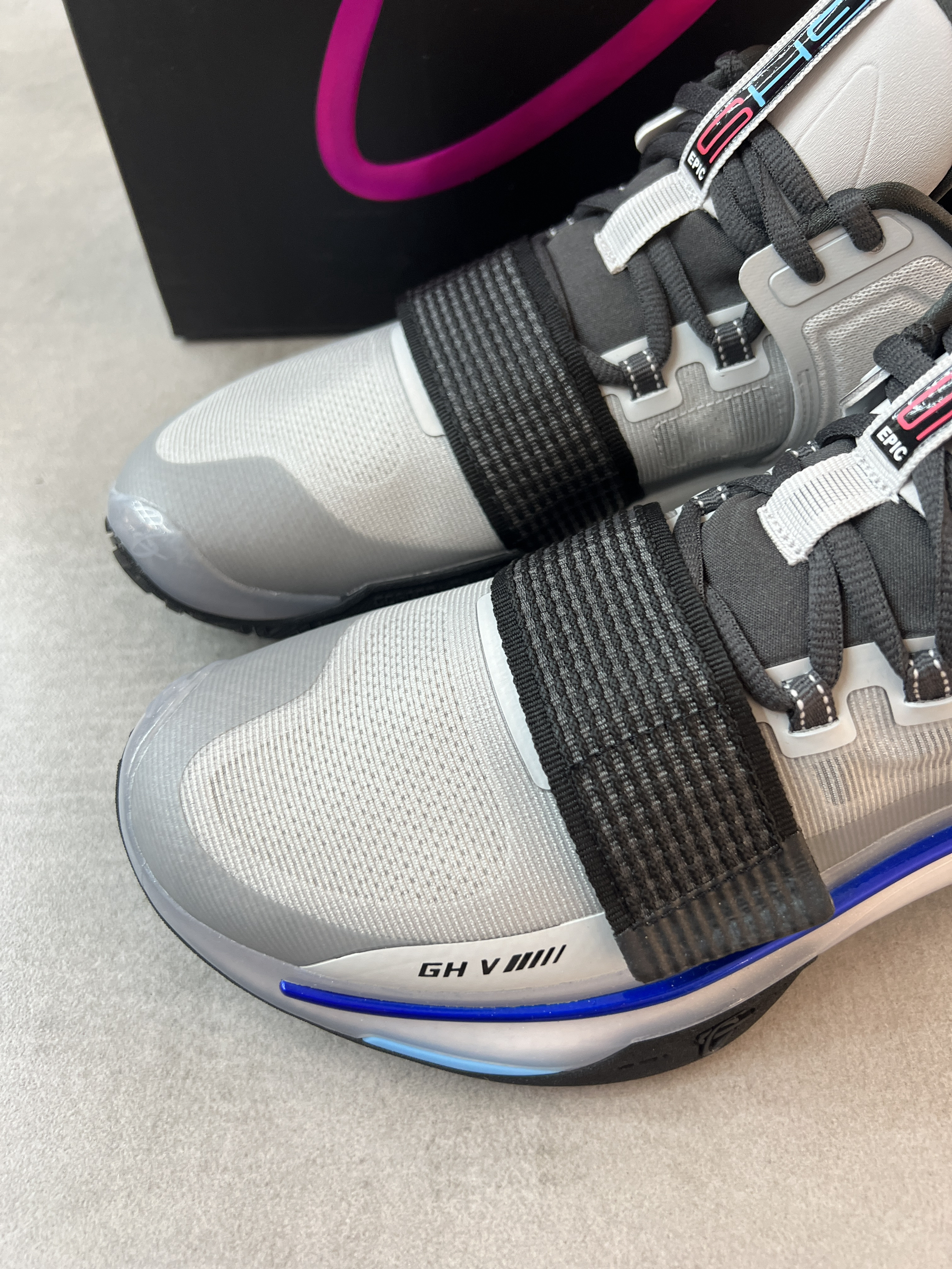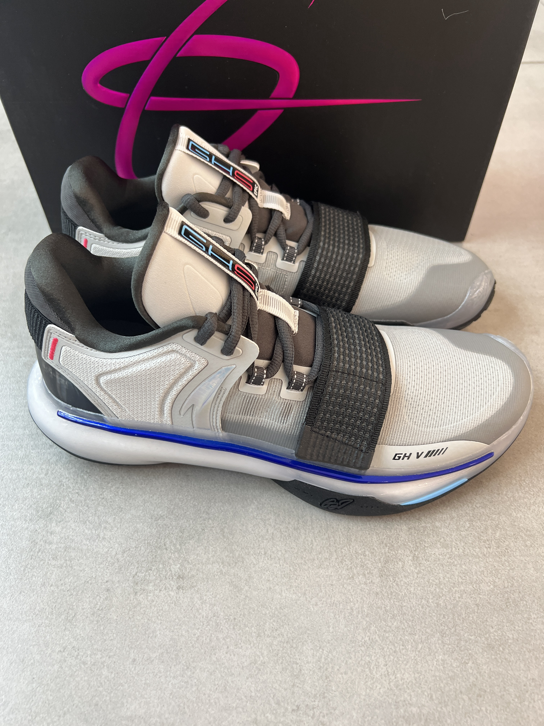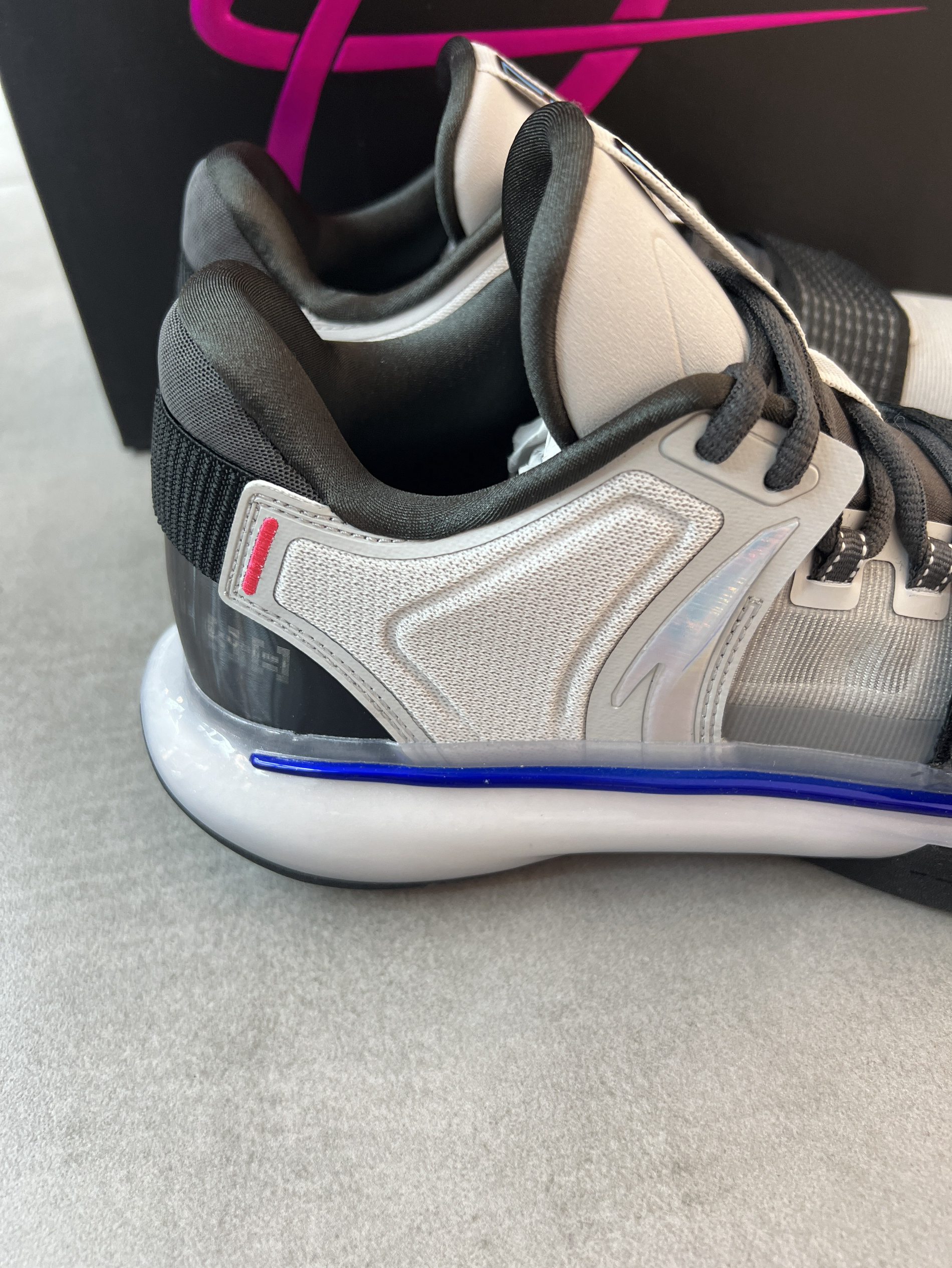 安踏近期上新了海沃德GH5史诗版! 听着名字就很厉害的样子! 颜值没话说,这个配色非常酷炫啊,鞋子整体质感非常好,拿在手里实物很耐看。 配置和之前区别不大,性能还是不错的!添加了魔术贴和后跟动态设计,很有创意很新颖,上脚舒适度很OK,很软弹,实战效果更是无敌👍