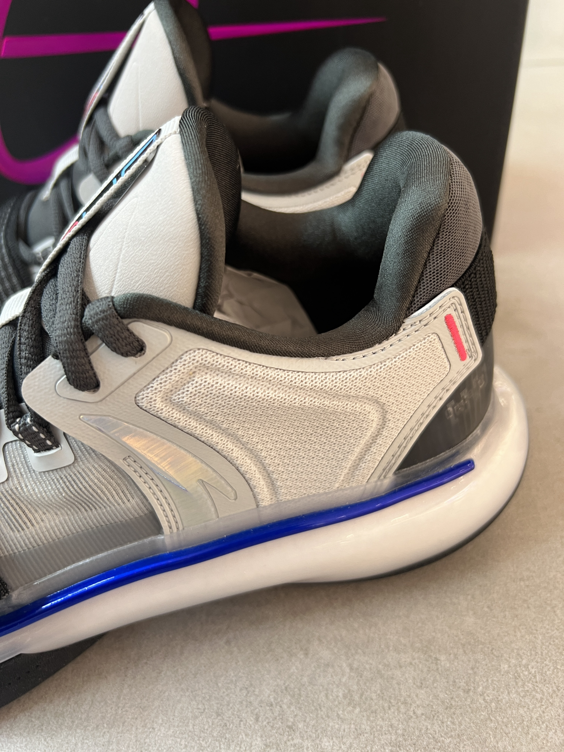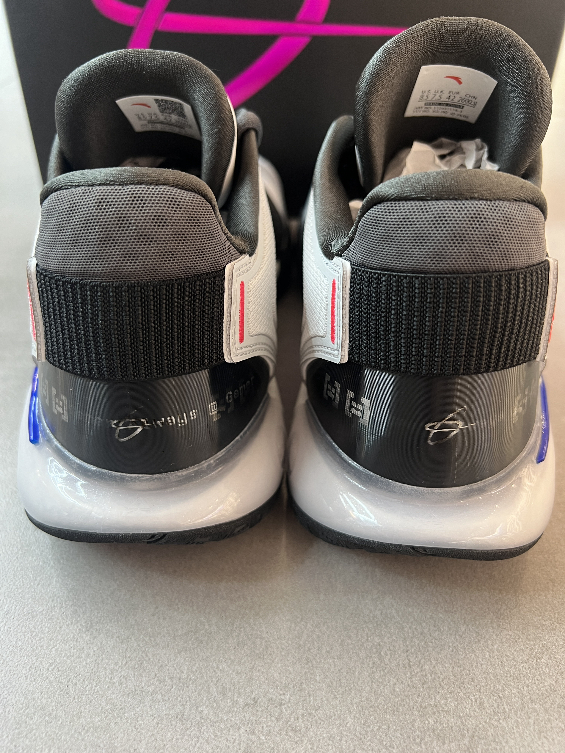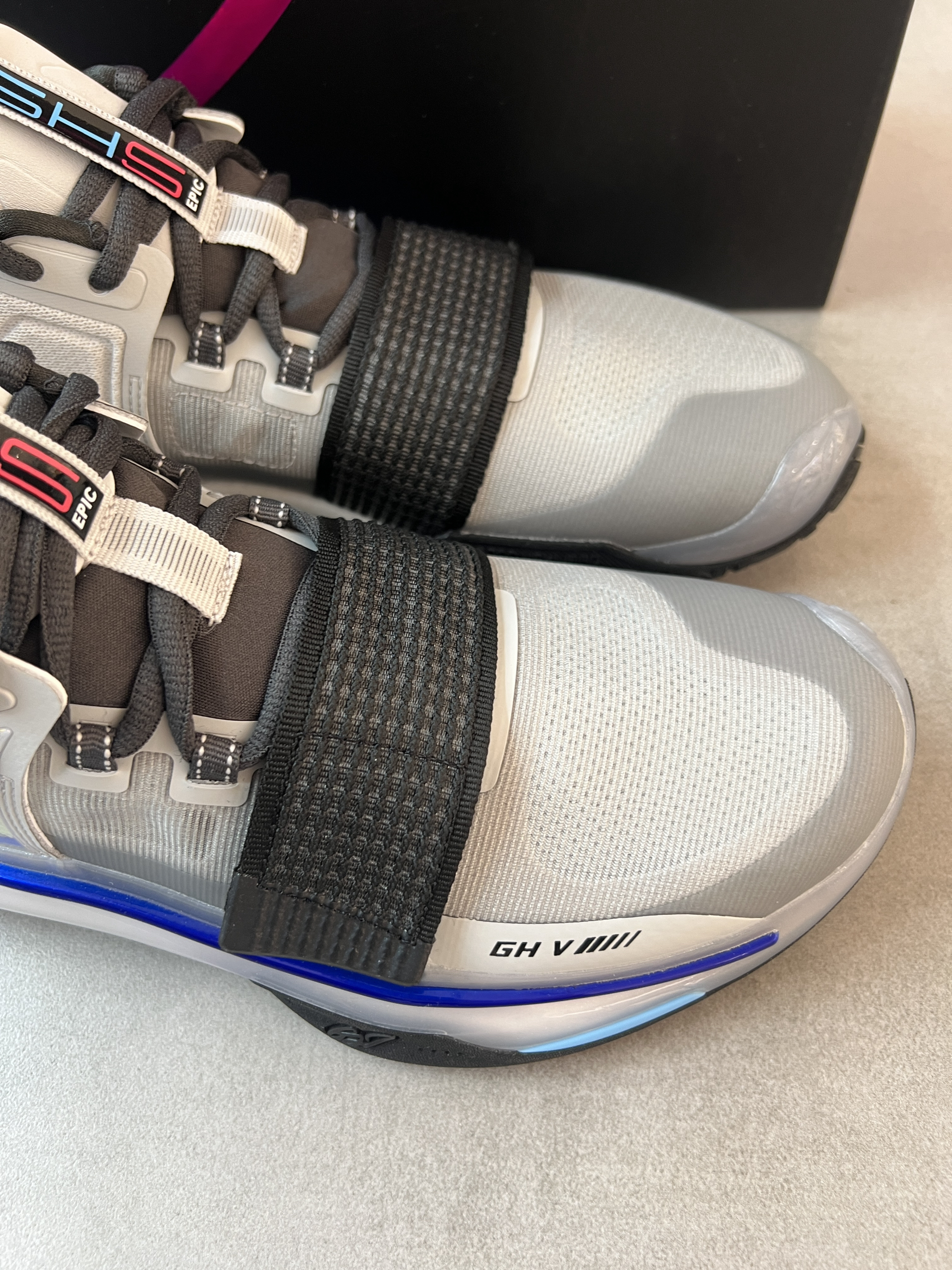 安踏近期上新了海沃德GH5史诗版! 听着名字就很厉害的样子! 颜值没话说,这个配色非常酷炫啊,鞋子整体质感非常好,拿在手里实物很耐看。 配置和之前区别不大,性能还是不错的!添加了魔术贴和后跟动态设计,很有创意很新颖,上脚舒适度很OK,很软弹,实战效果更是无敌👍