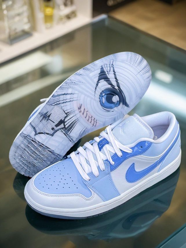 这款雾霾蓝AJ1低帮板鞋,真的是太有个性了哈哈大家从鞋底都能看出来他无论是颜值还是设计方面都是天花板级别!男女同款!非常的百搭!帅!