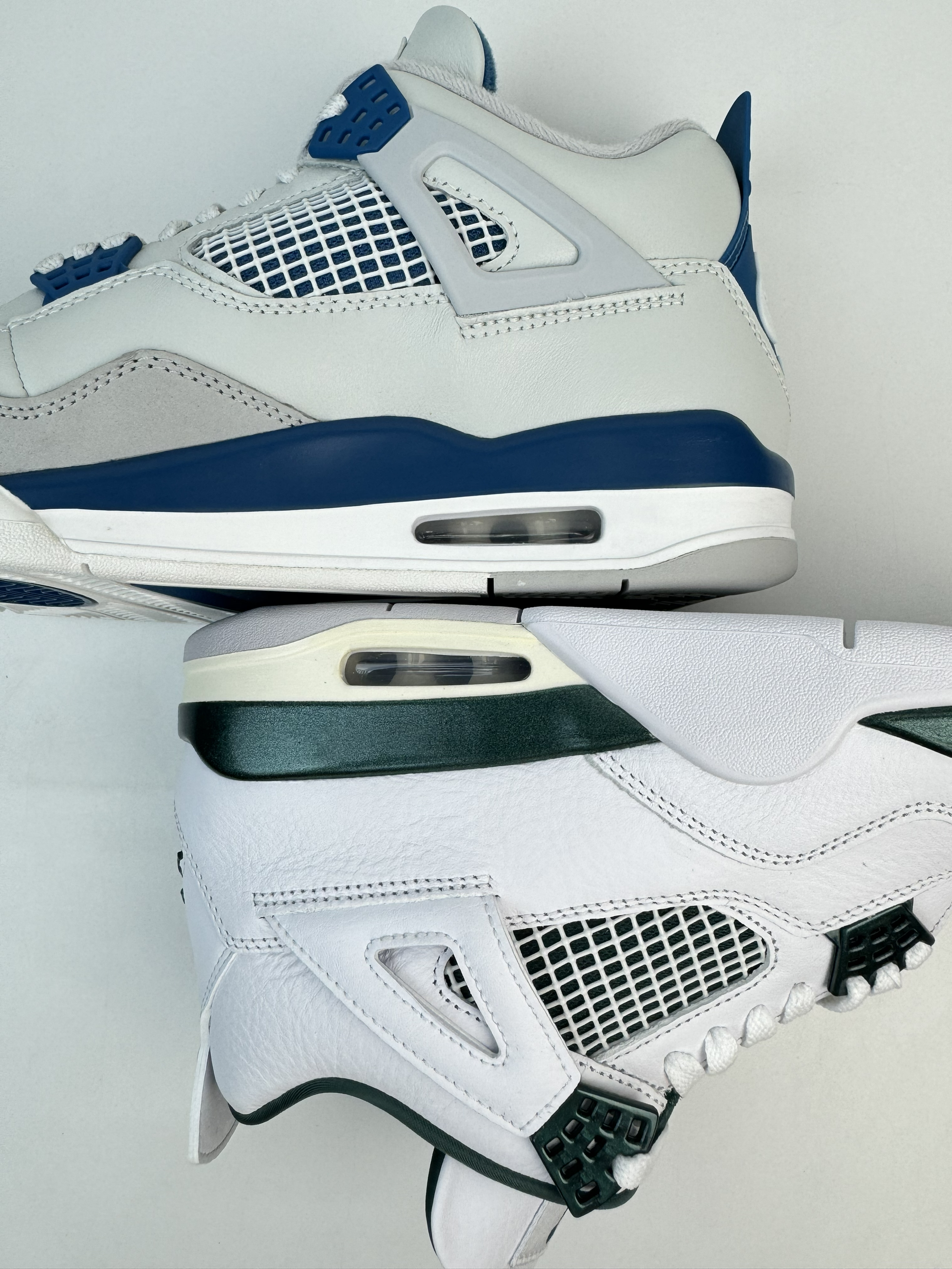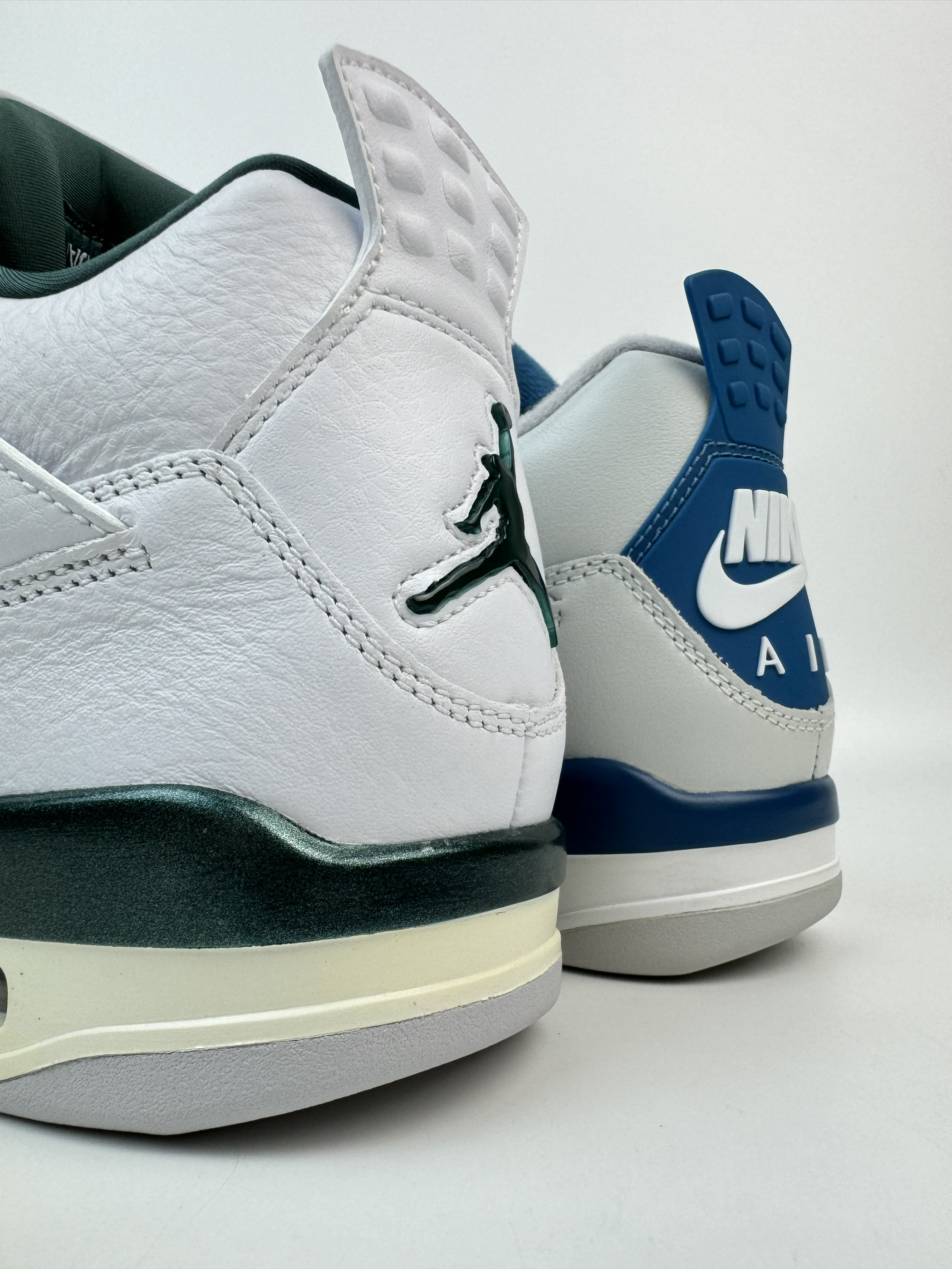 AJ4 白蓝2024,采用男款/GS款鞋型进行发售,尺码从35.5-47.5码,此次发售基本还原了元年设计,但是鞋面本该纯白色部分的确用了颜色比较暗的灰白配色,蓝色部分也同样采用了较暗的蓝色呈现,整体给人感觉差点意思。 AJ4白绿 鞋款采用男款/GS款鞋型进行发售,尺码从35.5-47.5码,覆盖大部分成年人,大面积白色为主很清爽百搭,全牛皮革打造皮面厚实质感很不错,鞋子最大亮点就是中底氧化做旧,...