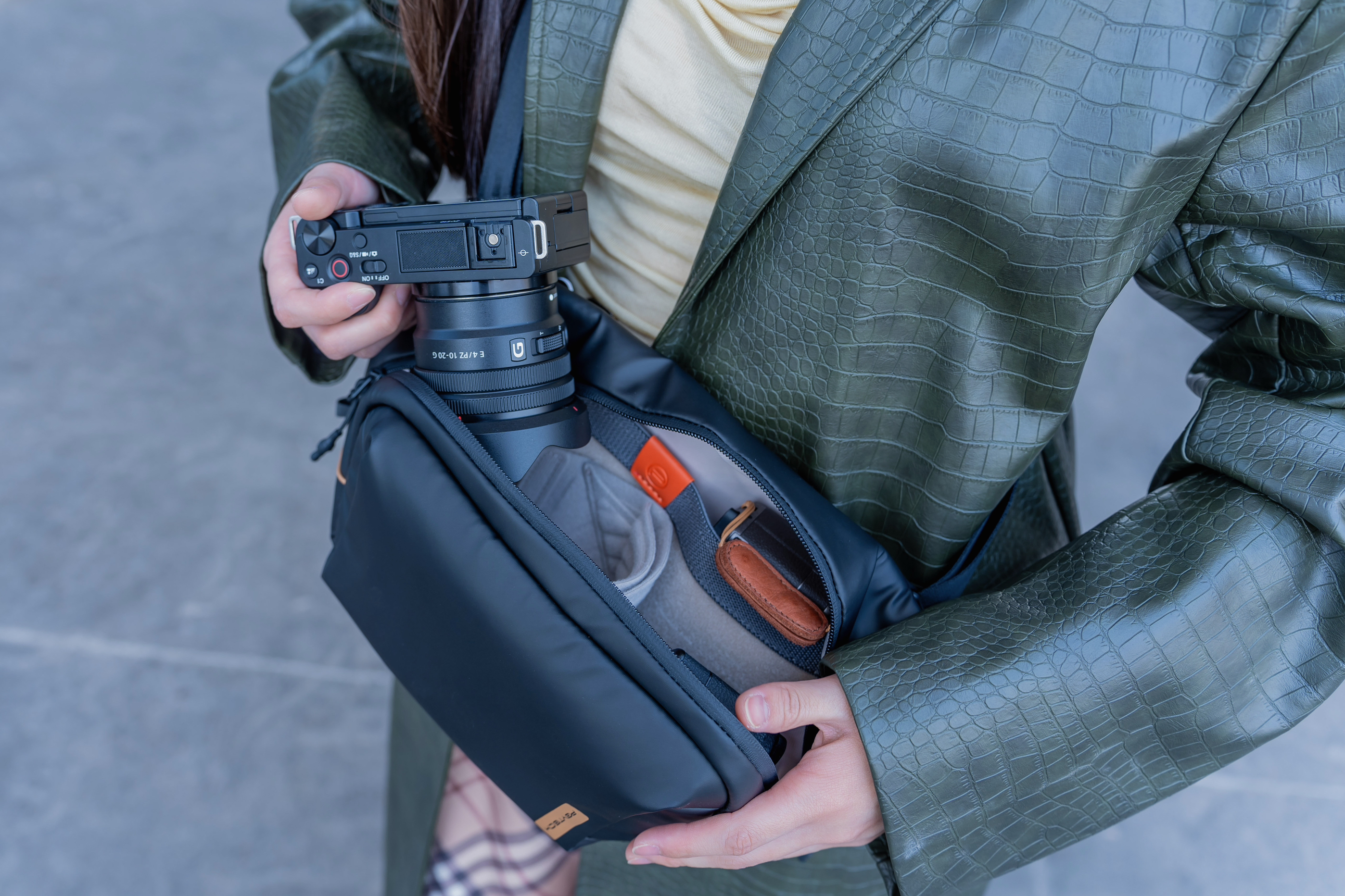 🔰首先说说4L包,这款是系列中最小的一个,但功能性丝毫不减。它的设计非常适合日常出行,轻便而不失风格。虽然体积小,但它的内部空间被高效利用,拥有多个分隔口袋,甚至还有一个快速访问的前袋,可以轻松取出常用物品。这款包特别适合携带基本的摄影设备,如单反相机、一个或两个镜头和一些小型配件。