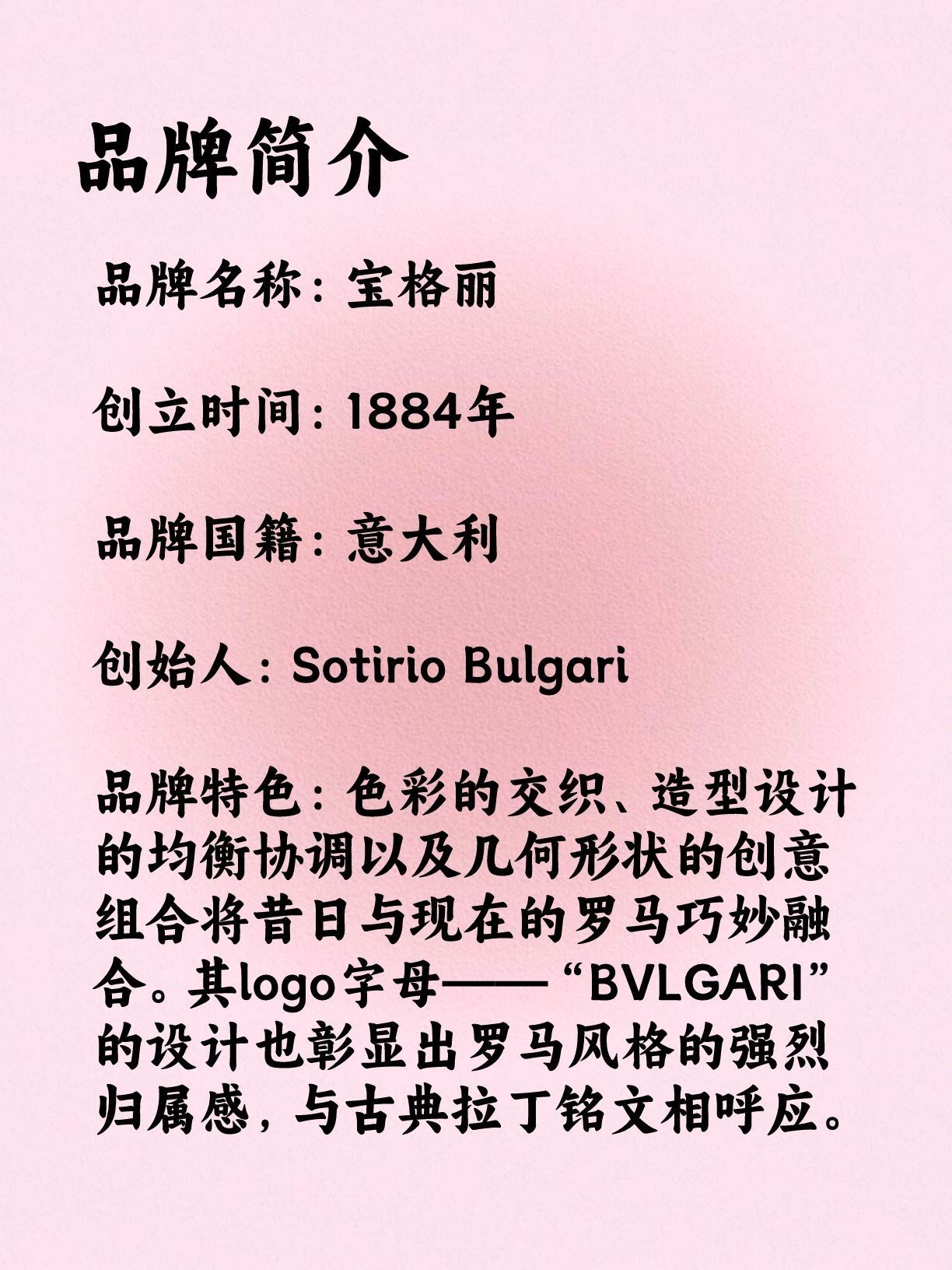 BVLGARI,意大利奢侈品牌,融合希腊、意大利古典文化和现代元素,展现其大胆独特、尊贵古典的设计风格。