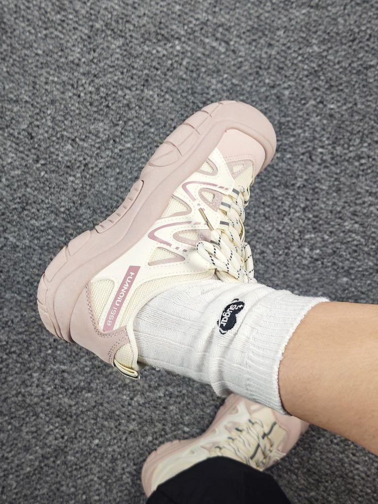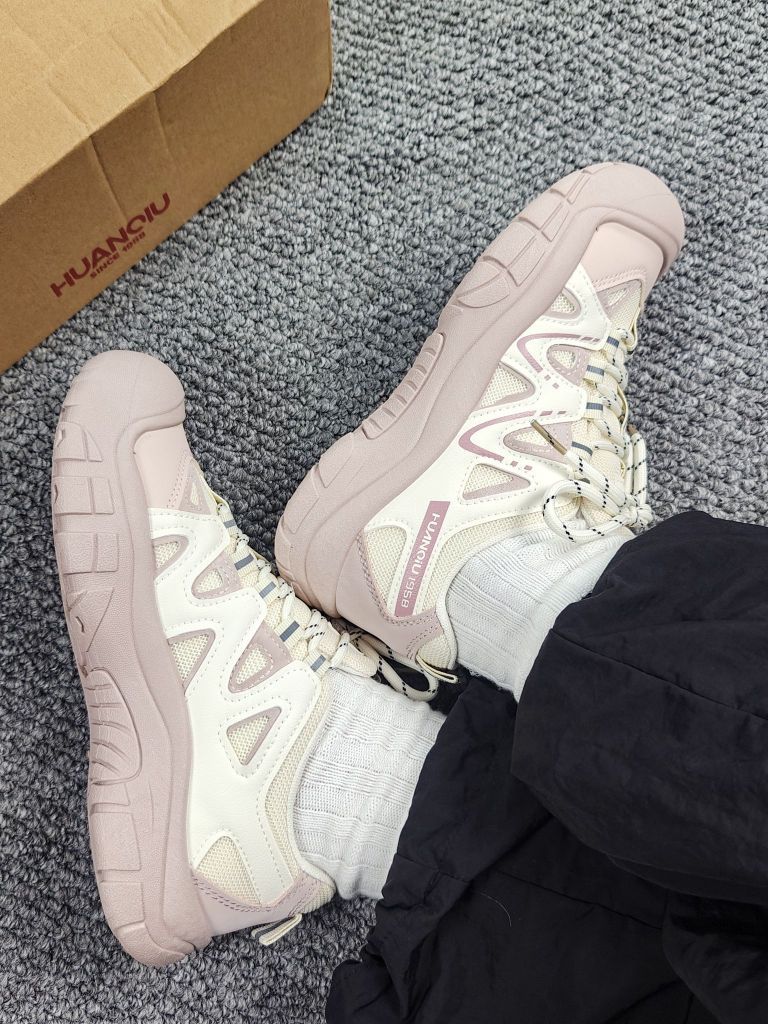 今年这种鞋子尊嘟好火 跟风买了一双 幸好没踩雷 藕粉色好清新 脚感软软糯糯 上脚轻便又透气 搭配工装裤户外感满满 爬山暴走也不累脚