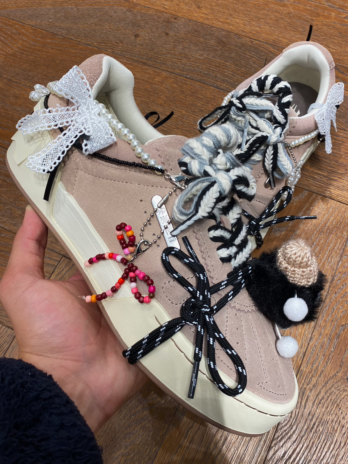 鞋面多处使用翻毛皮与织布拼接工艺,色彩交叉,非常适合这个夏天穿搭