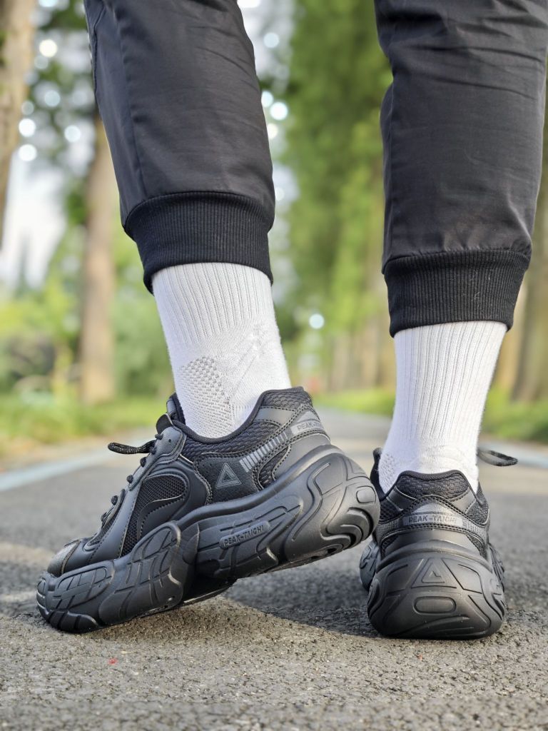 新入手的这双匹克态极轮胎鞋也太酷炫了,还是吴磊同款哦 选的这个黑武士配色也帅气,最适合通勤的配色, 不仅百搭耐脏,还很符合需要黑鞋的特殊职业哦 鞋面织物搭配皮革面料,适合日常休闲穿, 中底全掌态极科技,脚感自然没话说, 还有这个超厚的轮胎外底,穿上还有4厘米的增高效果 上脚很轻便,搭配卫裤短裤都不错 尺码方面按照匹克尺码选购即可哦