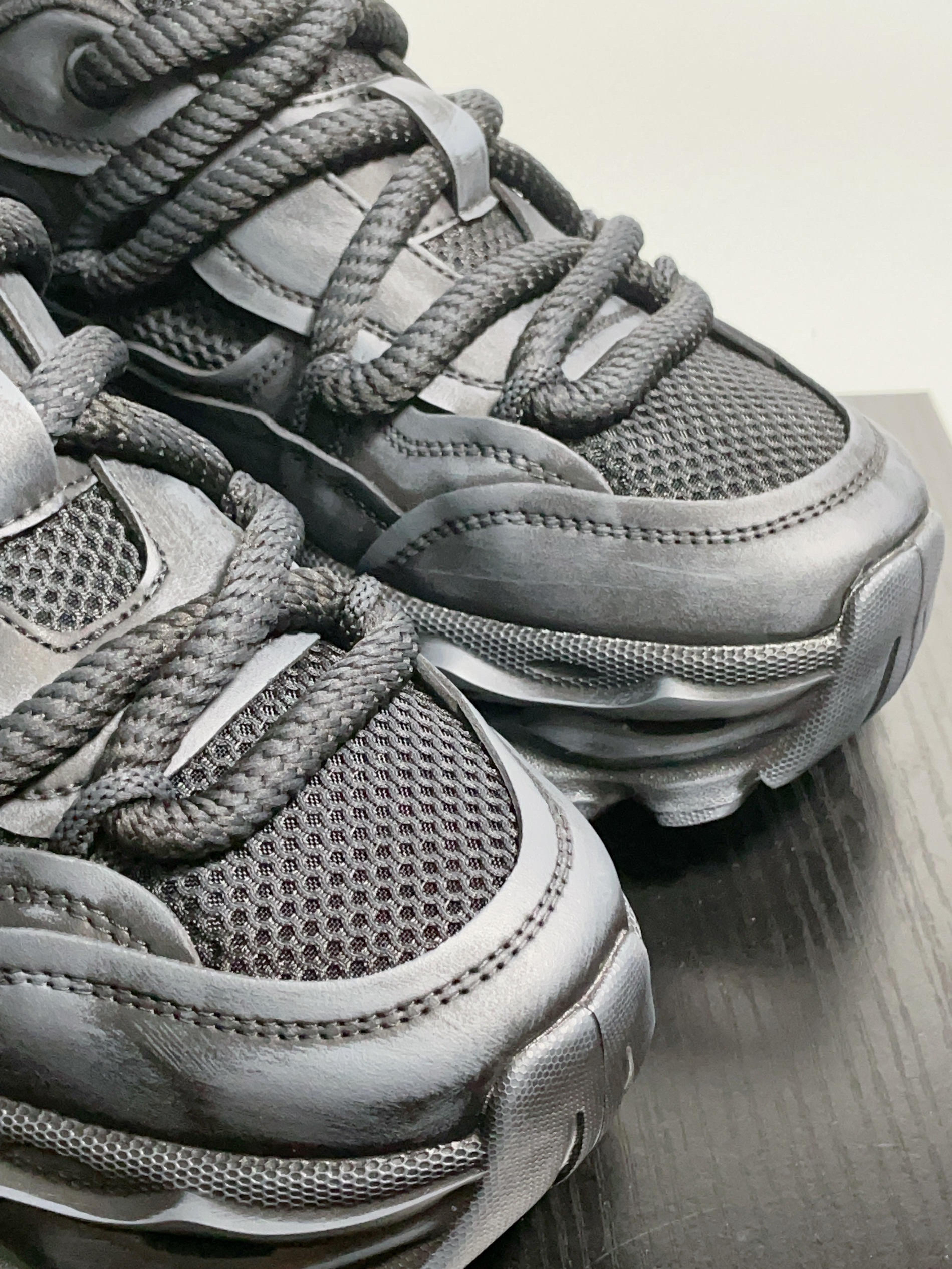 Oi!这里是每天都不想打工的打工仔 今天推荐的是马克华菲的老爹鞋 这双鞋的配色很有意思,是灰色带有一点蓝调 整体的设计偏废土风,视觉上颜值很高 因为采用的是网面面料,所以上脚也很舒服 鞋子的增高也很给力,目测大概有3cm 而且最近618价格也很便宜,只要300多 喜欢的兄弟可以冲一波
