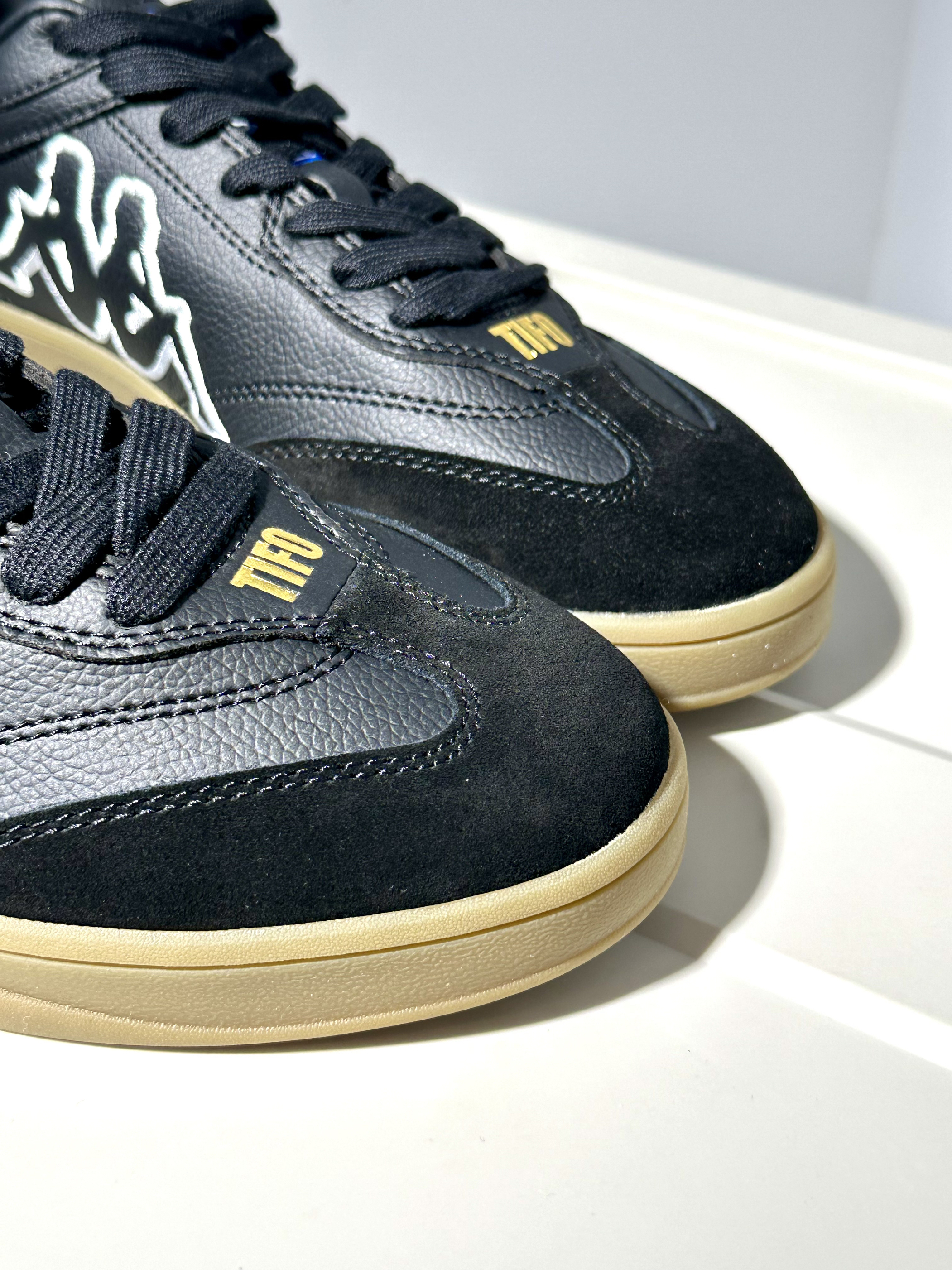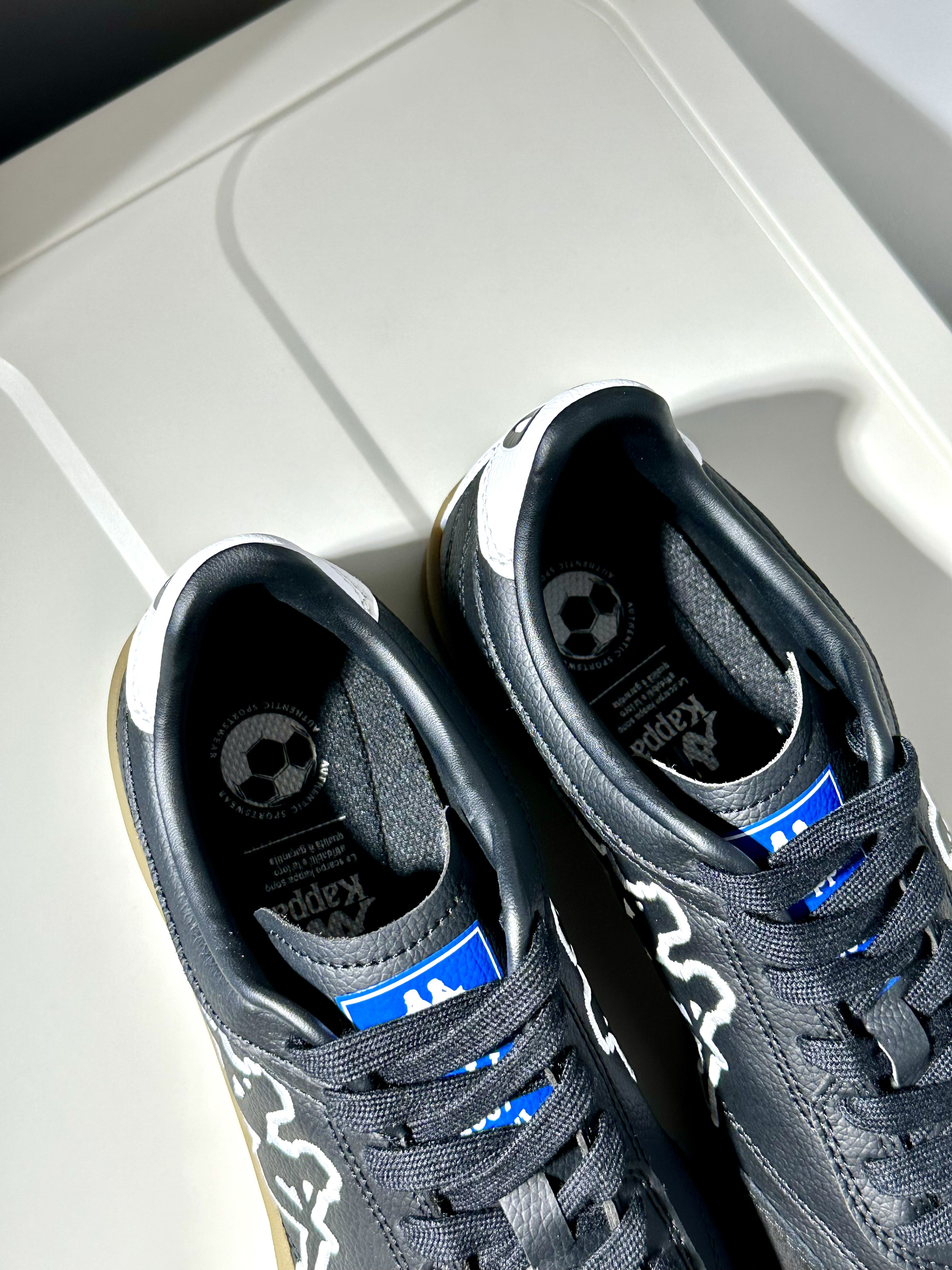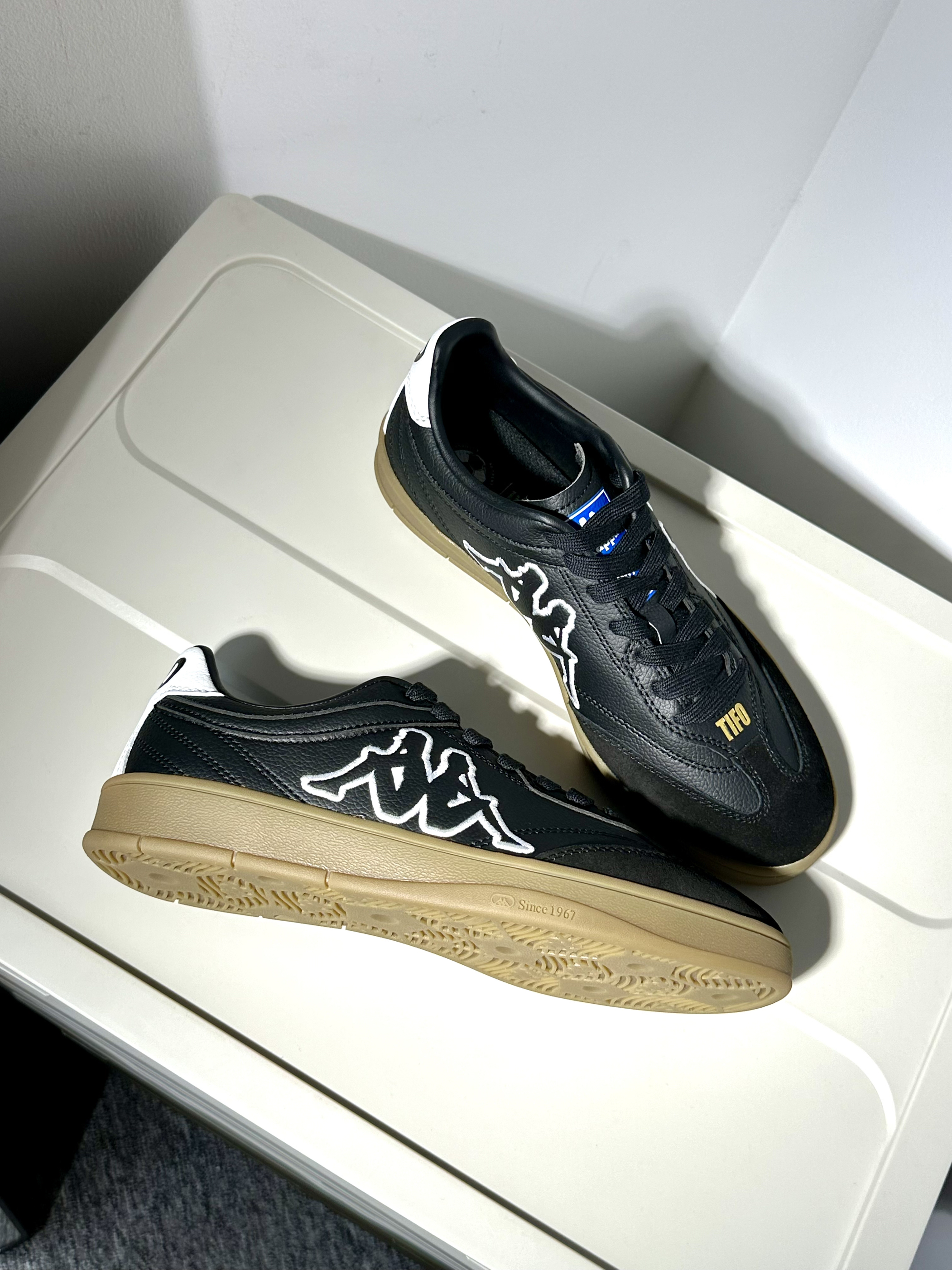 🥝配色:kappa的T头鞋的确很有质感,也是最近被种草的新系列~黑白色鞋面搭配褐色生胶底,浓浓的复古气息📼🌴 🥝材质:鞋面采用荔枝皮与麂皮拼接,质感很高级~看上去也更加复古经典‼️ 🥝脚感:踩上去软软糯糯的脚感,作为一双板鞋,上脚体验挺不错的🍋🟩 🥝尺码:正码选择就OK了!🥑