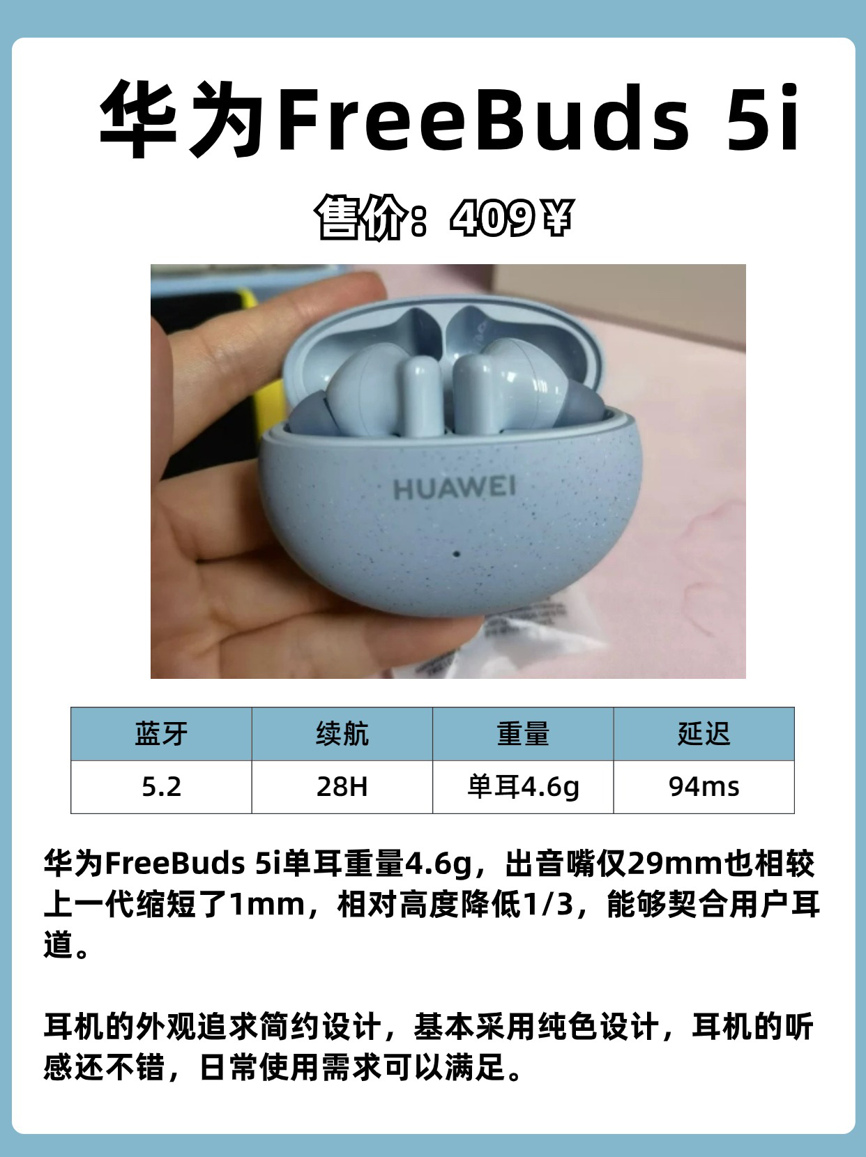 本篇笔记关联了HUAWEI/华为 FreeBuds 5i 入耳式 蓝牙耳机 真无线 主动降噪 超长续航 通话 运动 轻巧 低延迟 海岛蓝、OPPO Enco Air3 半入耳式 蓝牙 耳机 真无线 长续航 通话降噪 超长待机 跑步 低延迟 薄雾紫、UGreen/绿联 HiTune T6 入耳式 蓝牙 耳机 真无线 主动降噪 高音质 低延迟 超长续航 半入耳 运动 白色等商品,为用户提供真实的使用体验和购买参考。