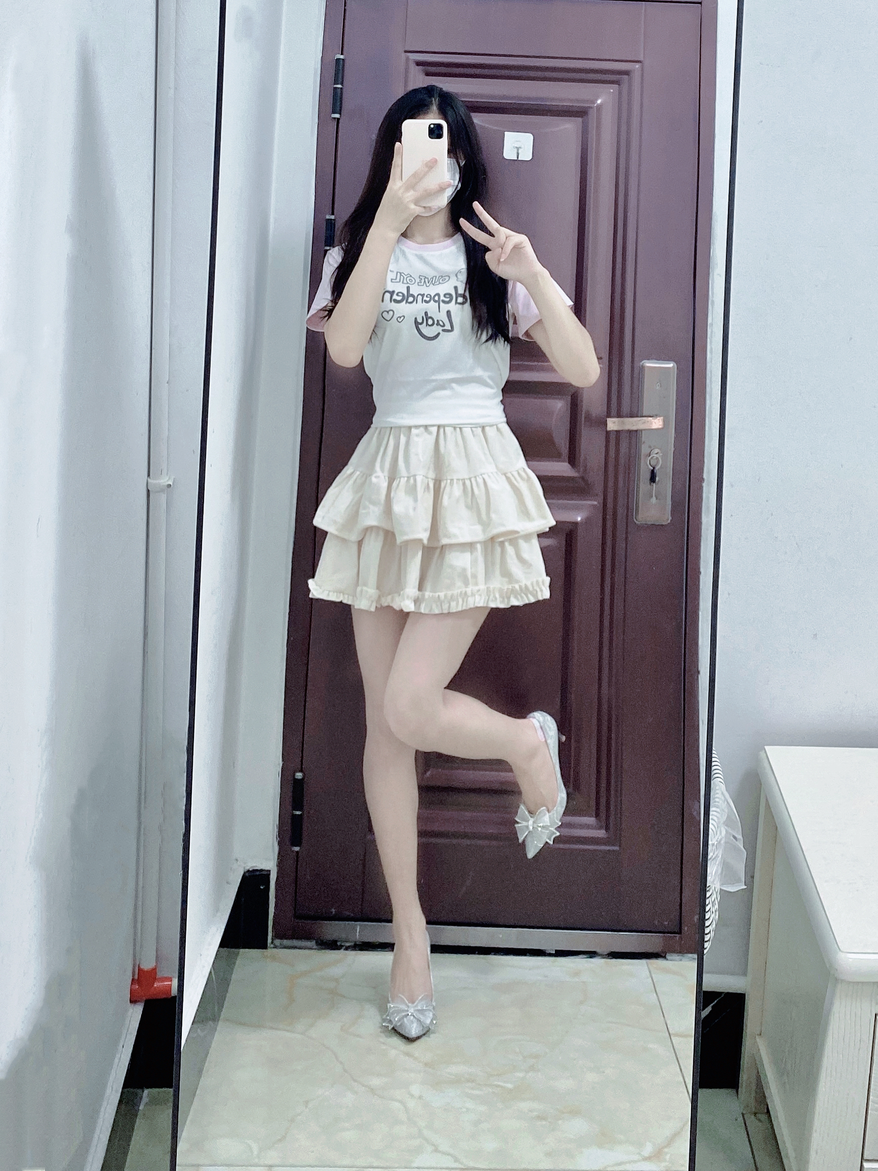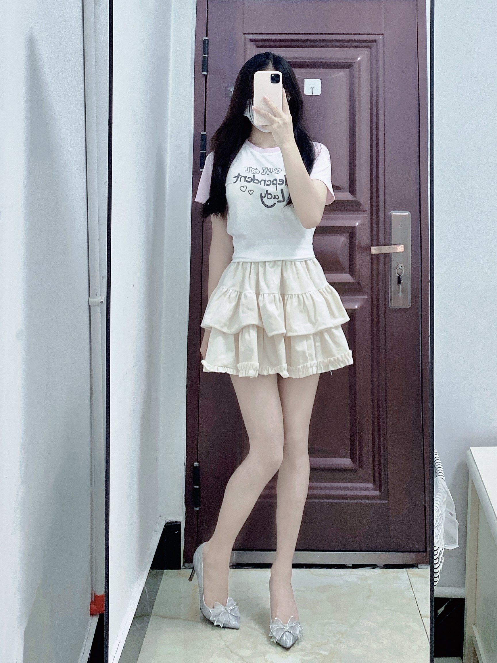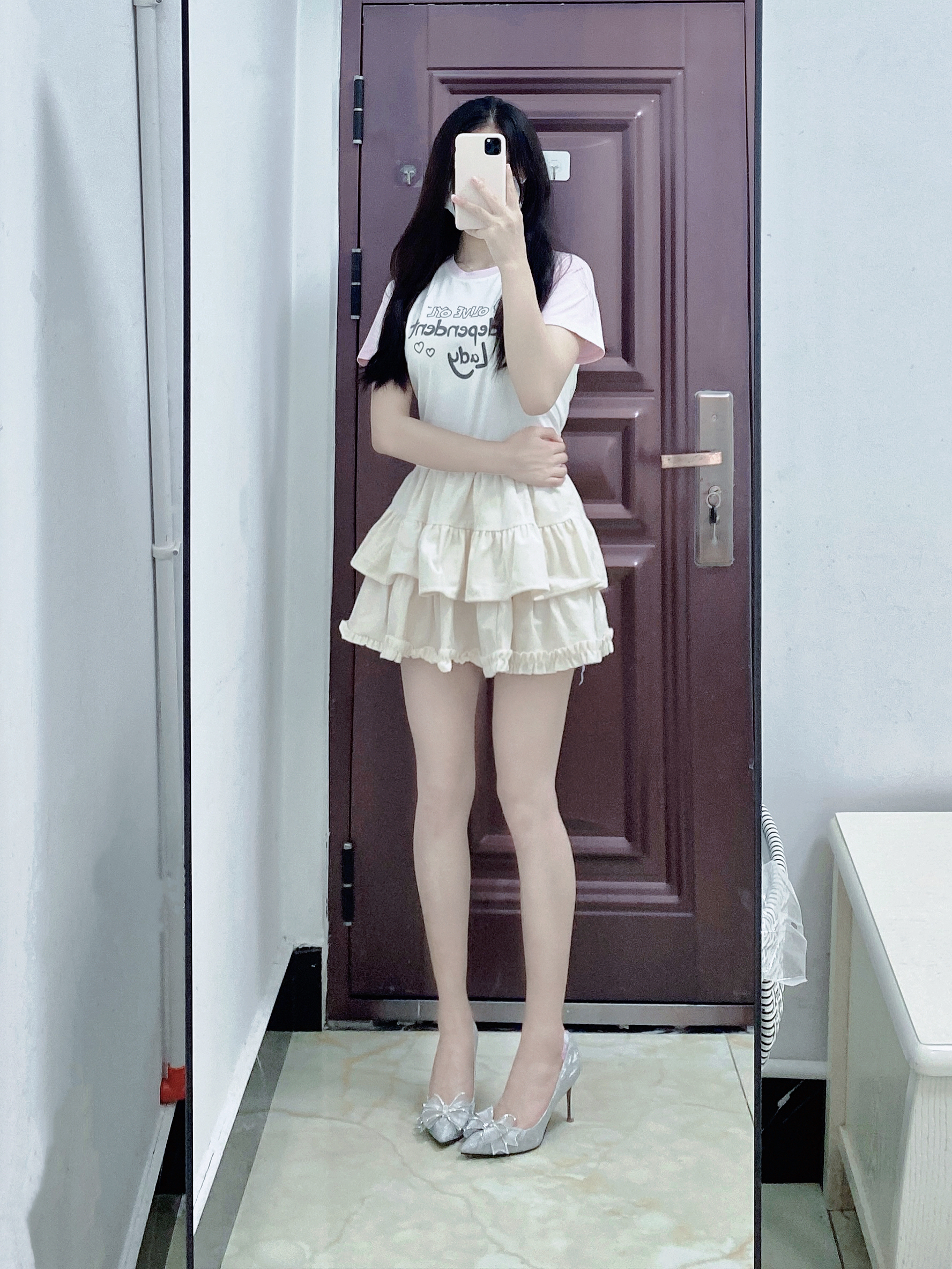 短袖T恤搭配蛋糕裙 再穿上一双银色高跟鞋 这样搭配真的好甜妹呀