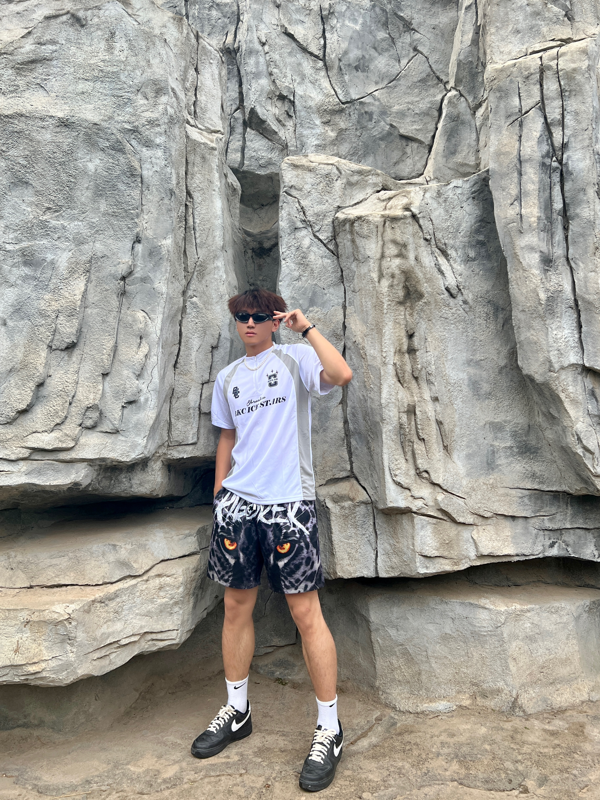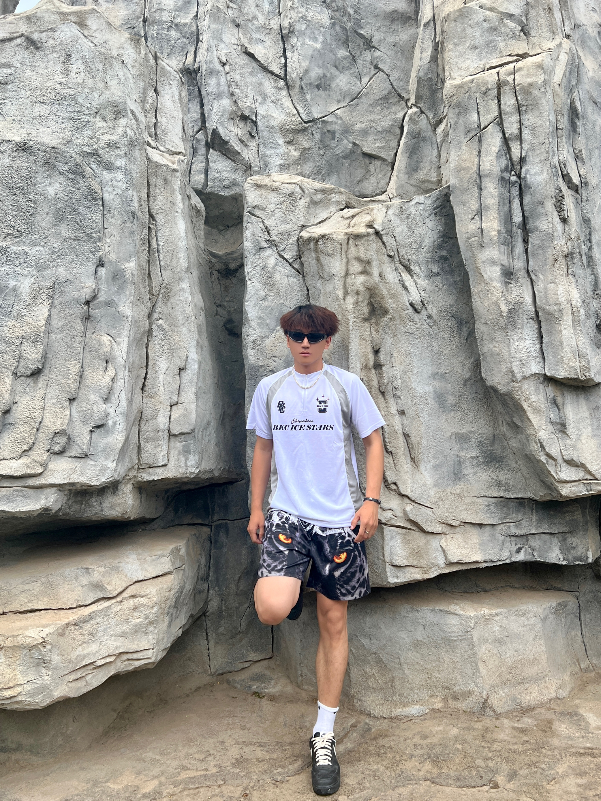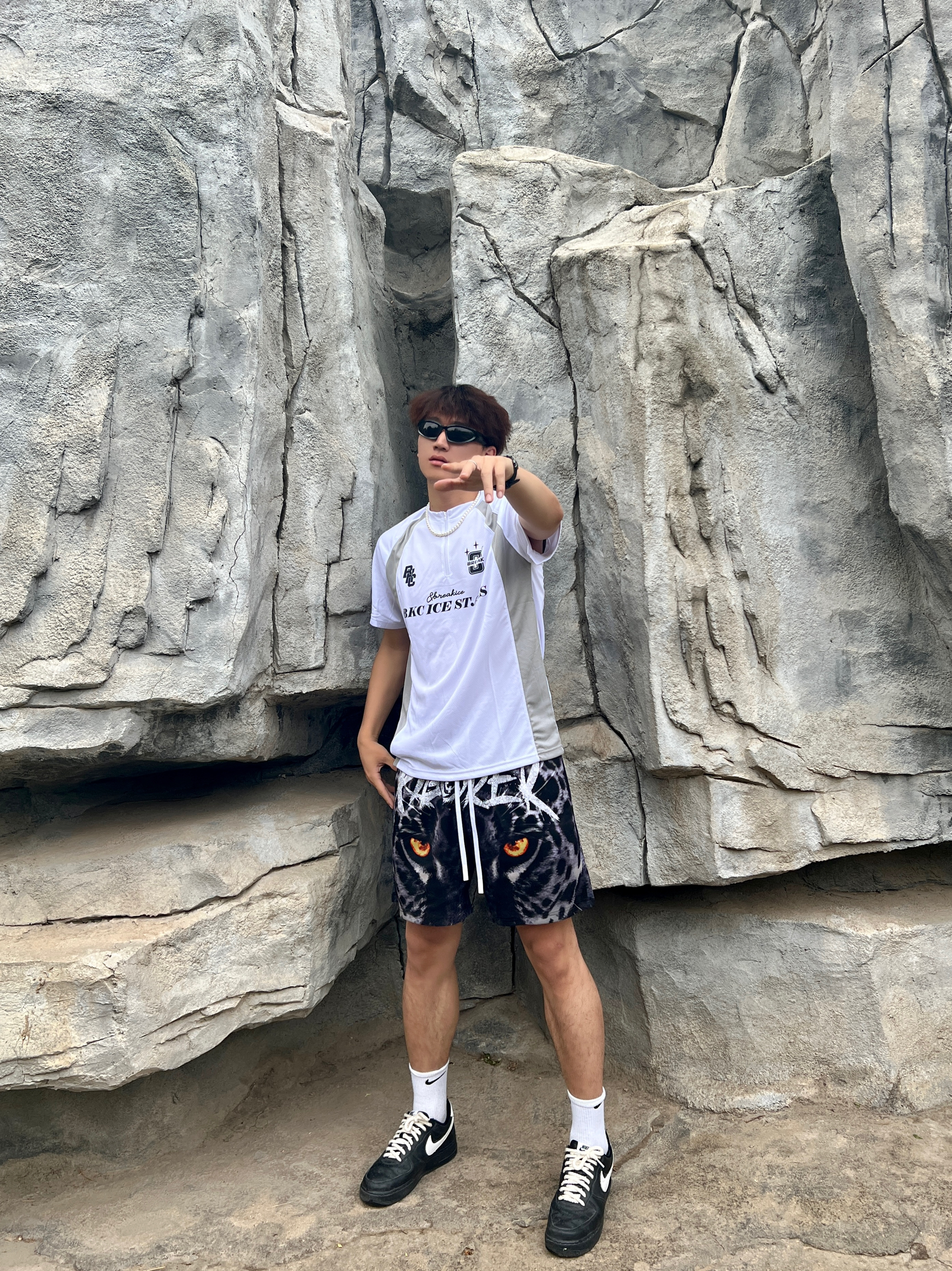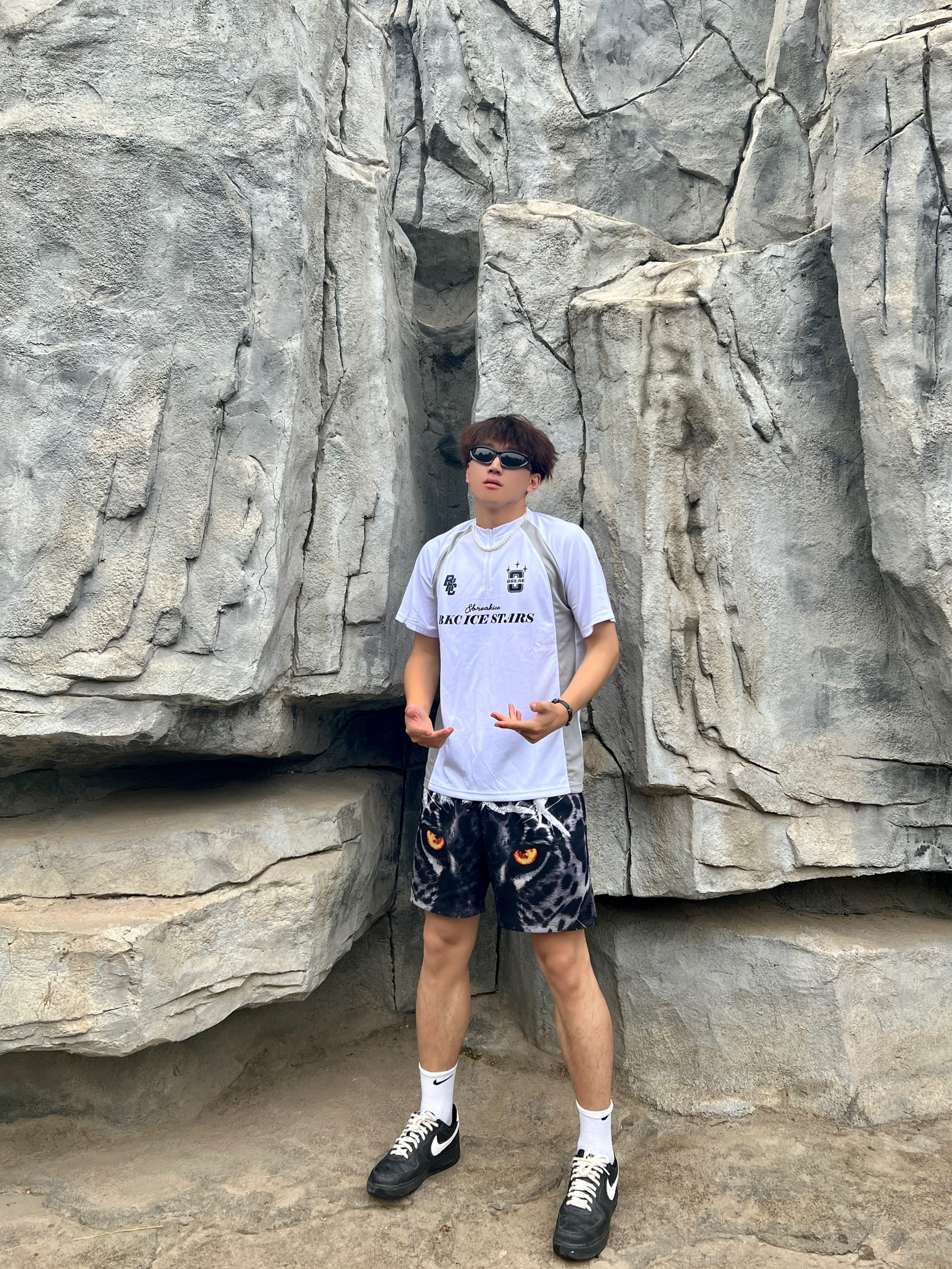 今天一身美式风穿搭☁️ 上身破冰家的短袖 足球风的短袖也是第一次尝试 透气速干包裹性不错✅ 搭配了一条准者家的美式短裤 丛林法则系列品💥 黑豹的轮廓印在短裤上 压迫感和潮🆒感扑面而来 喜欢美式个性的风格 可以大胆来试一试💫 ——— 👔👖:我185/75一身都是2lxl,都是比较合身的,不过体重稍大的建议拍大一码。
