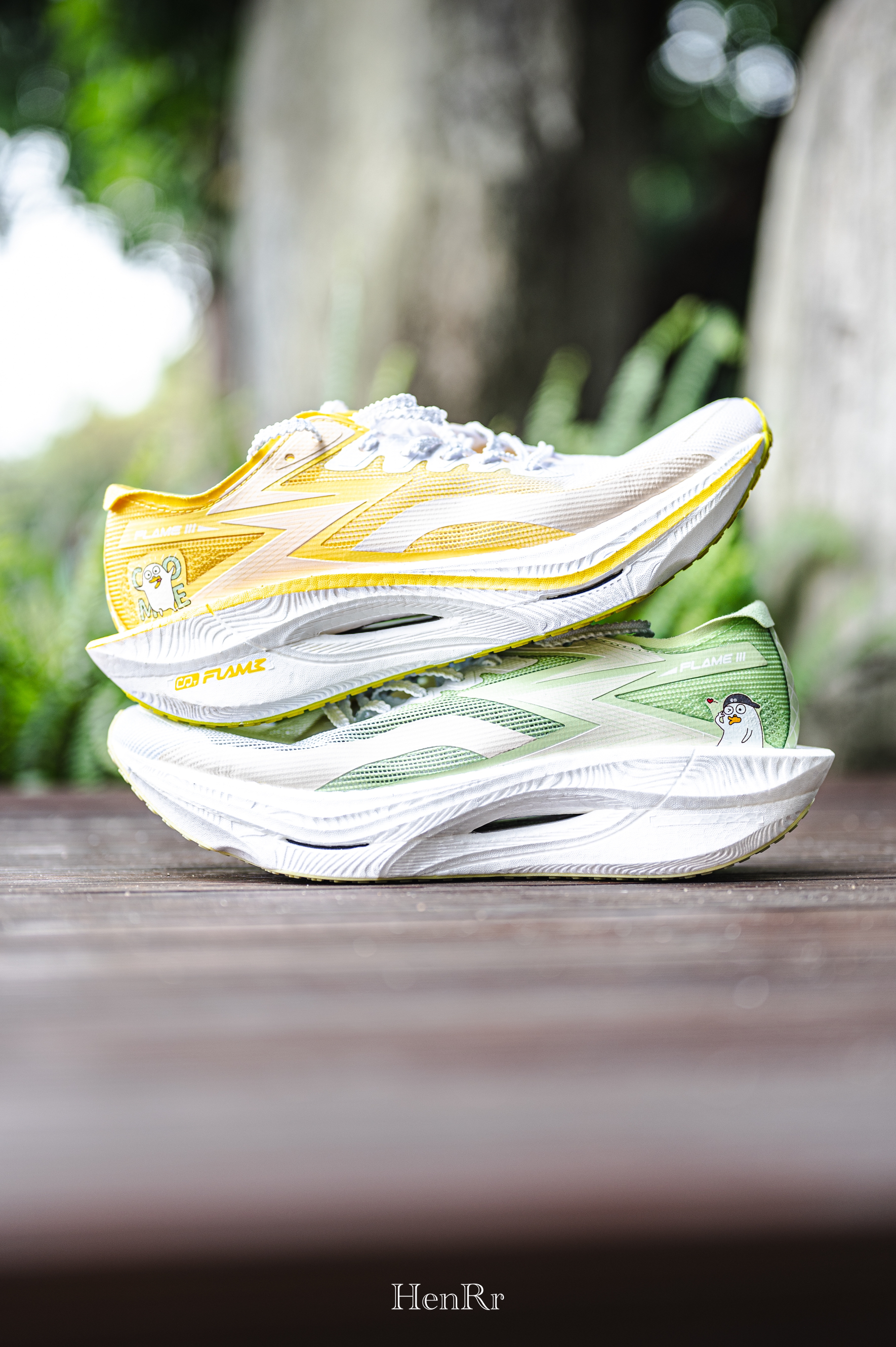 竞速跑鞋要论调色盘丰富的话那我会觉得度子就非常有想法了,飞燃3这双鞋主打长距离的竞速跑鞋我也是入过很多次了。 这次推出的小刘鸭联名配色是以绿黄色调的组合形成,后跟、鞋垫都有小刘鸭的卡通LOGO,感觉还有点童味了~ 小刘鸭这次的配色是非常值得关注的,配色方面有亮点的同时,飞燃3自身的性能是很不错的。 尺码正常选择即可。