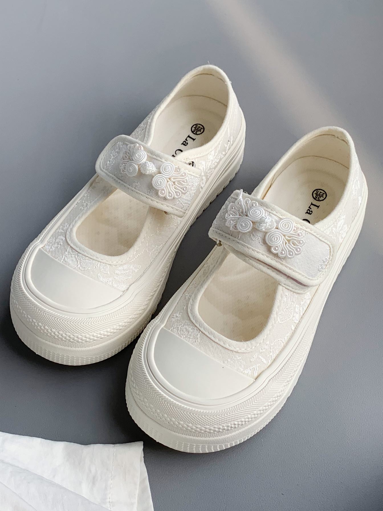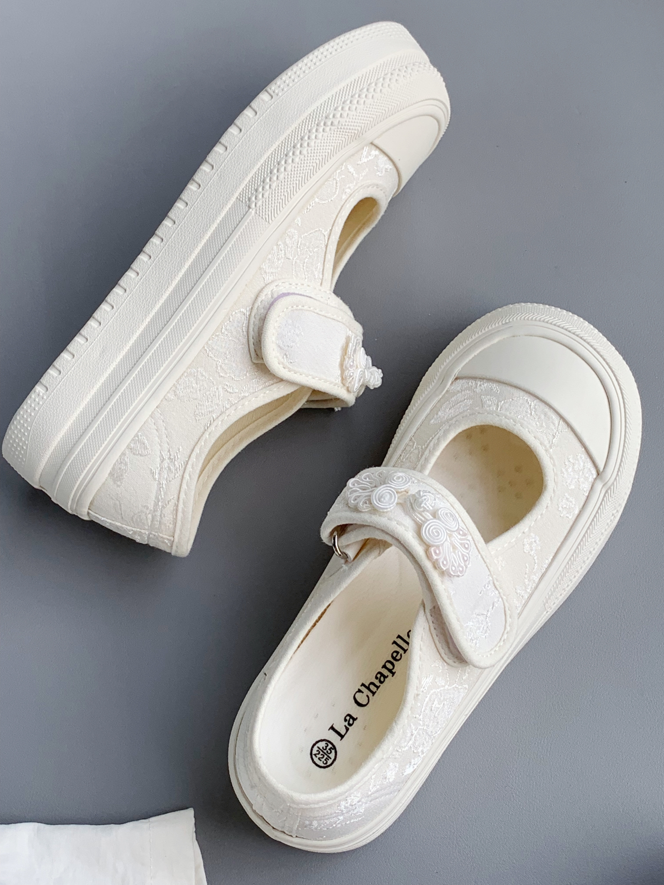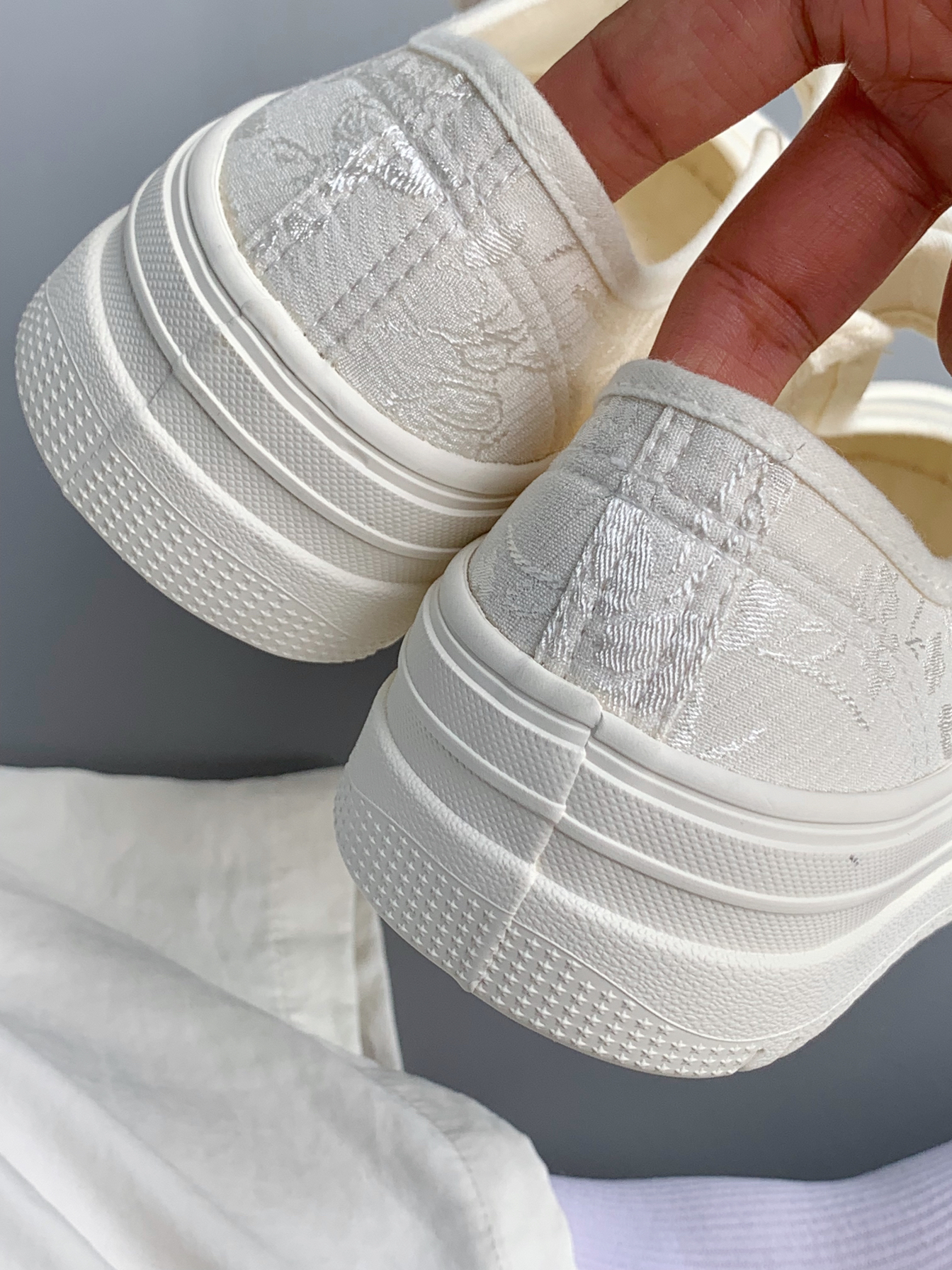 温柔刺绣风还得是咱国货给力呀 拉夏贝尔这款米色休闲鞋 直接梦回古镇 不敢相信它配上白裙得有多好看呀 厚底增高 小个子穿长裙也可以撑得住 久走也不会累人 旅游拍照一定安排上