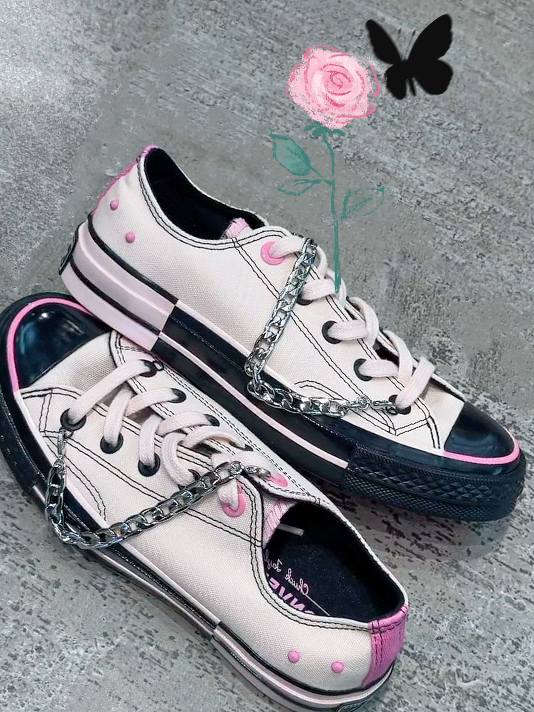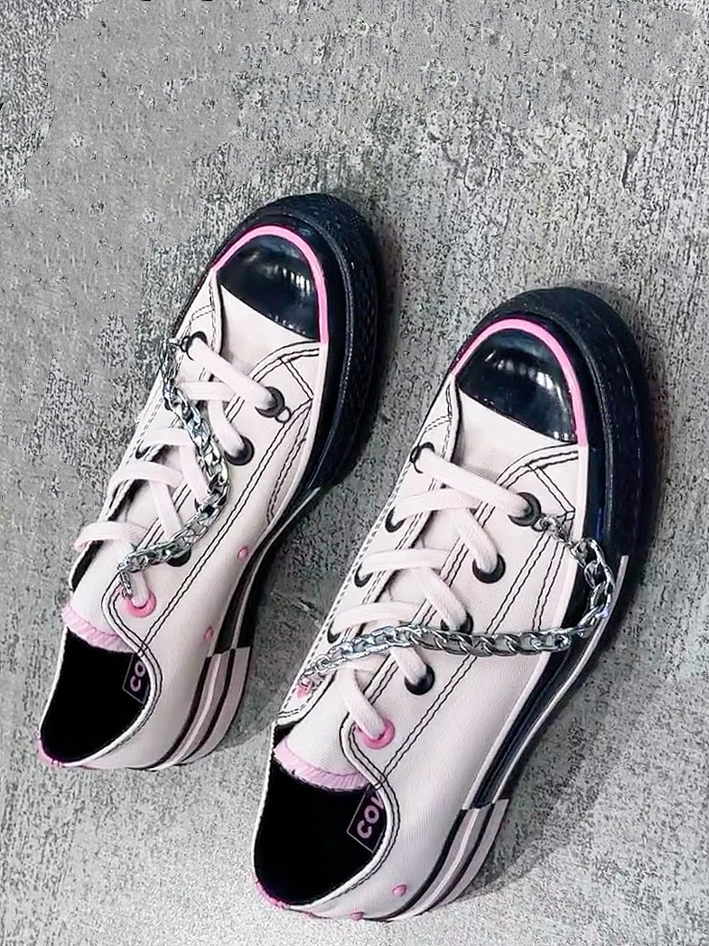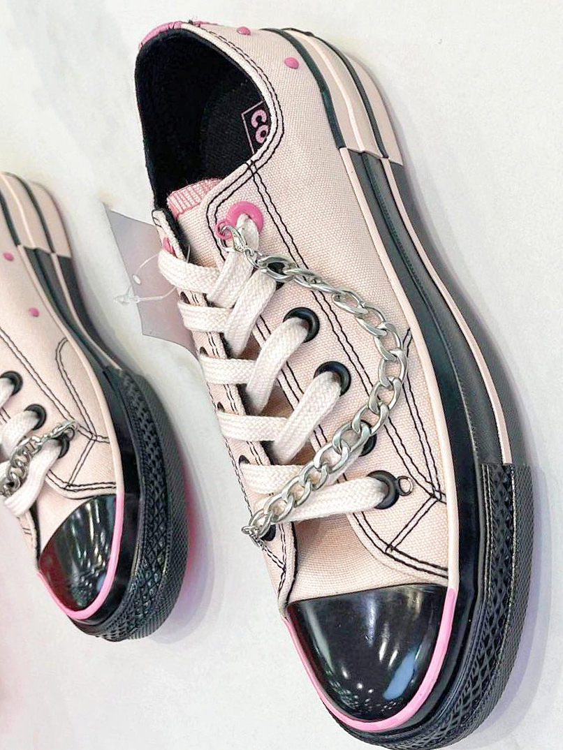 Black pink配色太戳少女心了! 细节在线,质感拉满了! 就是我们甜酷女孩爱穿的。 太好看了,⛓️链条可拆卸,自由穿搭。 匡威太会拿捏甜辣了💞🖤