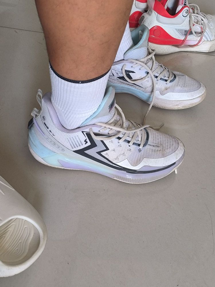 #求推一双后卫鞋 361° BIG3 5.0 Quick 有点小帅🏀👟。 先来说说这双球鞋整体外形吧,这是一款实战型的篮球鞋,外观白蓝配色,看起来非常有速度感,鞋底全白色,整体来看这双的颜值是非常高的,配色的搭配尽显高级感。我穿的是冰刀配色41码的,鞋面是由织物加合成革TPU材质组成的,中底也镶嵌了一块碳板,用手摸上去鞋面,很有质感。 ✅优: 一、平时在打篮球⛹️时,穿上这双鞋在实战中,不会感...