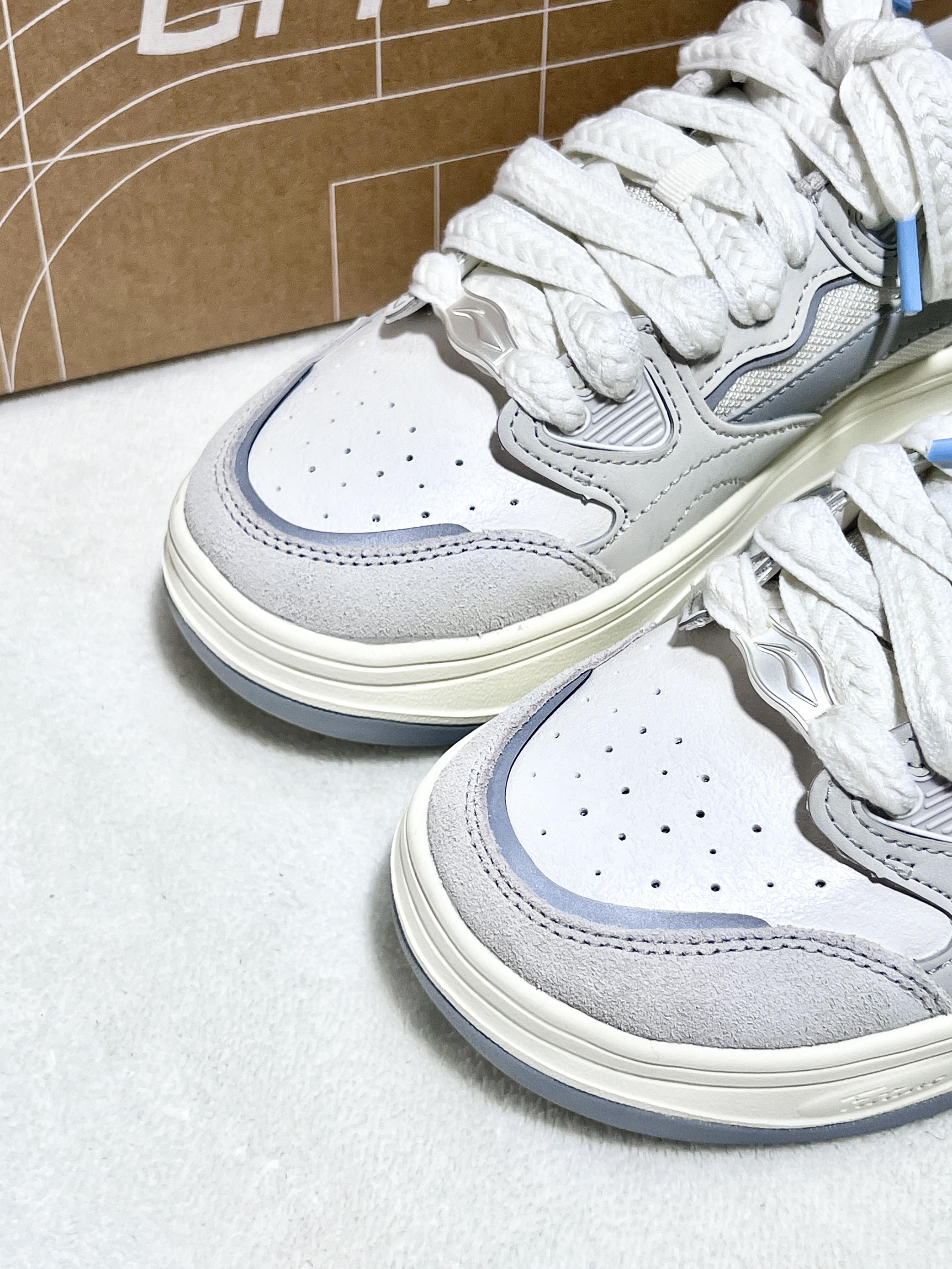 像奶油面包一样的小面包板鞋 鞋子很轻,女生们上脚非常合适 整双鞋子的颜色搭配低饱和度,好看又不会太单调