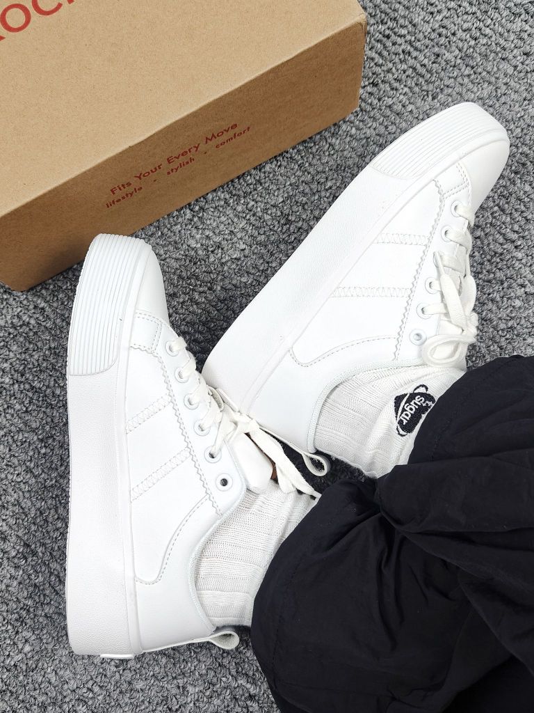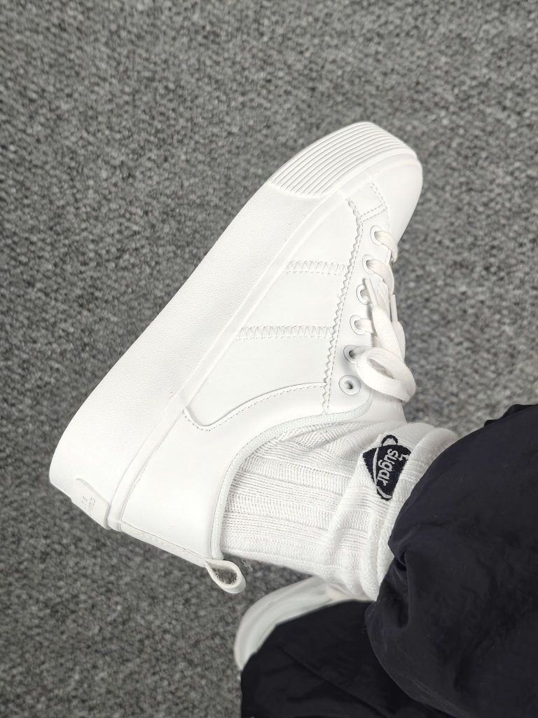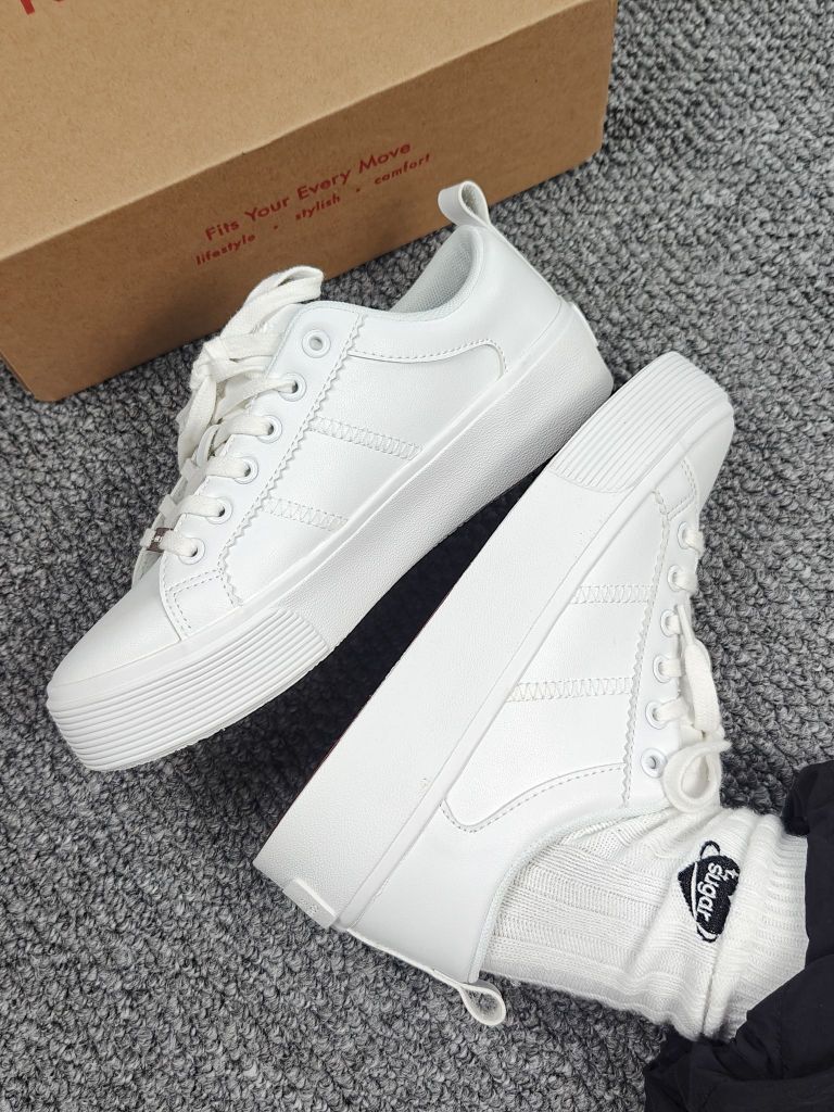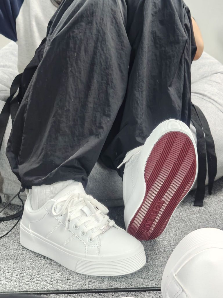 谁能想到一双小白鞋的鞋底居然是红色的 纯白配色 干干净净hin简单 脚感也是比较舒适的 基础百搭款 搭配裙子、裤子都OK 日常出门就穿它了!