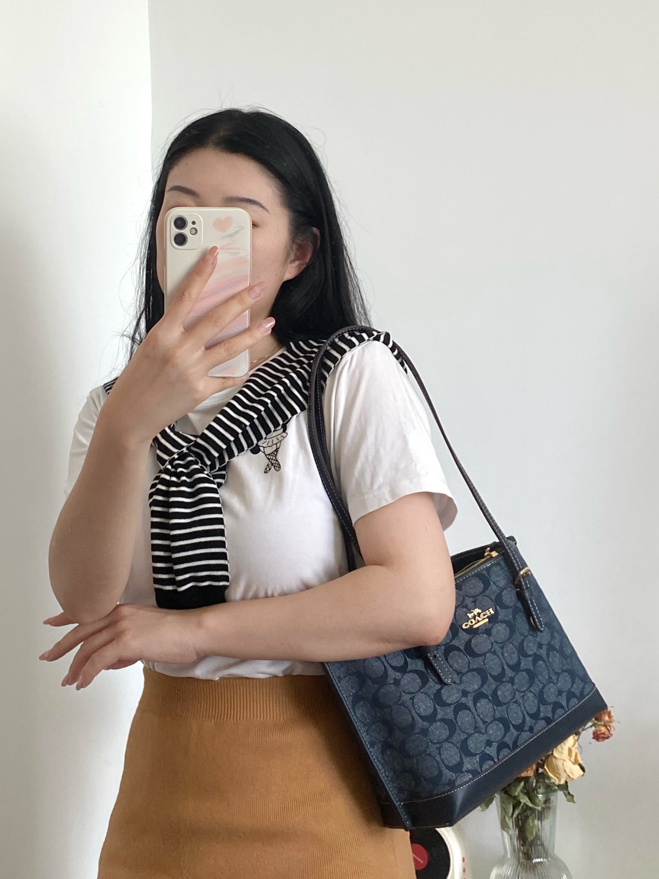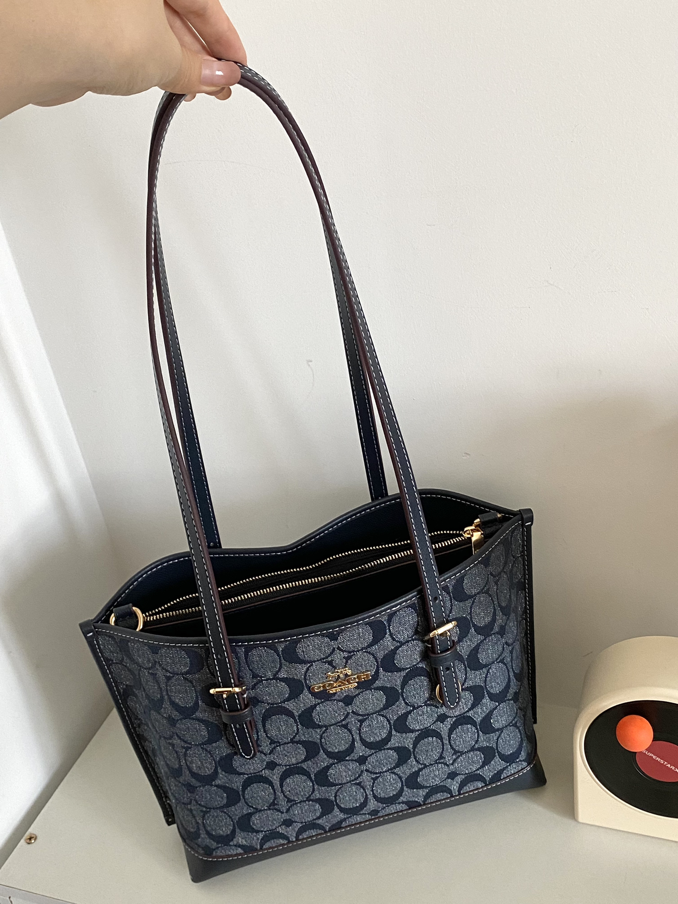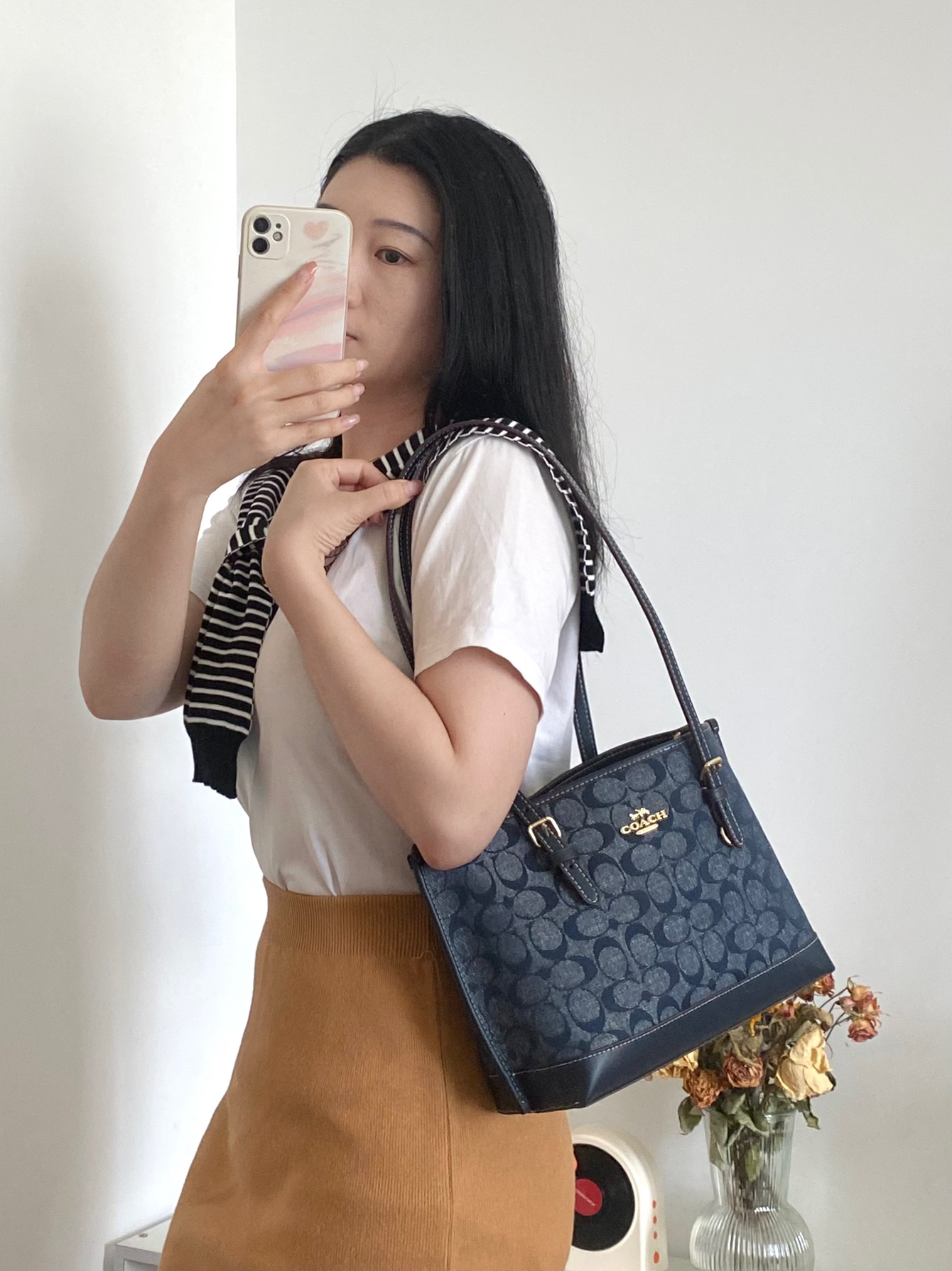 本篇笔记关联了Coach MOLLIE 25号 经典老花香布蕾提花拼色织物拉链开合牛皮革单肩斜挎包托特手提包 丹宁蓝色等商品,为用户提供真实的使用体验和购买参考。