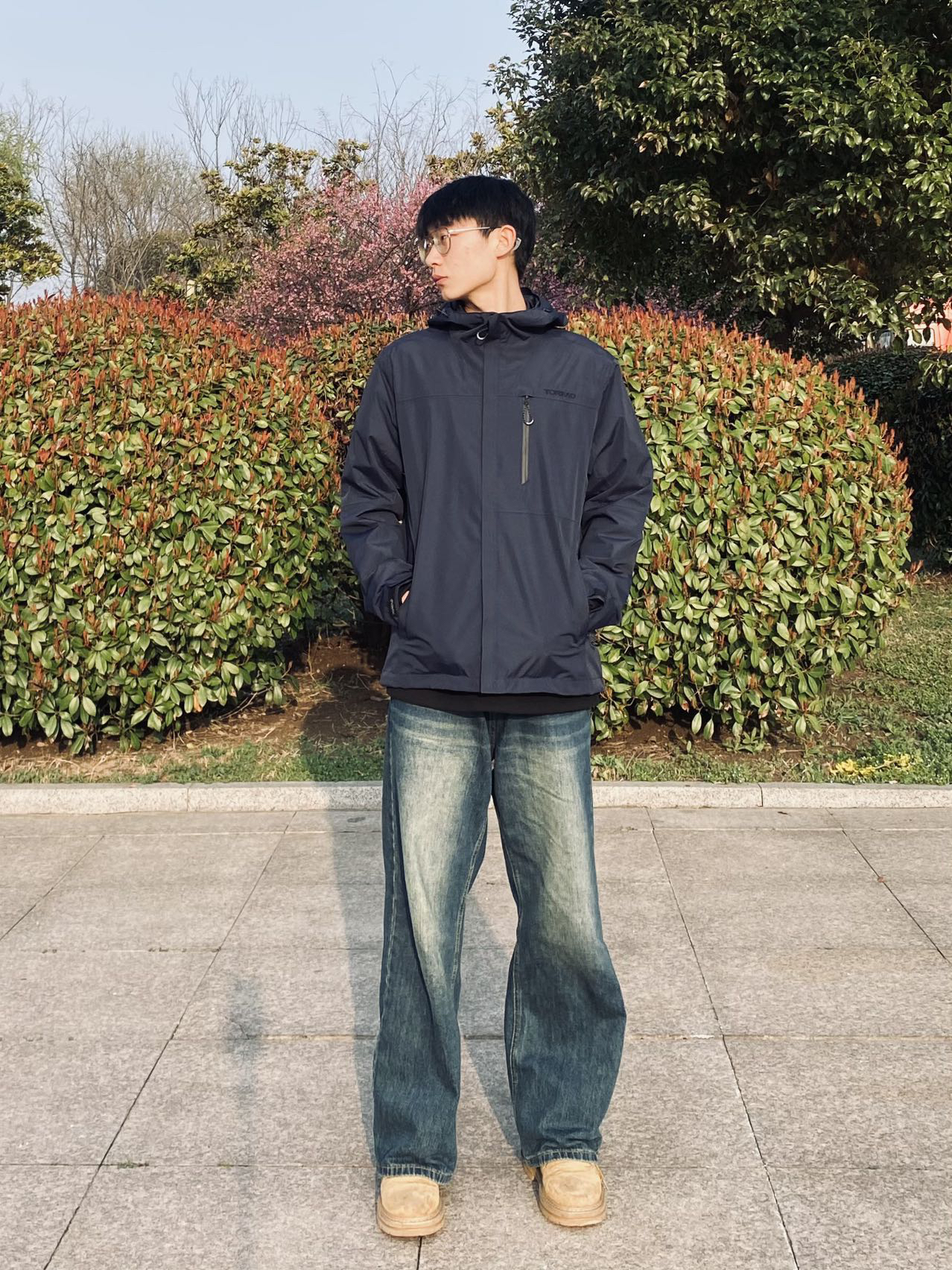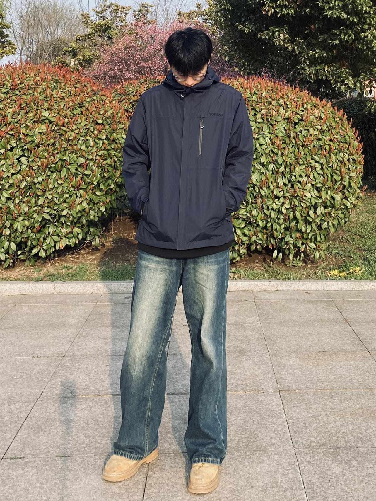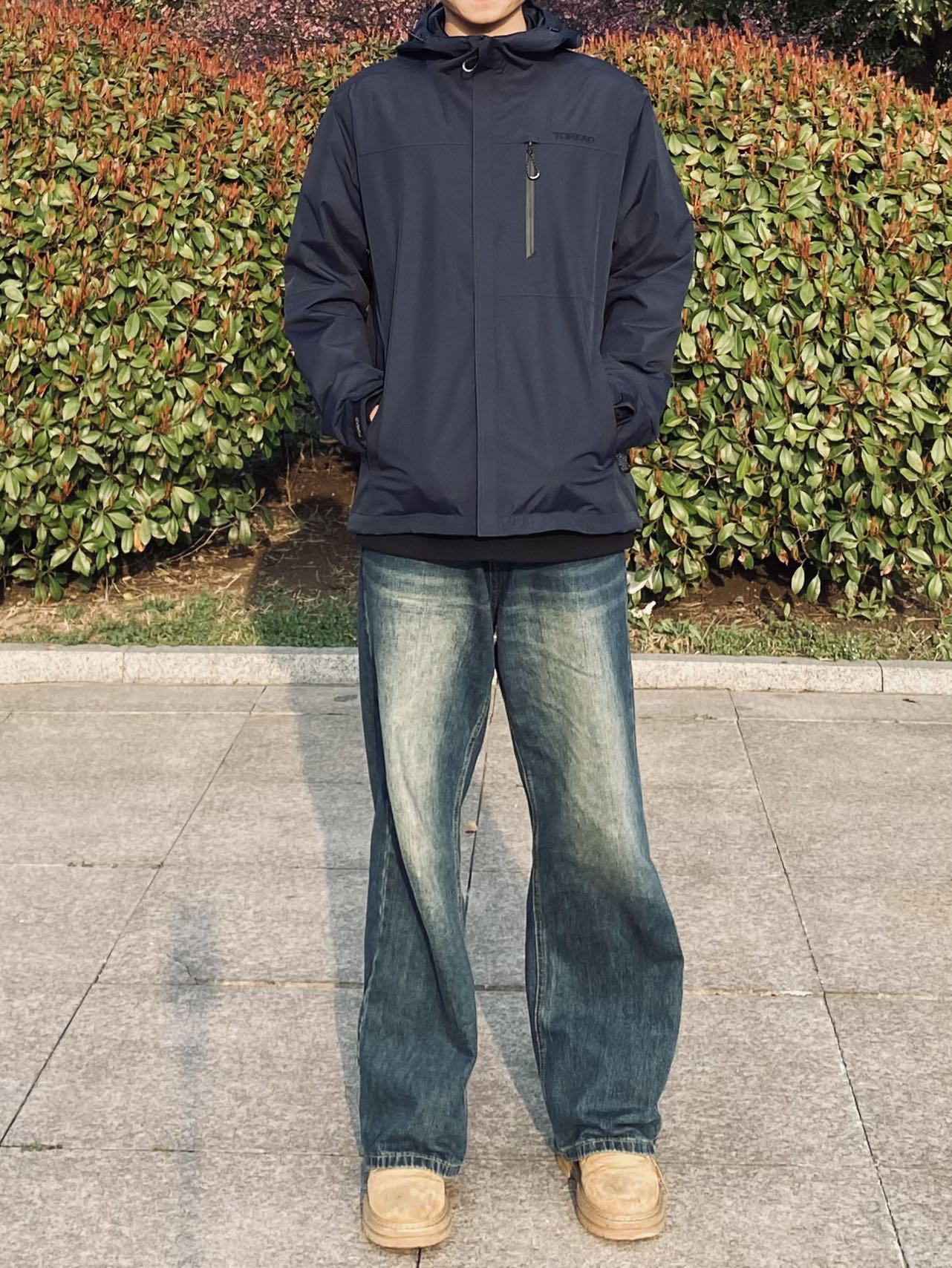 🌹冰美式今日穿搭 👔又到了穿冲锋衣的季节 今天穿了一件我新入手探路者冲锋衣~ 我选了藏蓝色比较显白 穿了他爬了趟泰山防风防水效果还是OK的🙈我身高178体重135 L码就够了 — 👖裤子搭配了条水洗牛仔裤 整体搭配颜色不会显得很突兀❤️🔥 — 👟鞋子是一双马丁靴搭配冲锋衣穿也好看~
