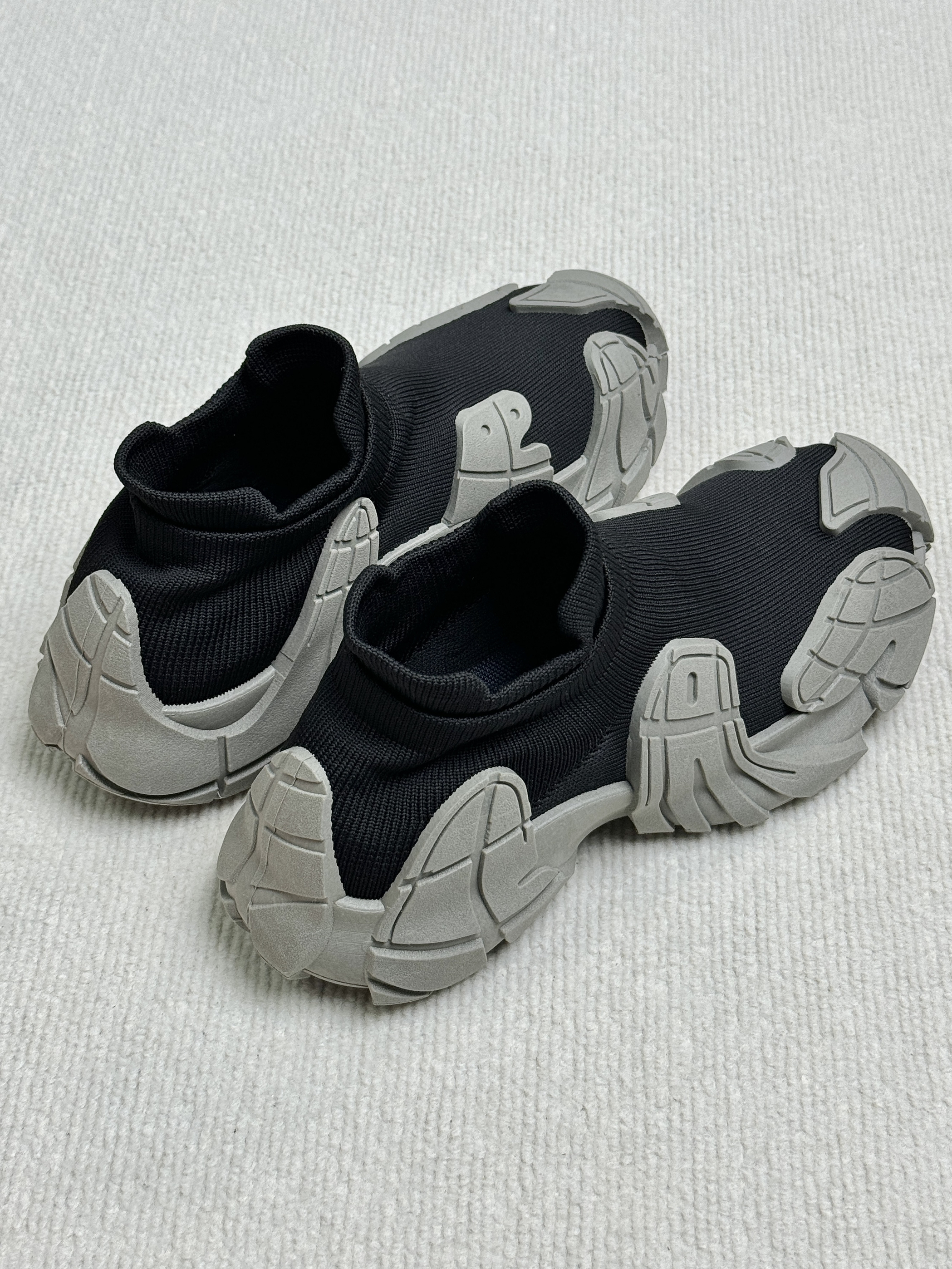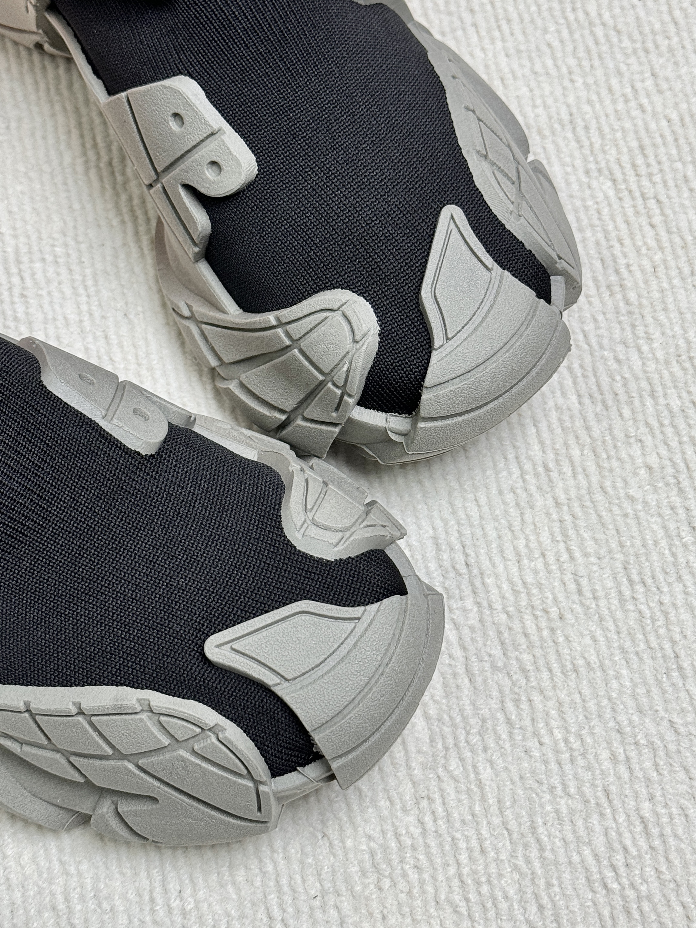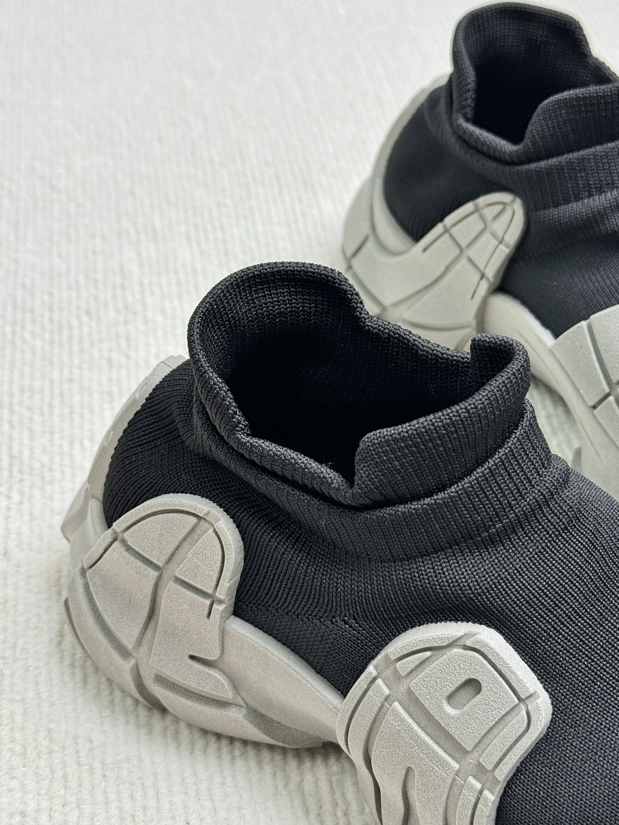 黑灰的配色有点沙丘的废土风 鞋底的上翻轮廓防踢防撞 带一丝机甲感飞织的鞋面 不仅贴合舒服而且透气不捂脚 套脚的设计穿脱很方便