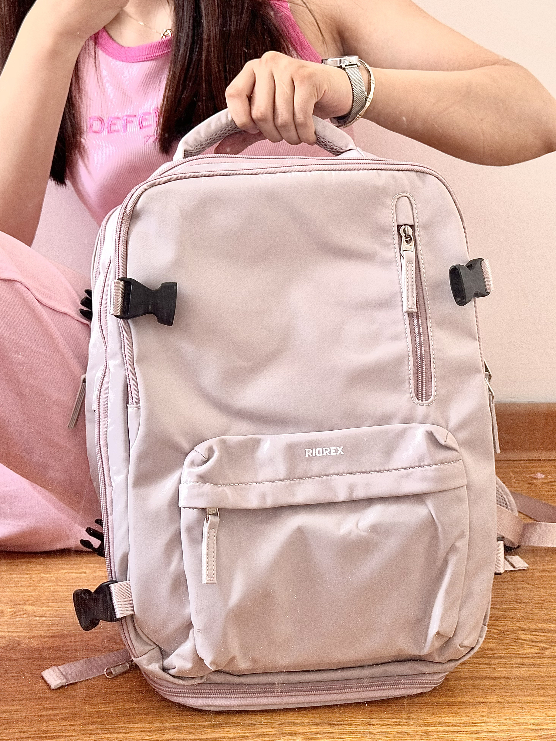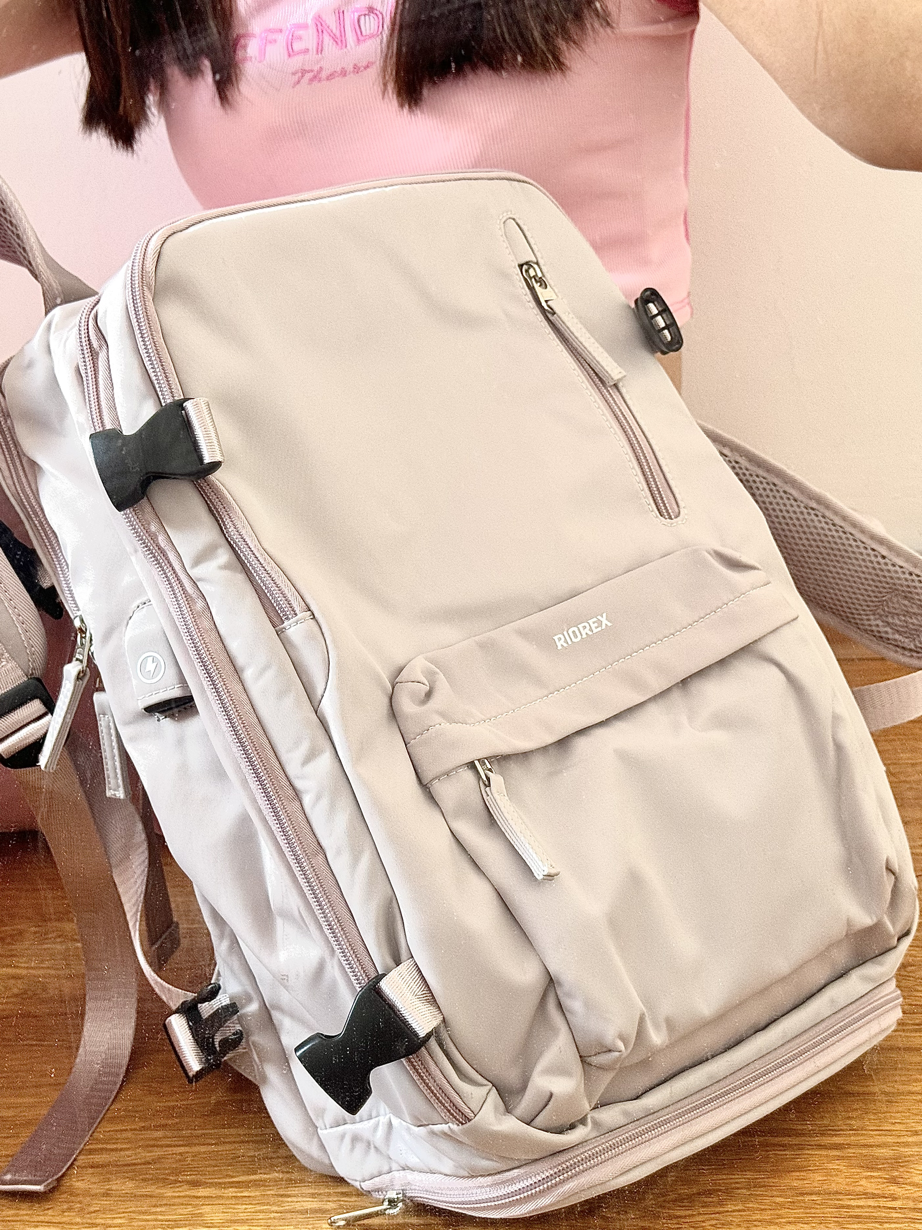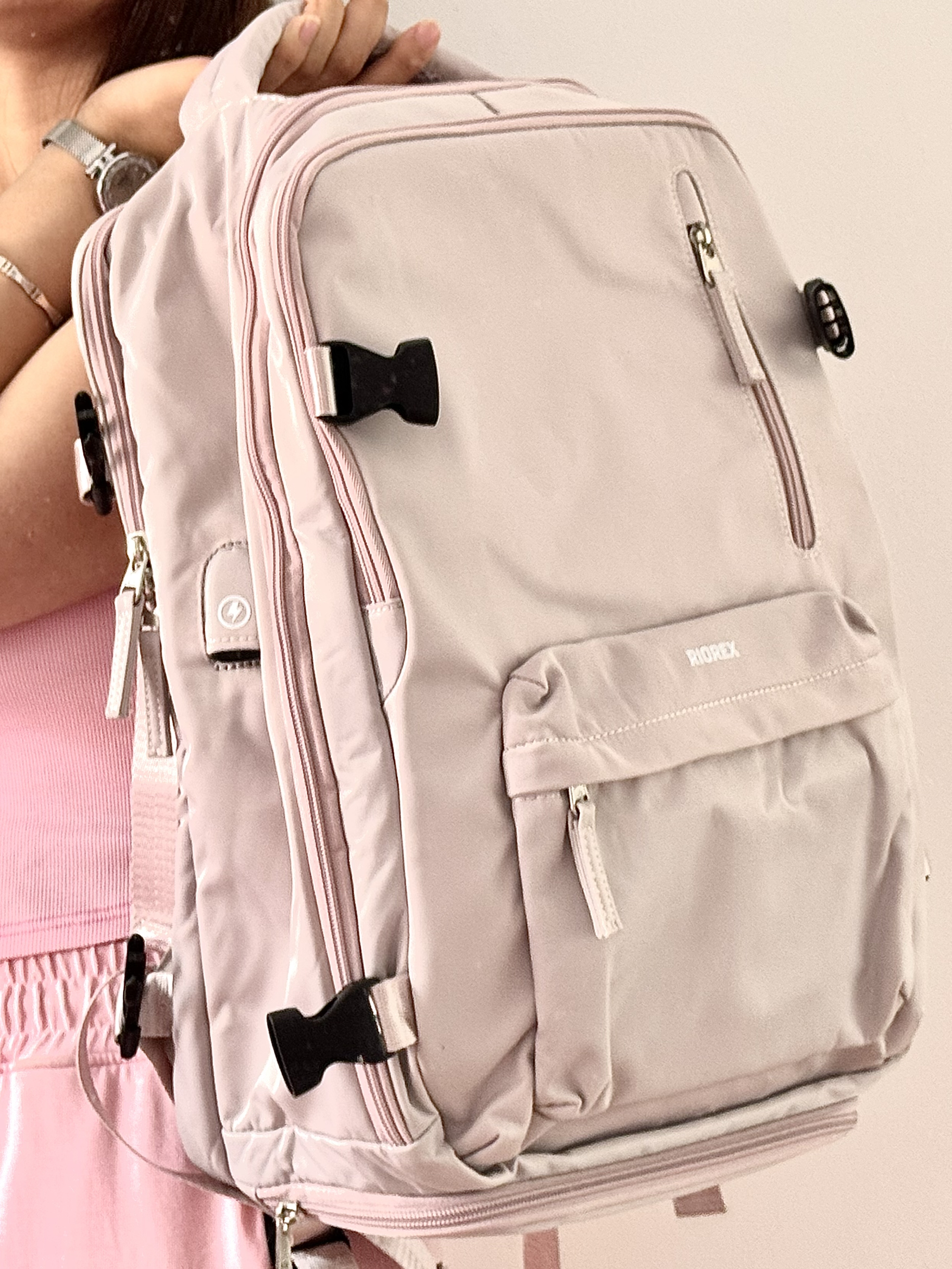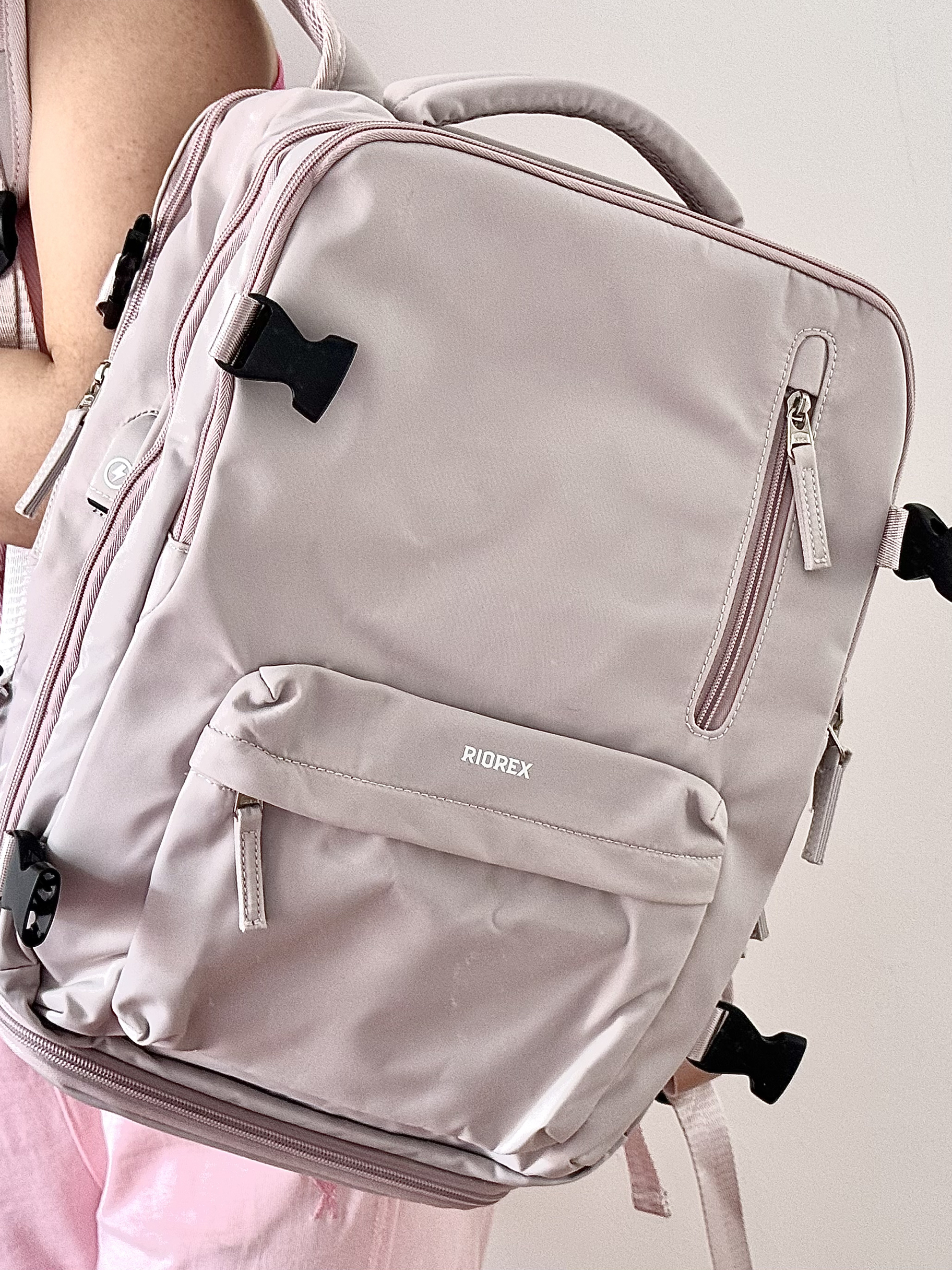 上次假期出去的时候就很后悔没有大包 回来终于选了好久看到这个RIOREX双肩包 能够满足短途旅行或者出差的基本需求 内部空间很大可以容纳好多东西 还有很贴心的侧面有个充电插口 以后再也不用在包里使劲乱翻充电宝了 简约风的设计颜值很高出门也很拿得出手 有了它以后出去旅游好方便啦