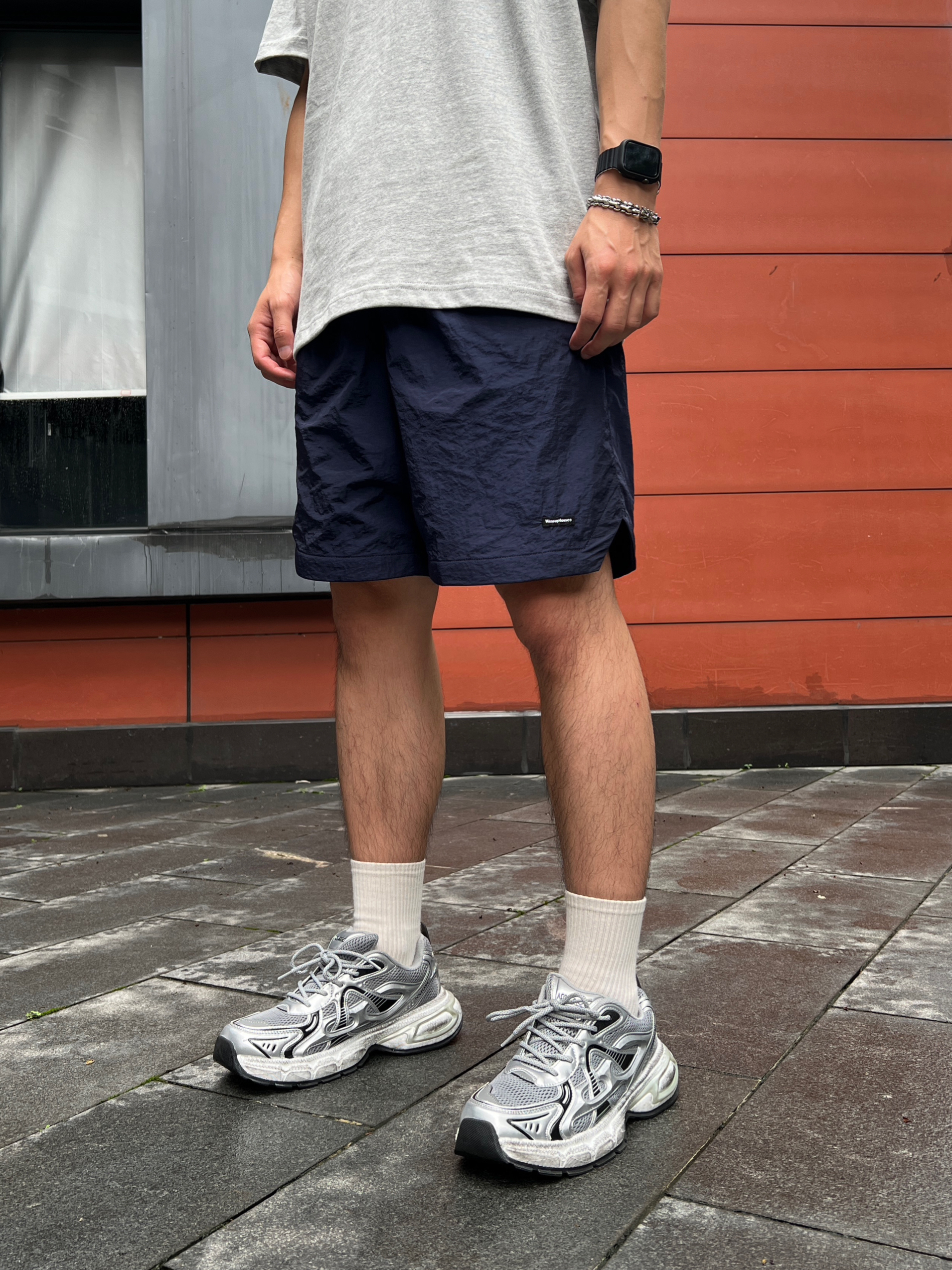 大夏天的 谁还穿长裤长袖呀⁉️ 今天这一套 既适合运动也适合平日上学通勤穿 👕是浅灰色的国潮Tee 经典耐看又百搭 👖180cm 70kg 短裤选择的L 清爽感拉满 面料不闷 蓝色也比较亮眼 不会太过于普通🫡
