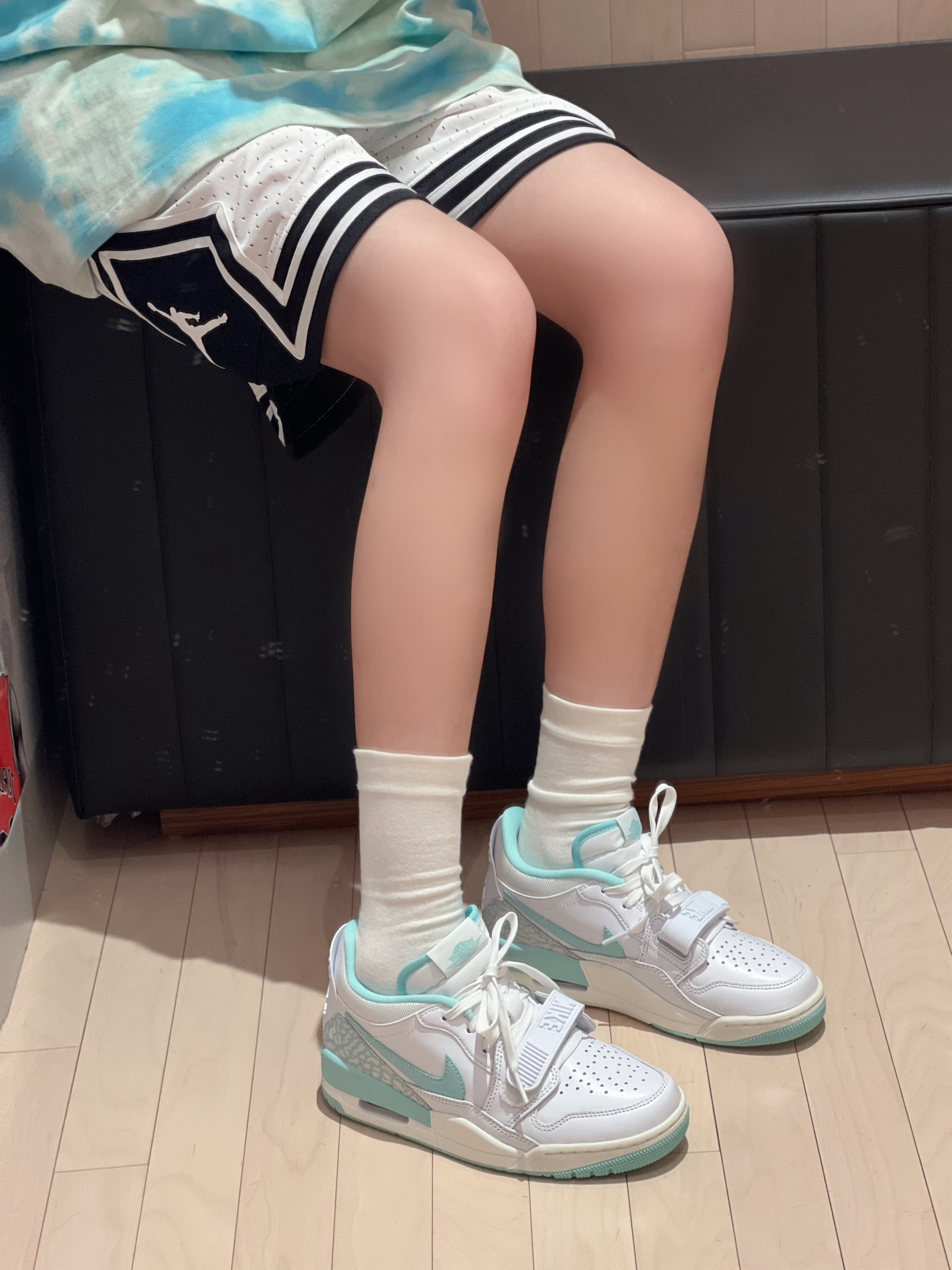 今日穿搭白绿色系🍀 扎染短袖搭配白色球裤 整体上身很舒服又休闲呢 再搭配AJ312蒂芙尼绿 👟很百搭 上脚超秀气的✌️