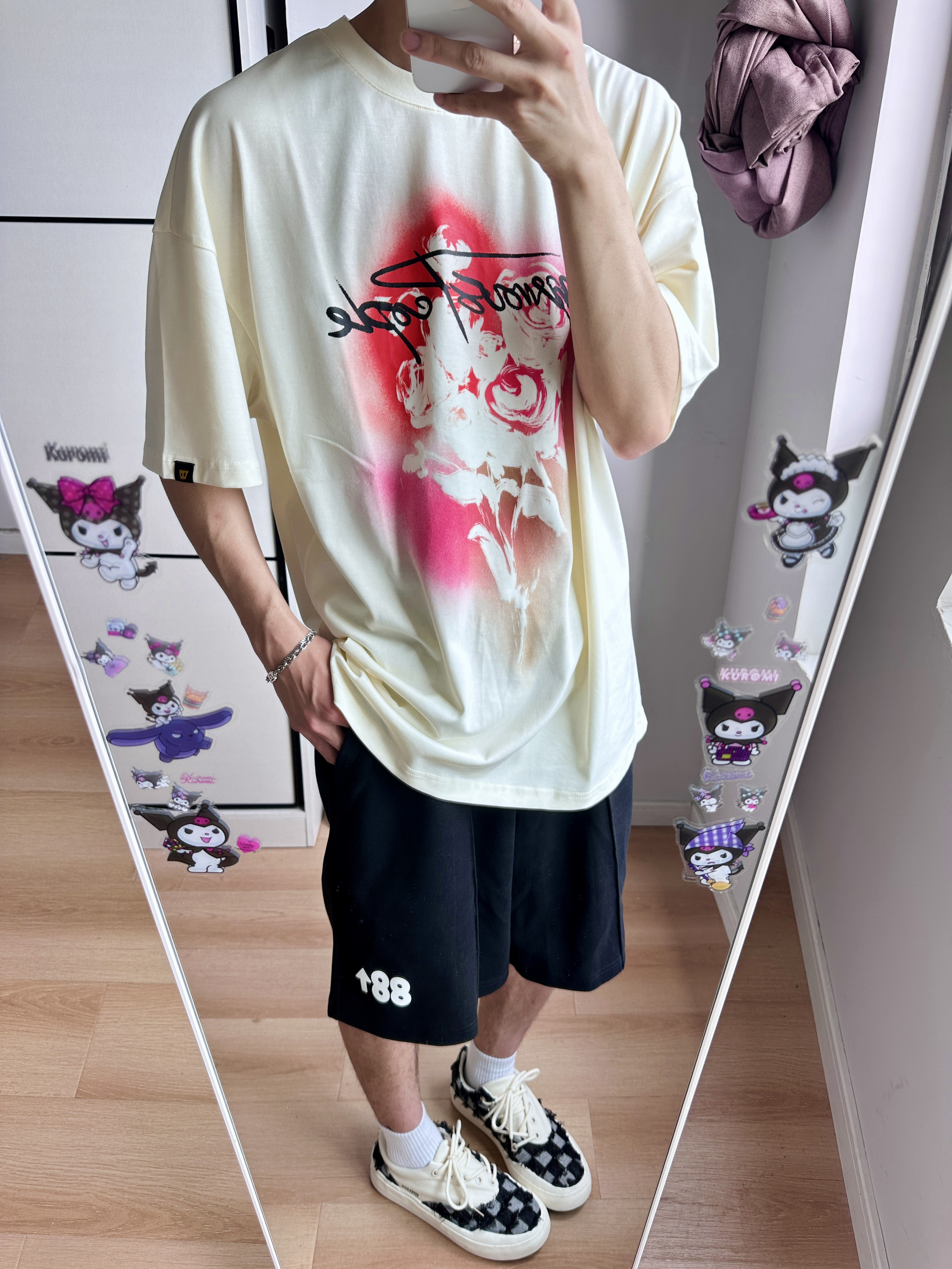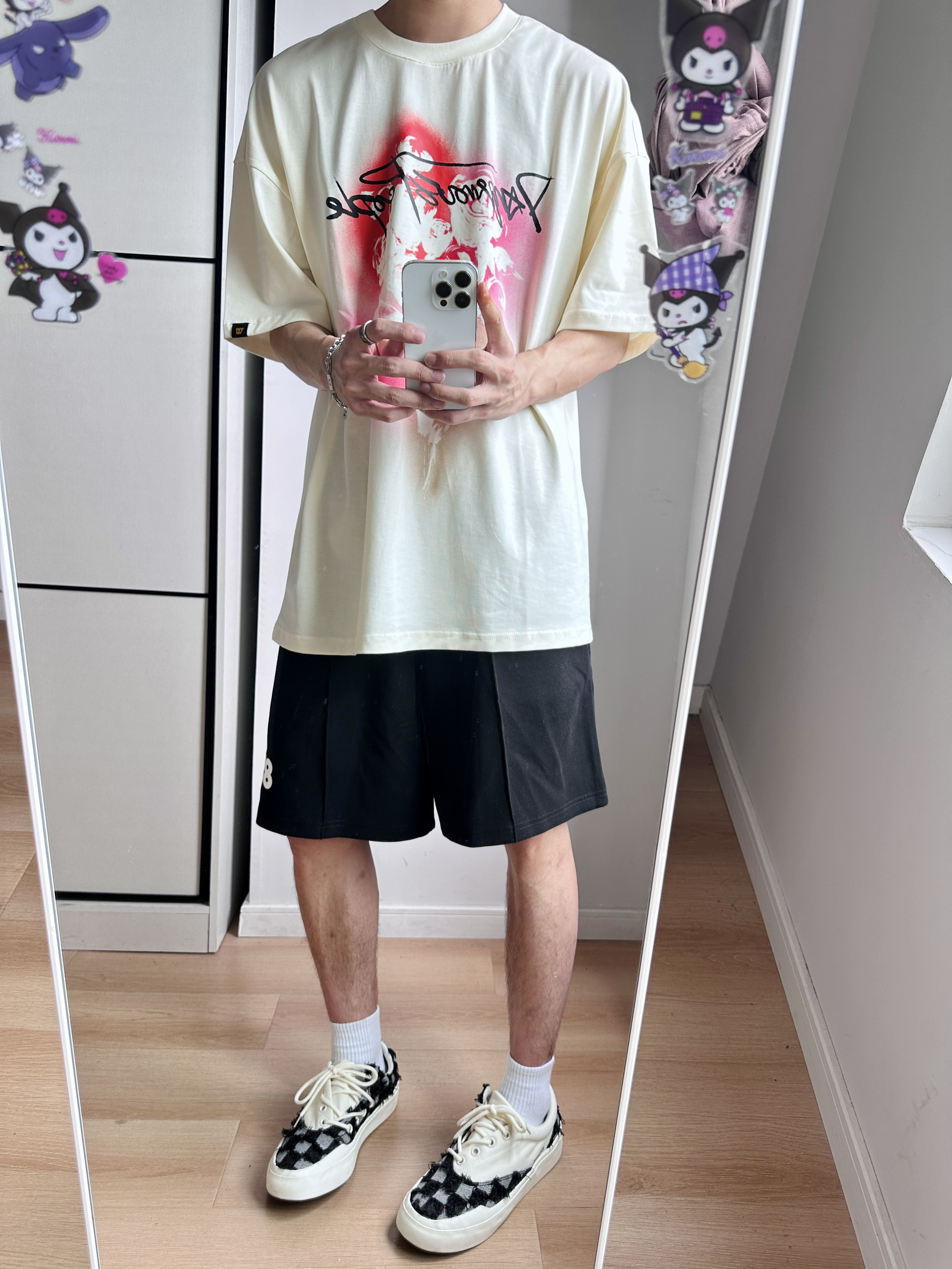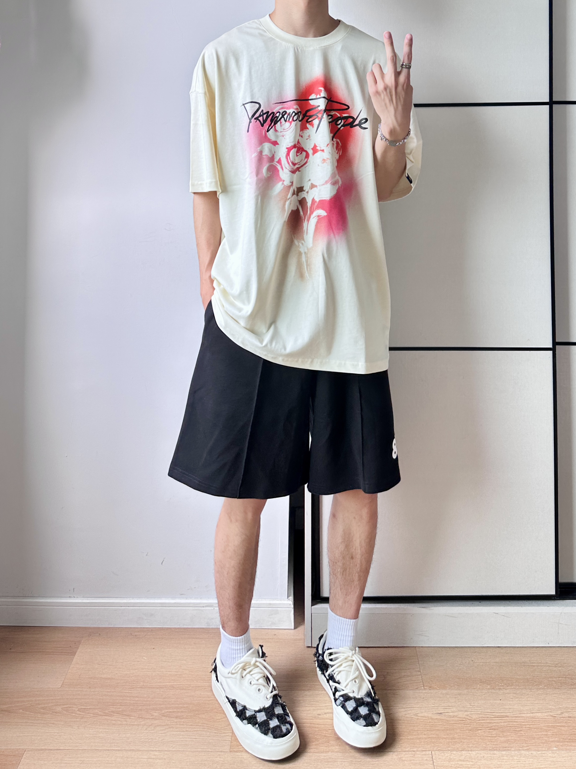 跟着偶像学穿搭 打造潮流复古街头感穿搭 - 夏天短袖短裤经典搭配永不过时! 上身👔薛之谦主理品牌 DANGEROUSPEOPLE 胸前玫瑰花元素印花图案 又酷又飒 很好的诠释了美式街头的感觉 我穿的很oversize 松弛感、空间感在夏天都要有 下身我搭配一条拼接感黑色短裤 与短袖形成对比 在视觉上做到层次感 再来一双舒适感的帆布鞋 很随意的搭配都能好好看~ 更重要的是“反班味”这套穿搭 -