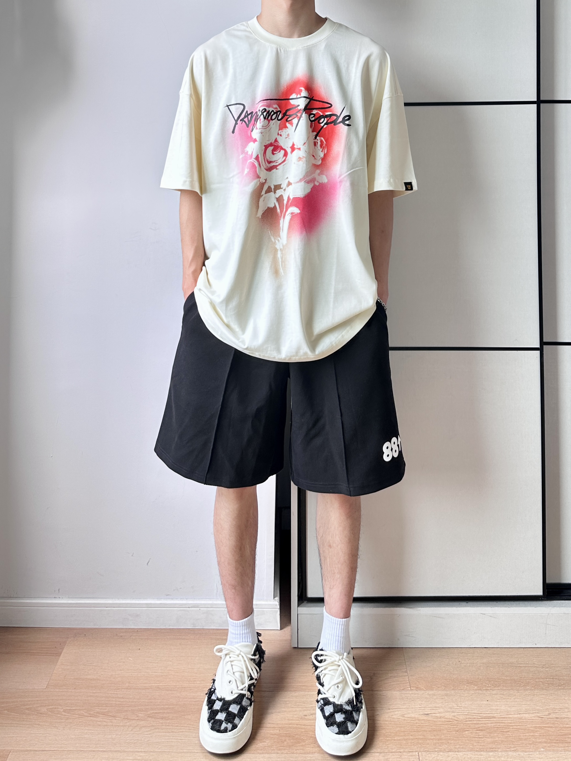 本篇笔记关联了【薛之谦同款】Dangerous people 玫瑰印花直筒落肩袖圆领套头短袖T恤 男女同款 D242ETS0394N 米黄、88rising 潮流百搭美式基础logo宽松舒适休闲短裤 男女同款 88F23219 黑等商品,为用户提供真实的使用体验和购买参考。